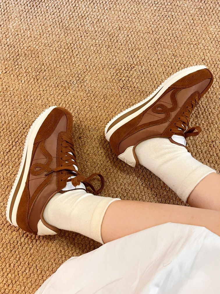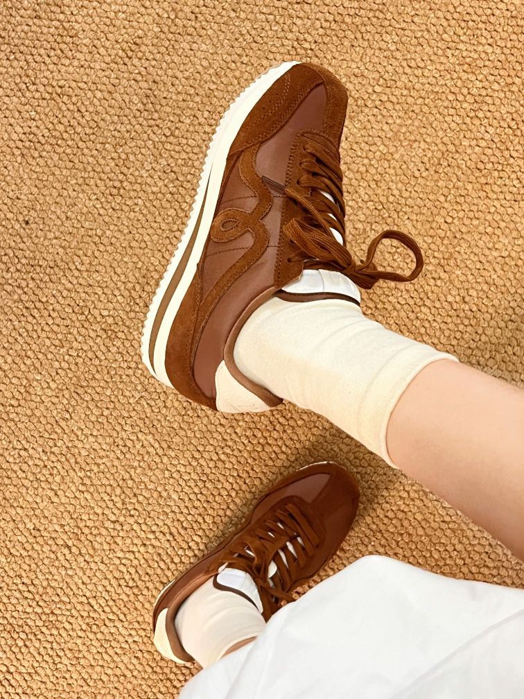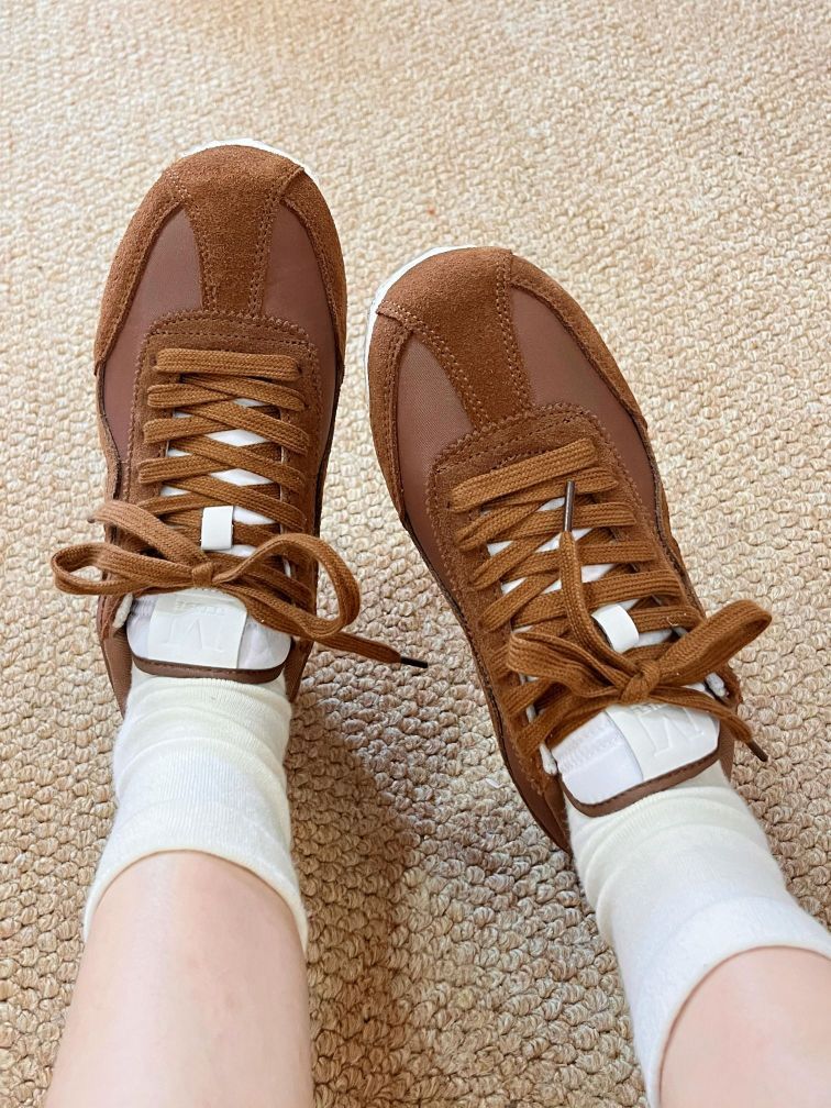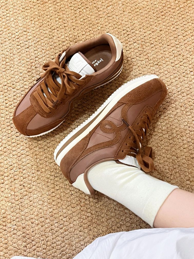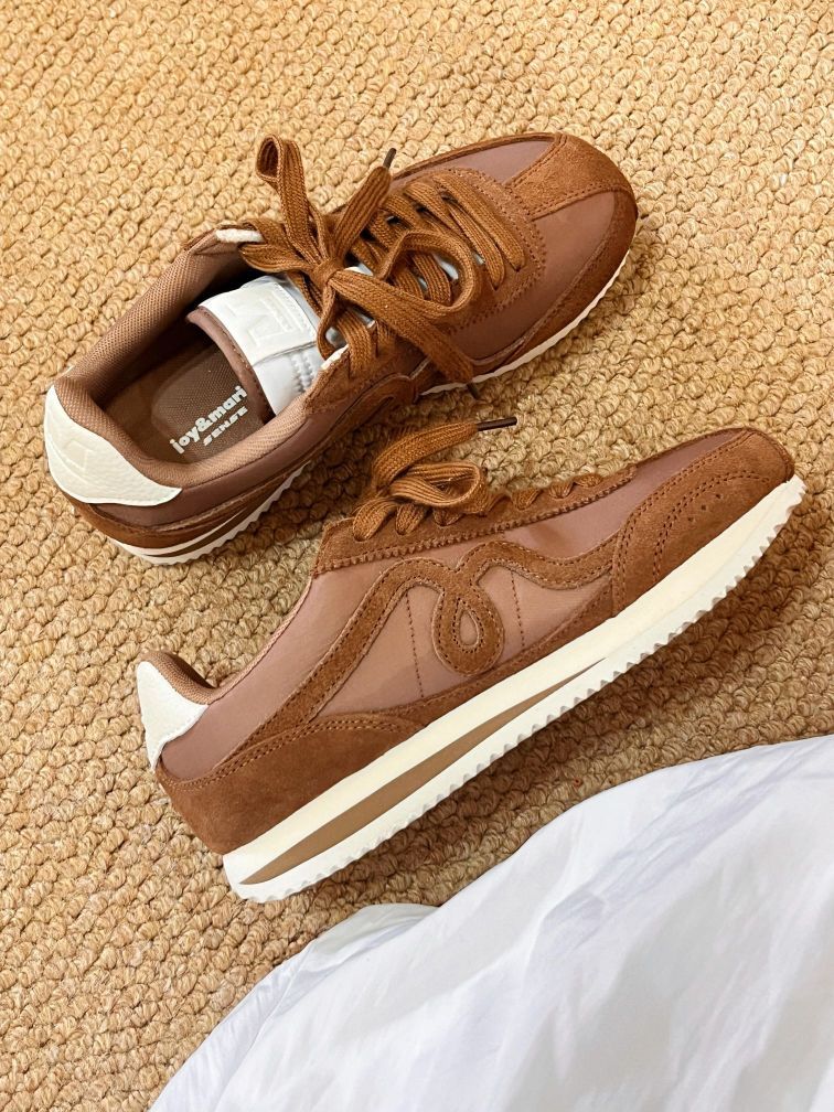 这双鞋一上脚,直接把“秋冬氛围感”捏得死死的: 暖乎乎的焦糖棕调,麂皮+柔雾棕面料拼接,质感软糯又显高级;厚底轻软不压脚,走久了也没负担。 配米白毛衣、卡其长裙都糯糯的,是那种“随便穿都自带温柔滤镜”的款。 秋冬的鞋就该是这种暖调,上脚连心情都变柔和了~