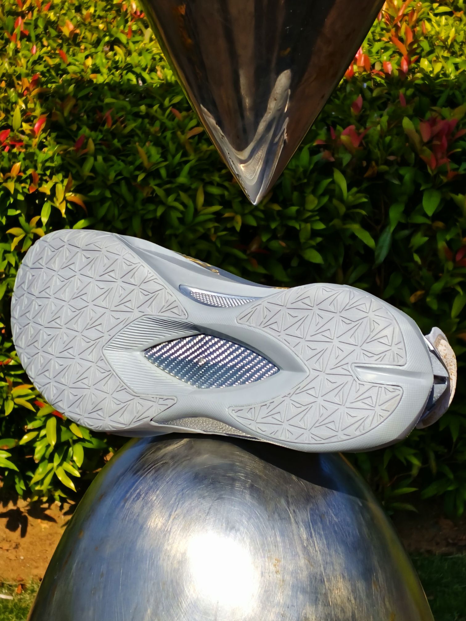 最近很火的4代还没入,买了我想要很久的JB3代铠甲 配色直奔主题,银色皮面纹理很有铠甲的质感😍在阳光下尤为耀眼,金色巴特勒logo亮明球鞋身份。皮质鞋面适合秋冬季实战,个人宽脚初试穿感受良好