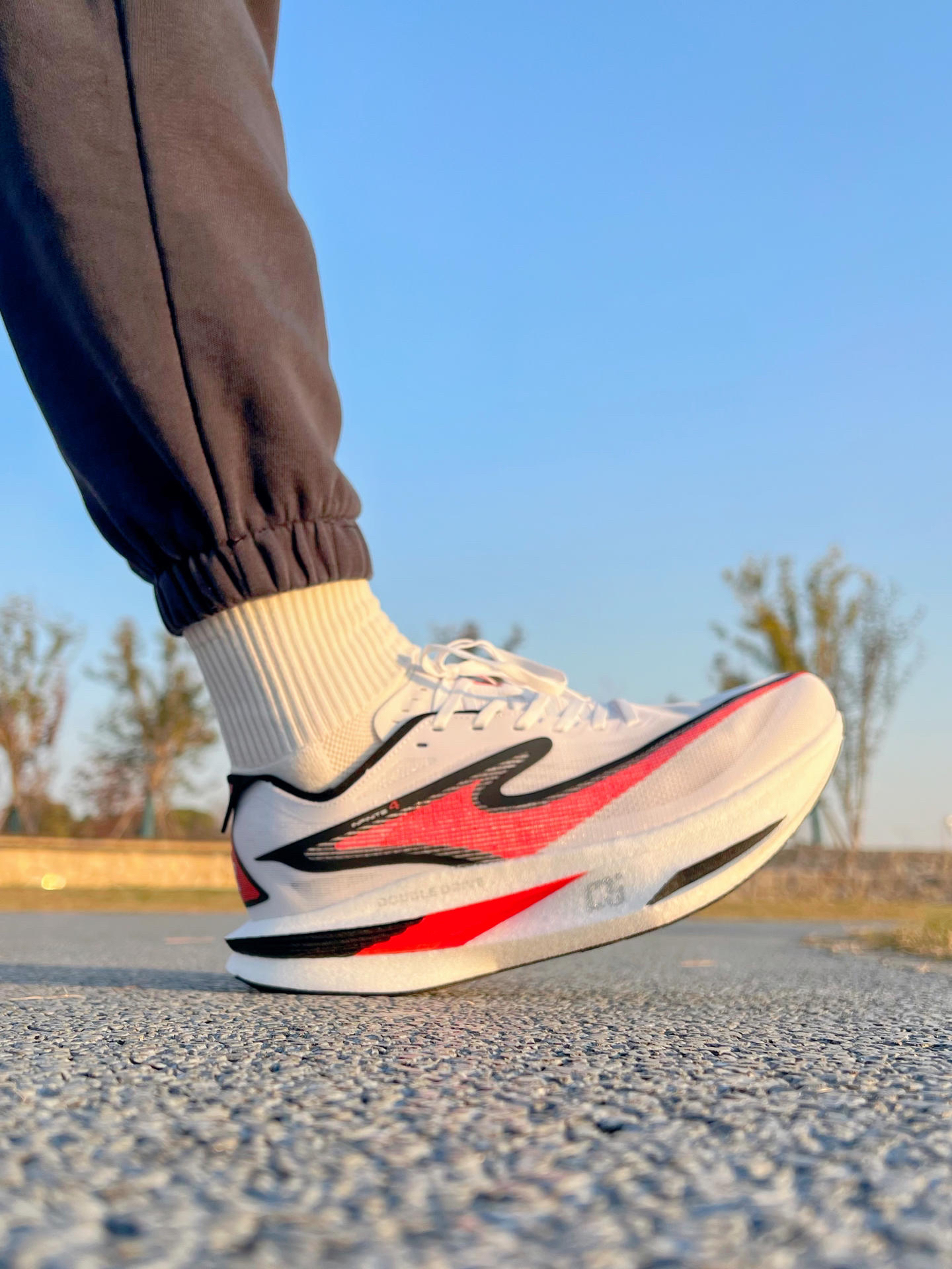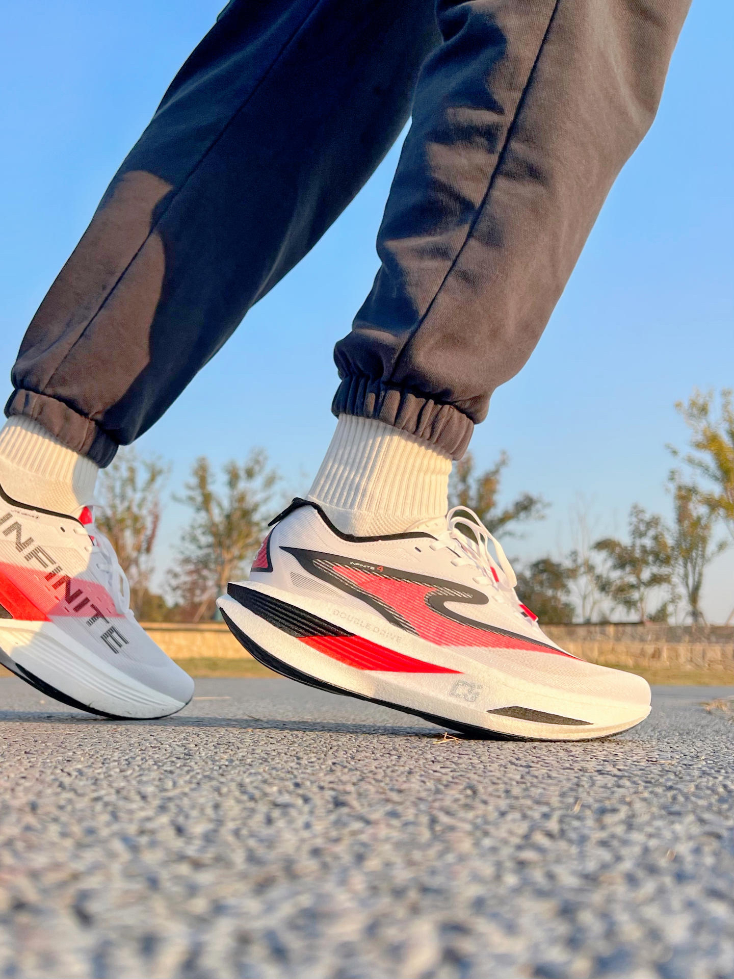 这一代芷境4太帅了 外型有点像跑车🏎️ 加宽了中底之后,前后掌的稳定性都很好[强_blue][强_blue] 🏆后掌的弹射结构可以在撞墙期提供更好的助力 偏韧的脚感跑起来触地很脆 #低头拍跑鞋 #我的跑马战靴 #我的PB战靴 #芷境4稳王 #史上最稳碳板跑鞋