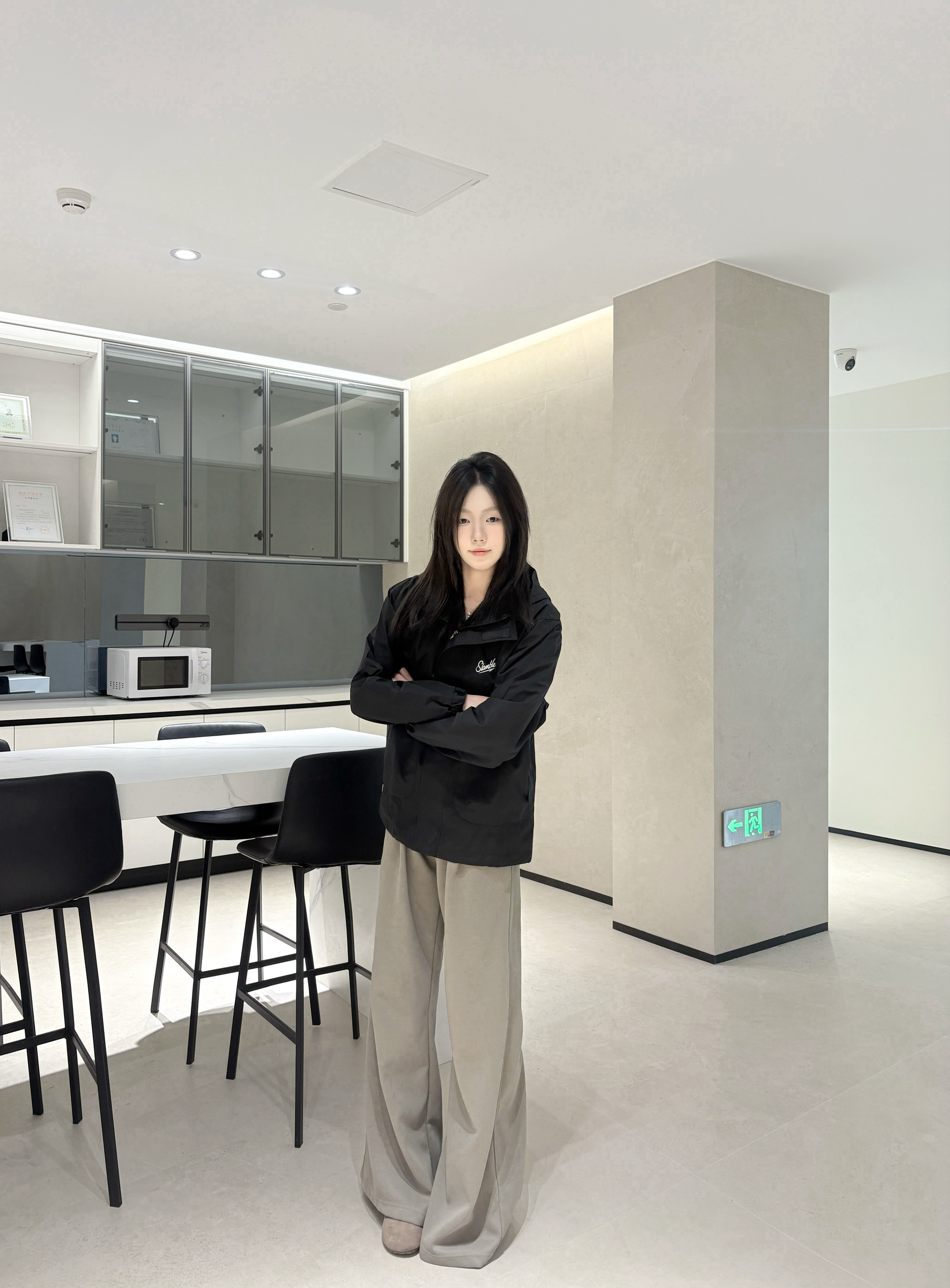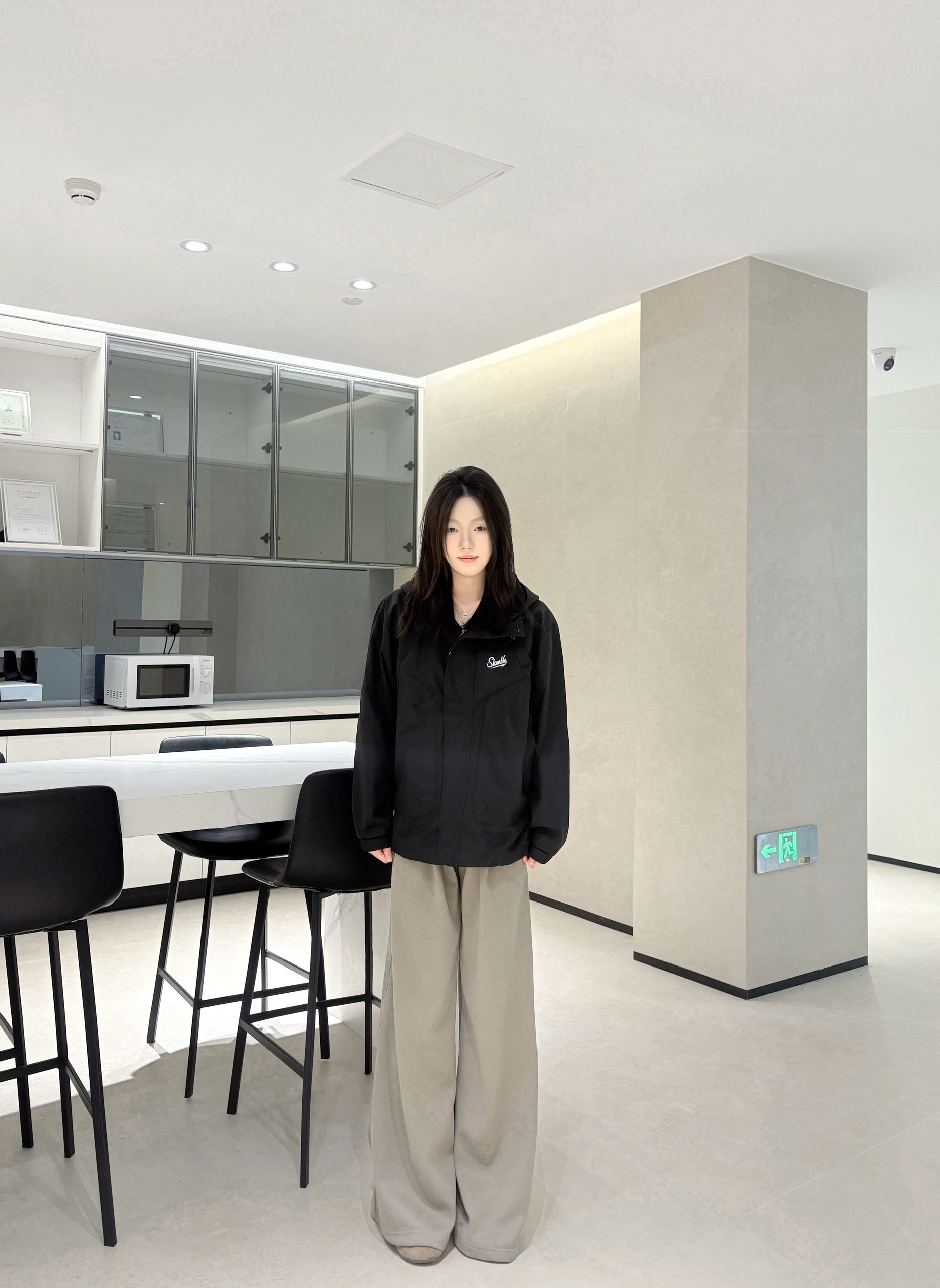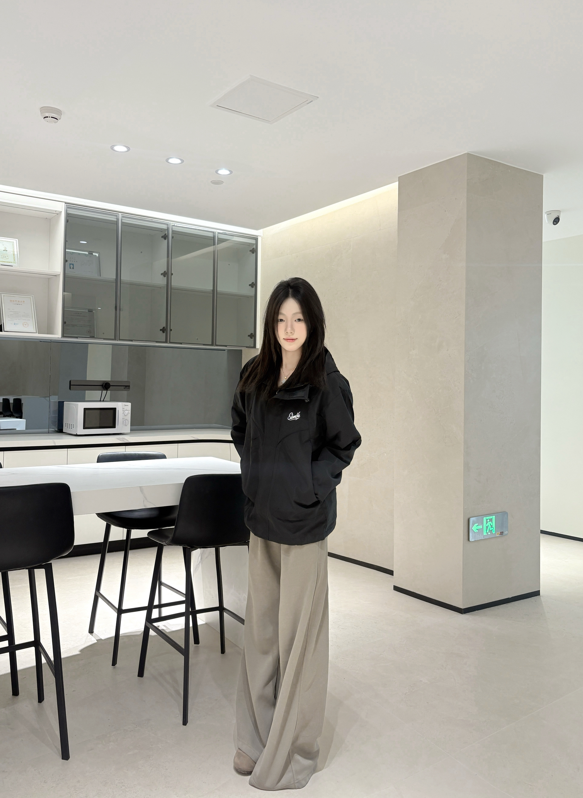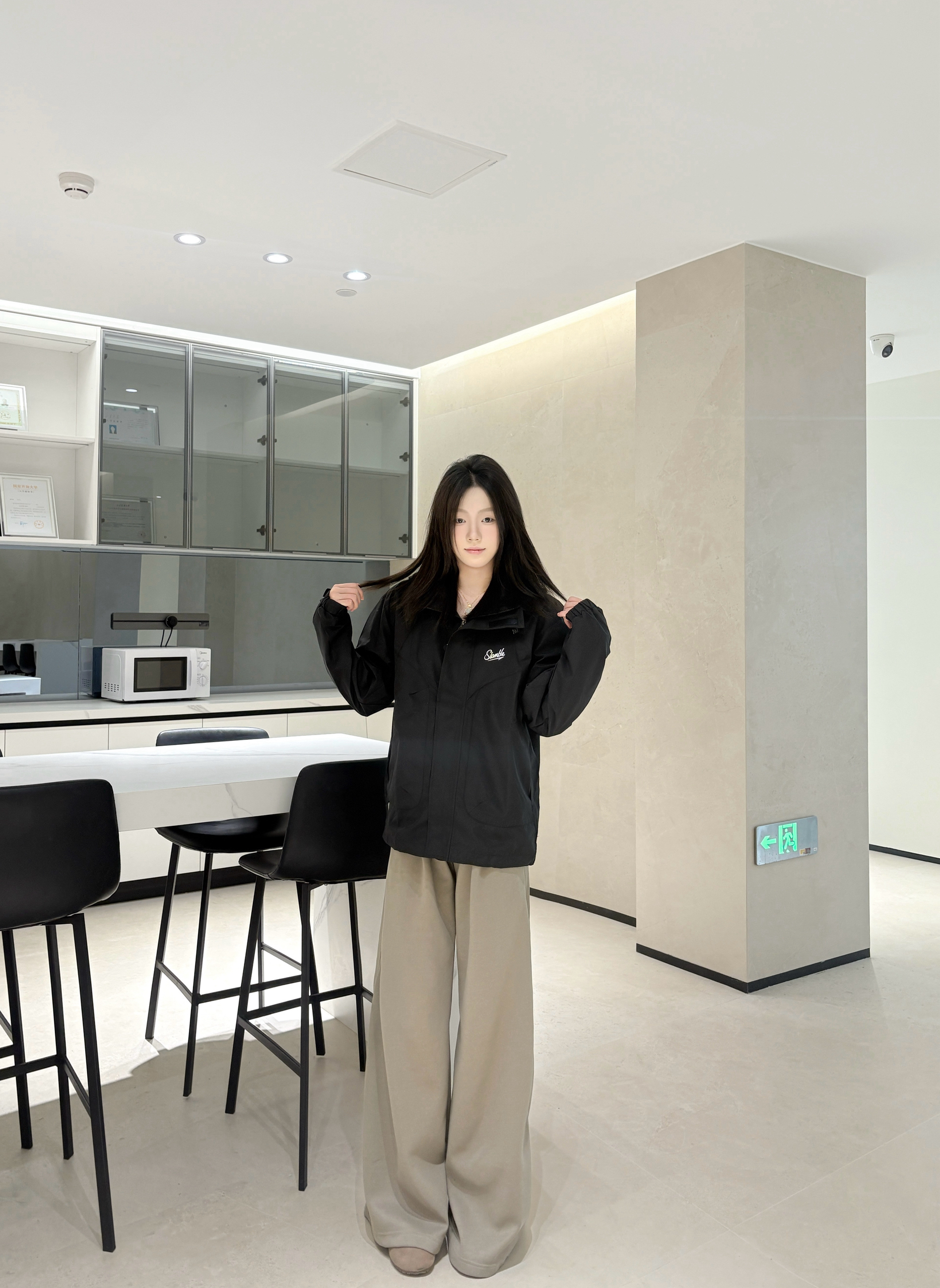最近常穿的这件黑色外套,版型是宽松款,套厚内搭也不挤,肩线刚好不会显壮。 面料是偏挺括的那种,不容易皱,胸前的小标设计不夸张但有点细节感。 口袋是斜插的,揣手或者装小物件都方便,长度盖到腰的位置,配阔腿裤刚好能压得住版型。 不用特意搭配,随便穿穿都清爽利落,日常出门或者待在室内都舒服。