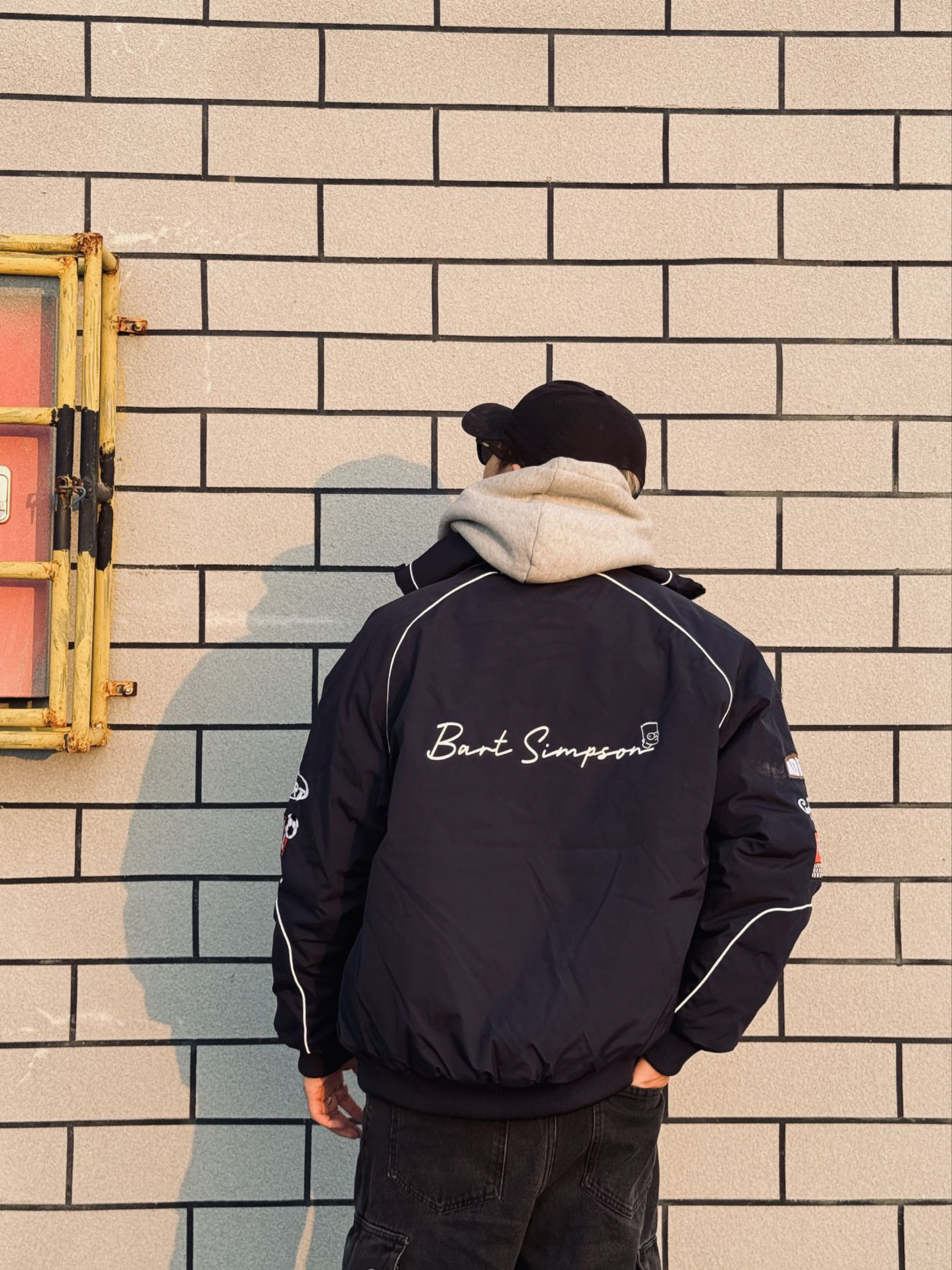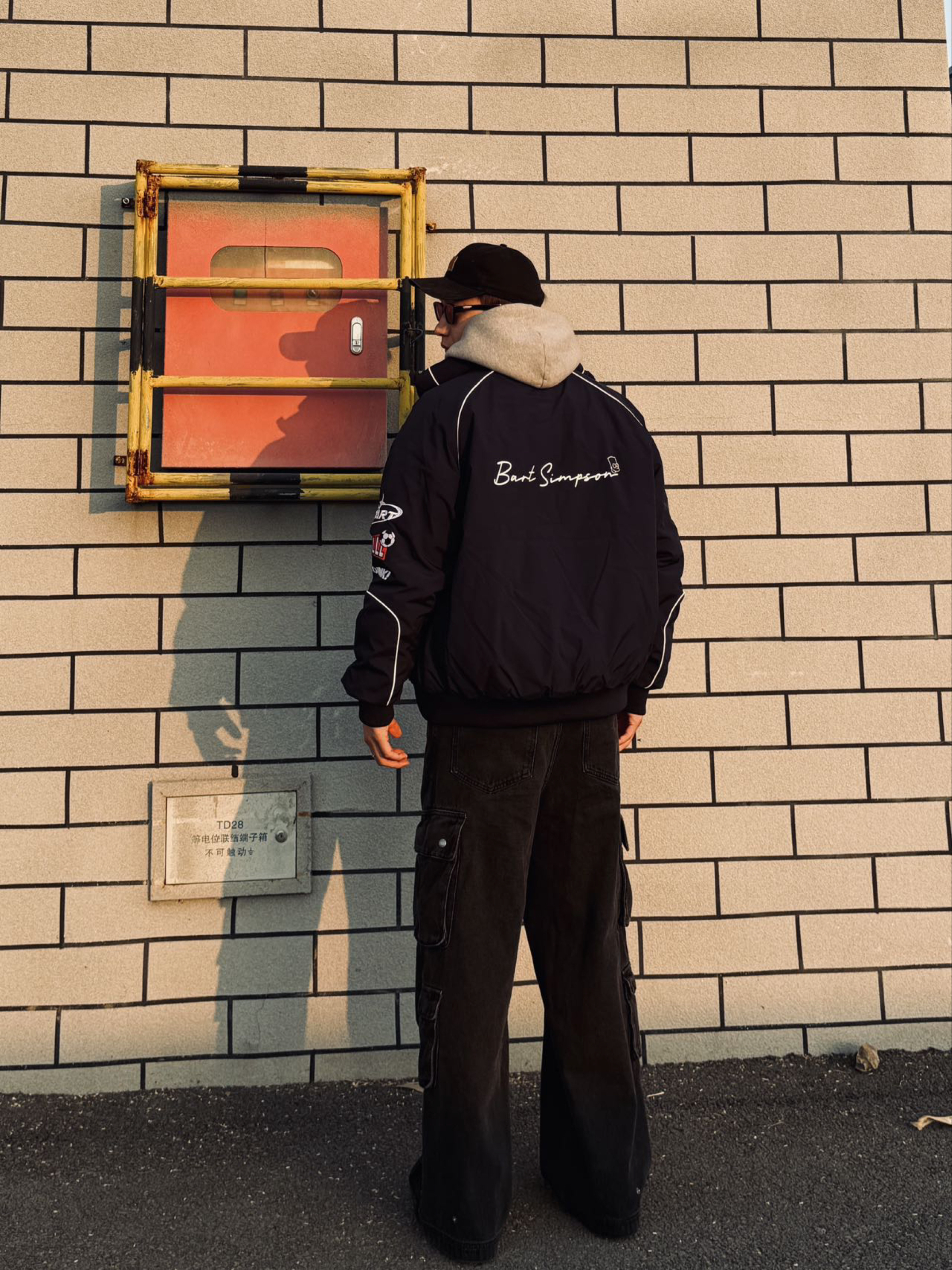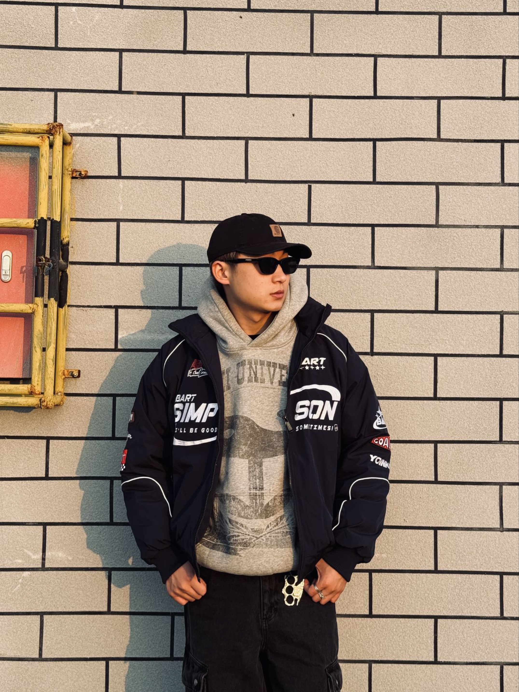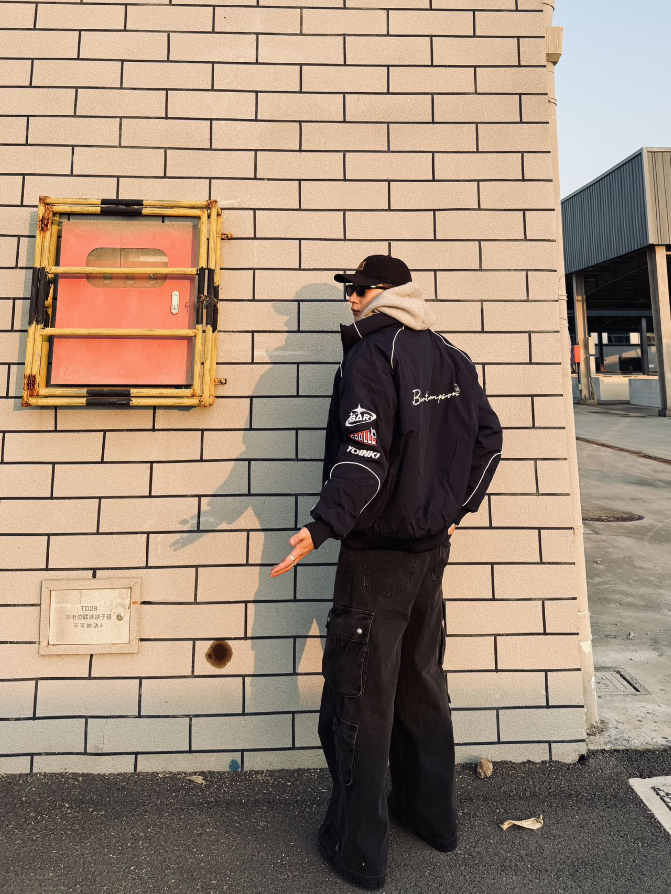 冰美式今日年度穿搭 傍晚溜老厂区 靠米砖墙站着 降温的风裹过来🌊 这套刚好兜住暖意 近期通勤常穿的一套 松垮不邋遢还够实用🌧️ — 👔藏青外套是美式高街调 大字母刺绣带复古感 撞色线条像赛车服 立领拉满能裹紧脖子 防风赶地铁太刚需 加厚鸭绒真暖 揣兜站半小时没冻透🔥 选的L码 塞厚卫衣也不挤 叠穿空间足 — 👖黑工装牛太省心 多口袋装耳机钥匙 通勤不用背包 中腰面料带保暖感 秋冬穿不凉腿 XL码...