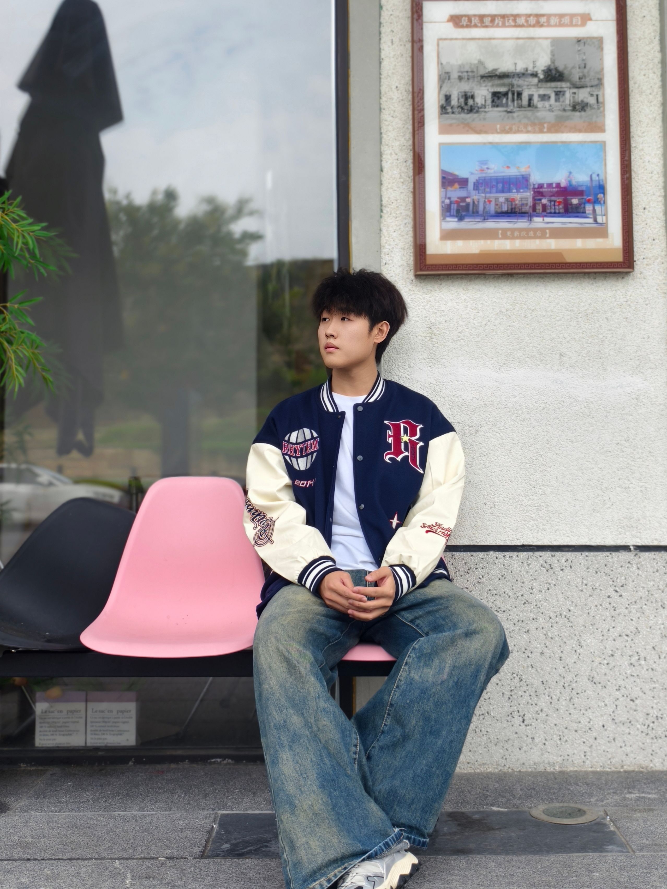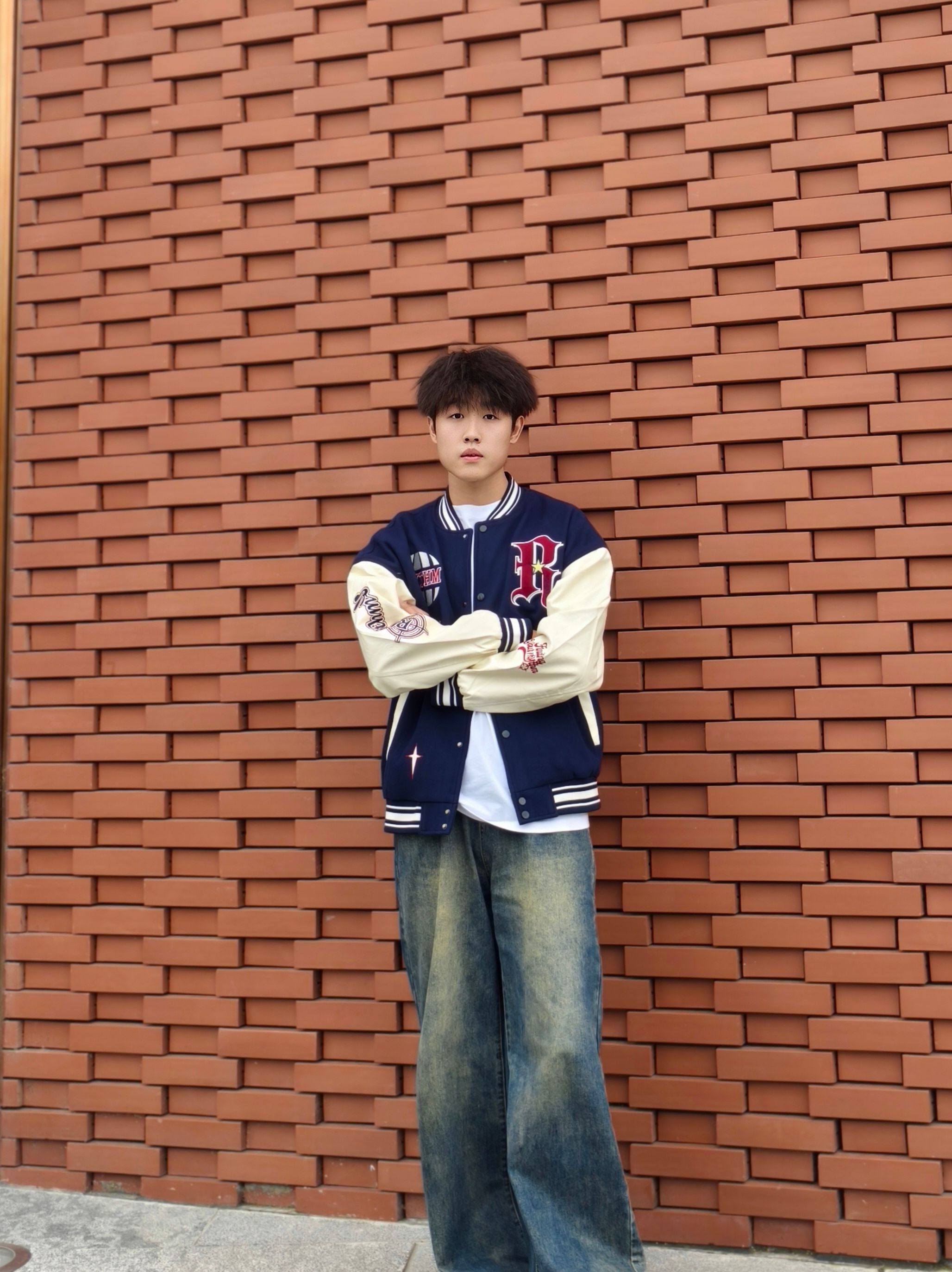 秋冬衣柜里必须有件棒球服!藏青拼米白的配色经典又不挑皮,重工刺绣的logo超有质感,单穿内搭都好看,搭件白T就自带美式校园男主那味儿👦 下装选了垂坠感超棒的阔腿牛仔裤,做旧的蓝调牛仔中和了棒球服的硬朗,宽松的裤型走路带风,小个子男生也能穿出大长腿🦵 整套穿搭痞帅又不浮夸,日常上学/出门炸街都能穿,随便往那一站,氛围感直接拉满,朋友圈点赞数都翻倍📸
