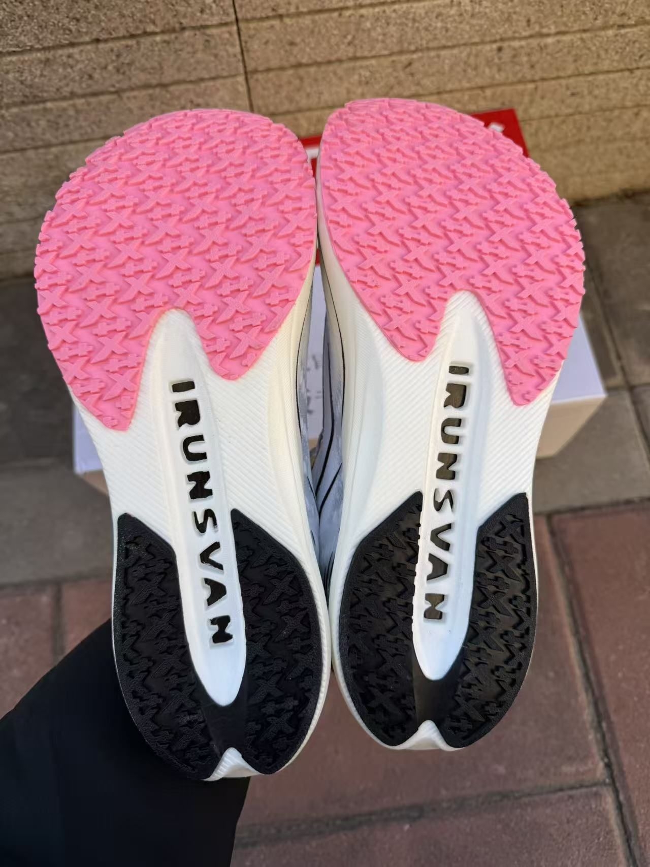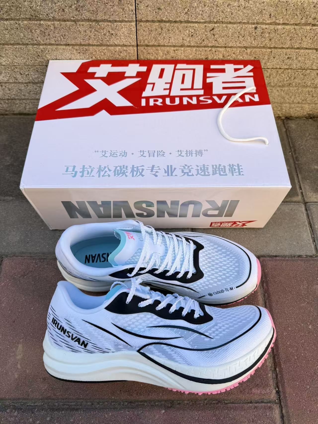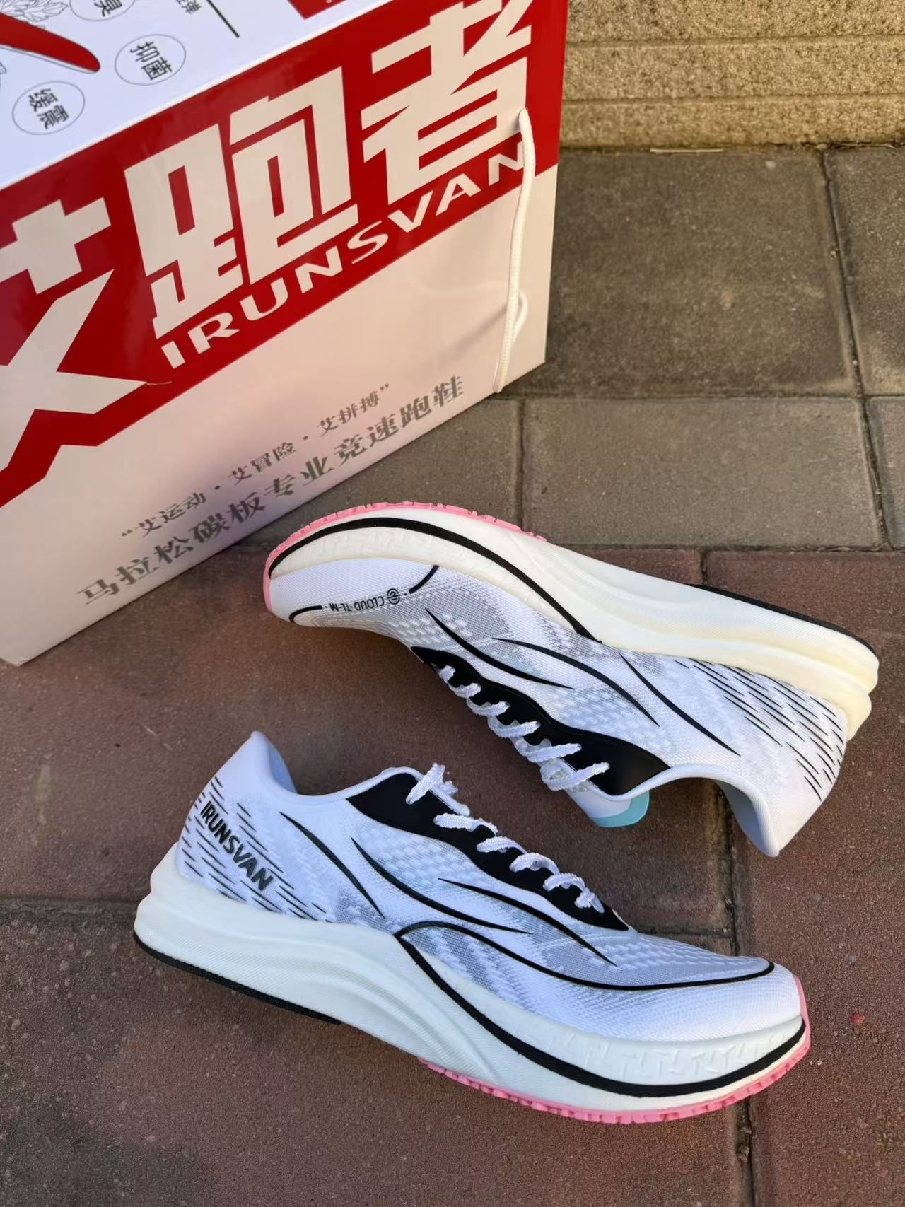 兄弟们,刚到手的艾跑者碳板竞速鞋,今天直接上脚给你们测! 先看包装,盒子上写着‘马拉松碳板专业竞速’,拆开鞋身是白黑拼色+淡蓝内衬,网眼鞋面摸着手感很轻,透气孔肉眼可见,夏天跑着应该不闷脚。鞋侧的‘IRUNSVAN’标识+流线型线条,颜值这块是真的清爽。 重点说脚感:我穿了会儿,鞋底软弹但不塌,碳板的支撑感很明显,踩下去能感觉到回弹力,跑了两步步频都变顺了!而且鞋身是真的轻,比我之前的跑鞋轻了快一...
