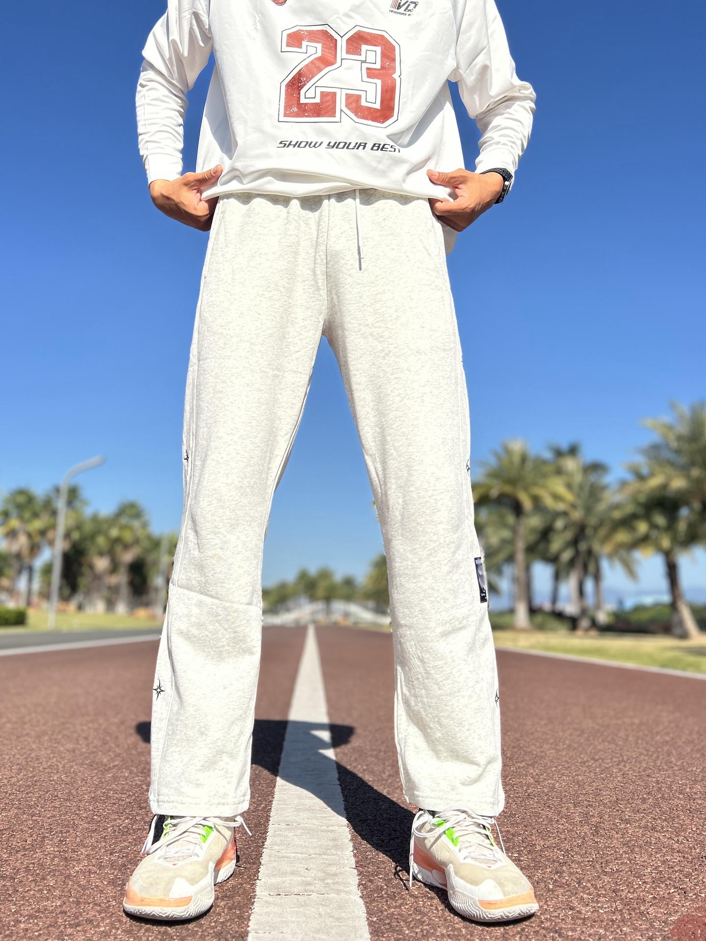 hi~是18啊! 最近打球被 #维动 VEIDOORN 星芒✨ ⭐️这条弯刀裤拿捏了!针织面料柔软亲肤, 💫保暖的同时还有弹性,不会影响我打球的动作。 🌟宽松直筒版型超藏肉,急停变向一点不拖沓, ✨ 裤子上的星星刺绣是点睛之笔, 👀让基础款有了辨识度。 🌞高腰设计配合宽松的裤腿,视觉上很显腿长, 随意搭配一件运动外套或连帽卫衣就很有型, 轻松切换球场街头。性价比直接拉满~ 我186/82,选择X...