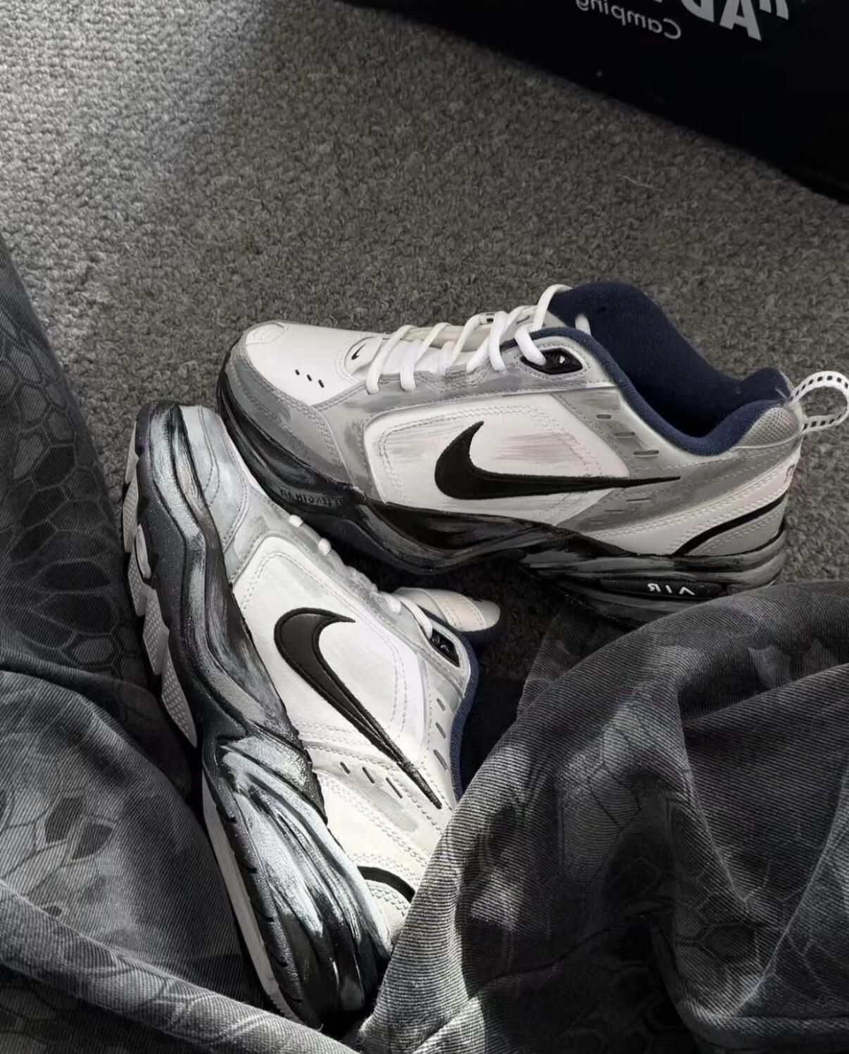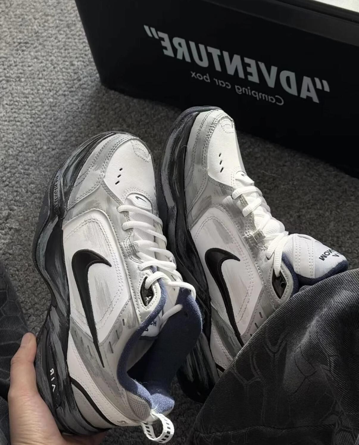 1. 设计亮点 - 定制解构玩法:双勾+超长绑带,视觉层次感直接拉满,出街回头率稳了 - 细节质感:鞋侧“Resiliencia”手写标识+做旧中底,复古机能那味儿直接焊在鞋上 2. 上脚体验 - 材质:网布+皮革拼接,透气不闷脚,秋冬穿也不会太单薄 - 脚感:中底自带缓震属性,通勤暴走/日常出街都能踩出软弹感 3. 穿搭适配 米白+灰黑的低饱和配色,搭破洞牛仔、运动卫裤、...