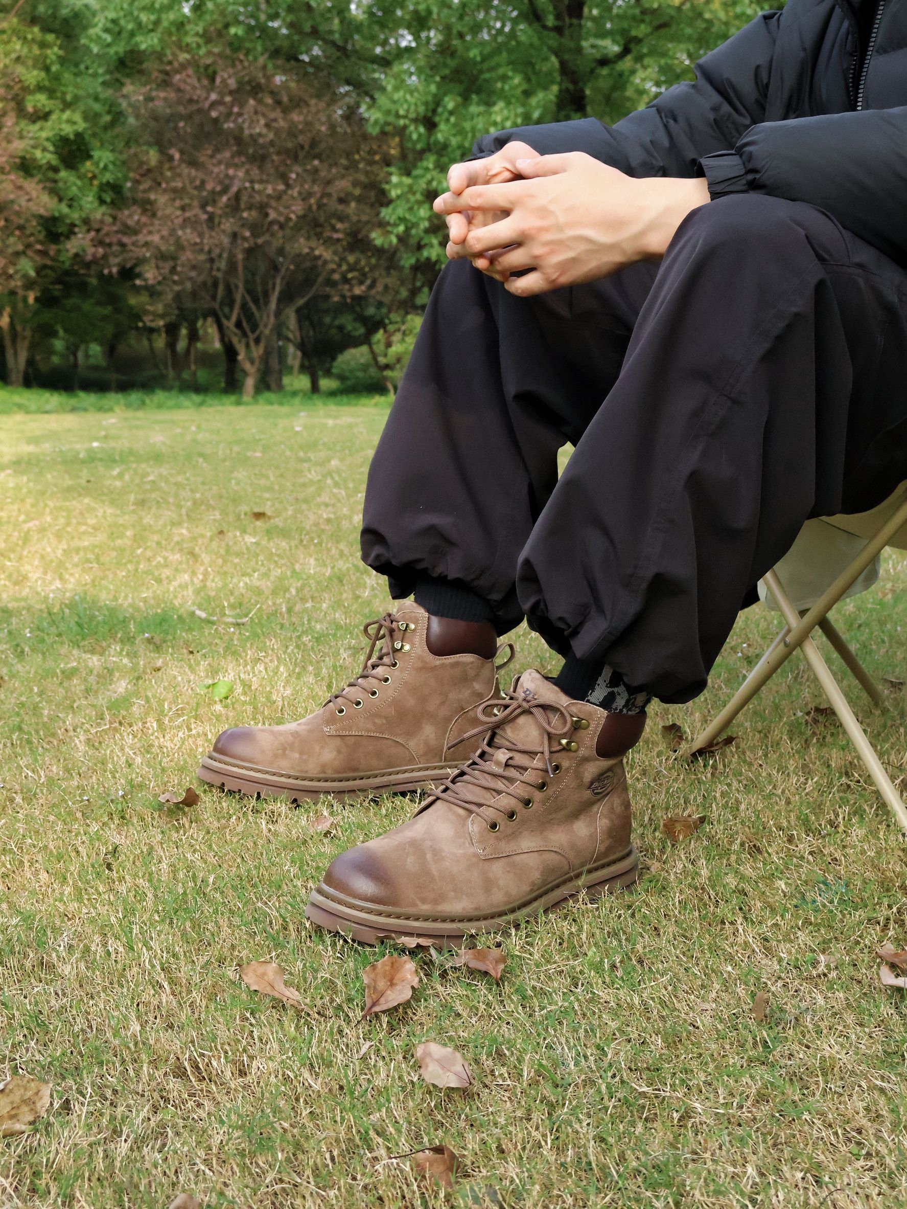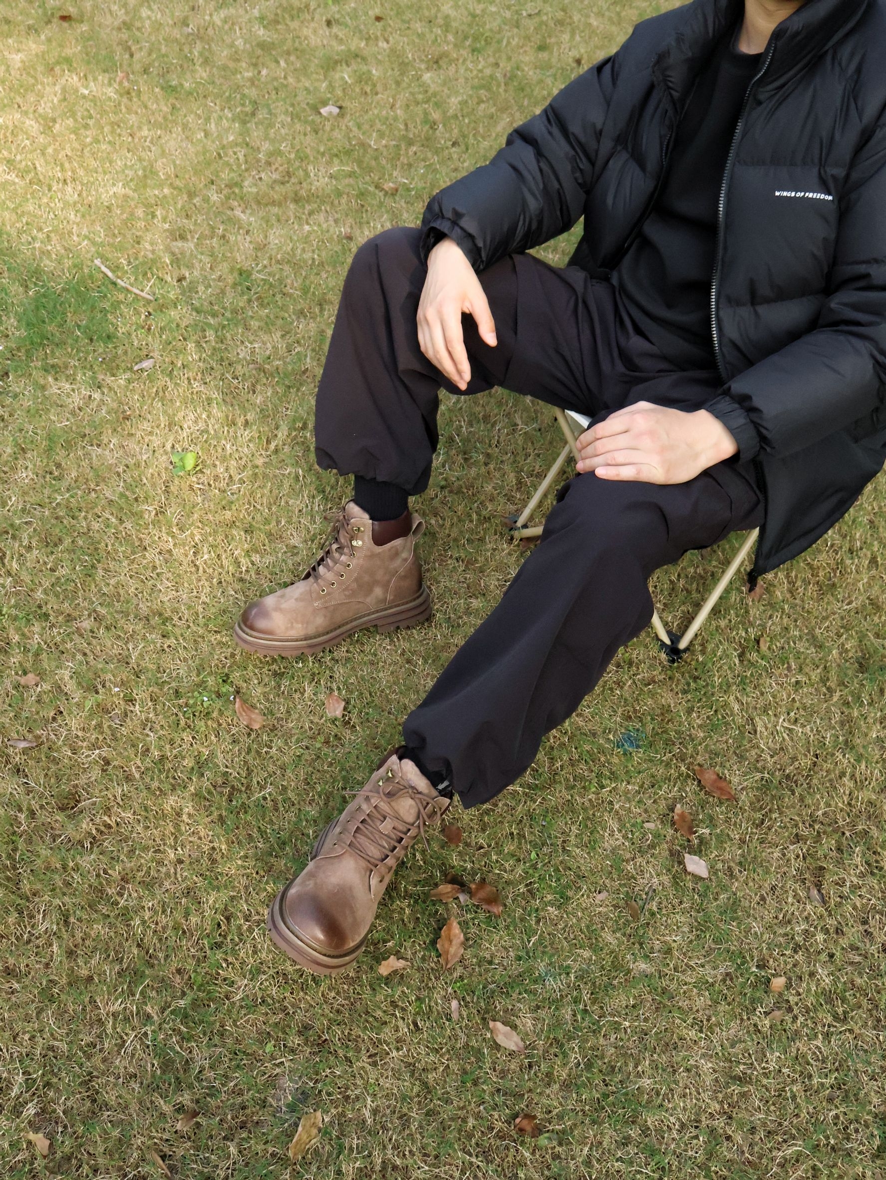户外不帅的马丁靴我不穿!!日常户外马丁是我最爱的选择啦~今天上身]百搭的羽绒服外套~整体黑色的高级简约~ 是户外工装裤~ 简约时尚很奈斯~ Dickies复古休闲马丁靴~鞋子的版型很帅气百搭的~整体做旧复古设计很奈斯~ 鞋底增高5公分左右~很有型~ 细节做工满满~很结实耐穿~ 适合冬日户外休闲~ 尺码可以正常选码哈~ 户外马丁靴这样搭配给小倪户外打几分