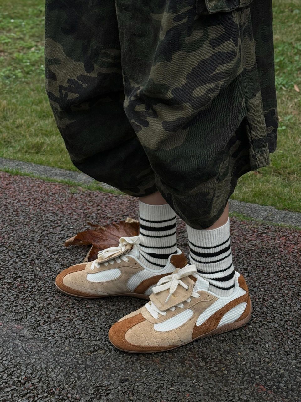 1. 鞋款核心信息 - 款式:复古拼色德训鞋(赛车鞋型) - 风格:美拉德色系适配秋冬氛围,属于近期识货社区高热度“季节限定款” 2. 设计&材质亮点 - 配色:浅棕+深棕+米白的低饱和拼色,自带复古质感,视觉层次丰富 - 材质:麂皮(鞋头/鞋侧)+透气网布拼接,兼顾质感与秋冬适度透气 - 细节:翻盖可拆卸设计增加穿搭玩法,鞋身精致缝线提升做工精致度 3. 上脚体验 ...