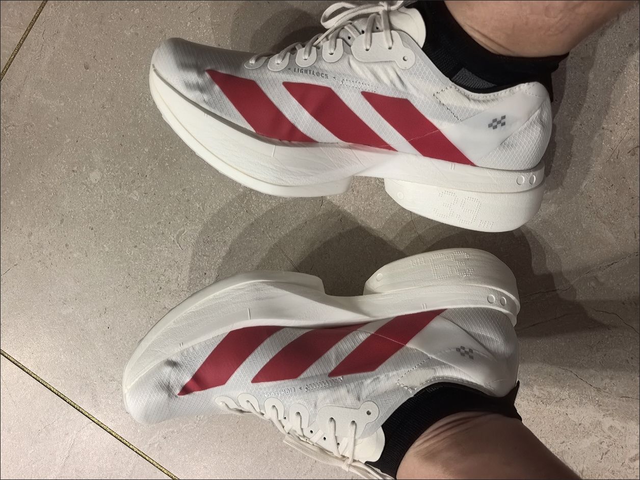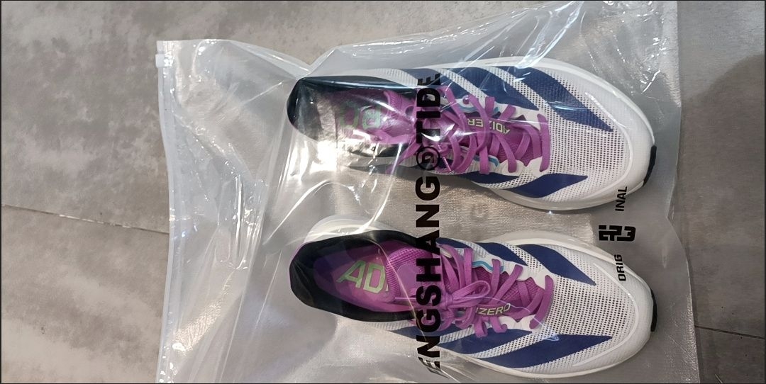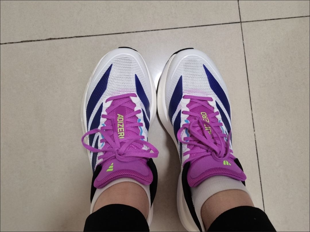 昨天拆这双Adizerro的时候,其实是抱着“试试水”的心态——毕竟之前踩过不少“颜值>脚感”的雷,但拆开防尘袋的瞬间就改主意了:紫白底色+粉紫鞋带的配色,是那种不扎眼但越看越舒服的温柔感,连鞋侧的条纹都做得很精致,不是廉价的胶印质感。 我平时脚宽,买跑鞋总怕挤脚,这双按正常37码入,鞋头刚好留出半指空间,后跟的包裹感软乎乎的,第一次穿就没磨脚踝(之前某牌跑鞋刚上脚磨得我贴了俩创可贴)。今天穿...