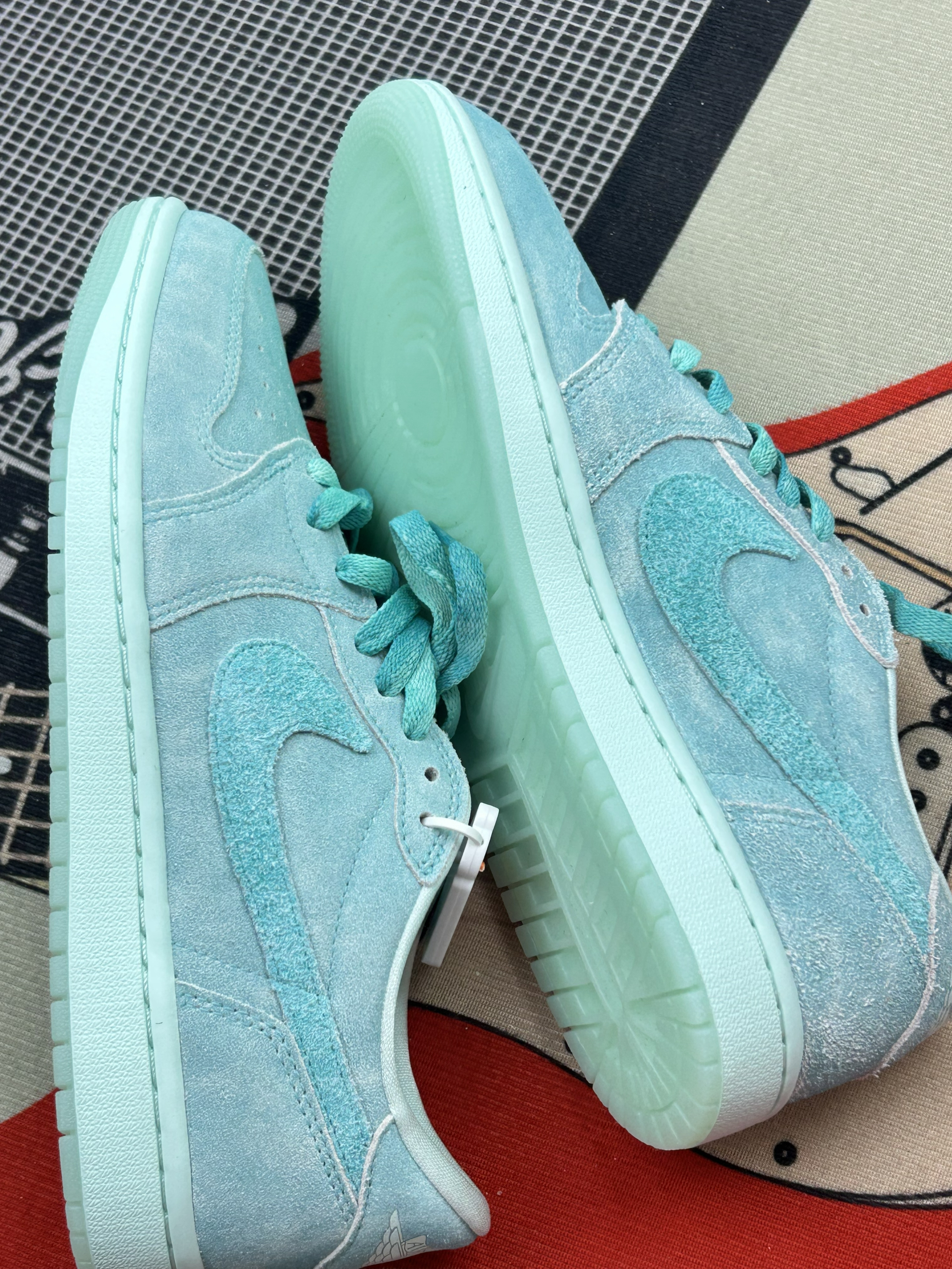 标题:这双薄荷绿AJ1 low,我穿了两周想说说大实话🤔 刚拿到手觉得这薄荷绿麂皮挺戳审美,上脚轻是真的,配浅色系裤子还挺清爽🍃。 脚感属于不软不硬那种,逛半小时街还行,久走的话后跟有点磨(可能我没穿厚袜子)。鞋舌的Nike标是缝上去的,很喜欢的设计点