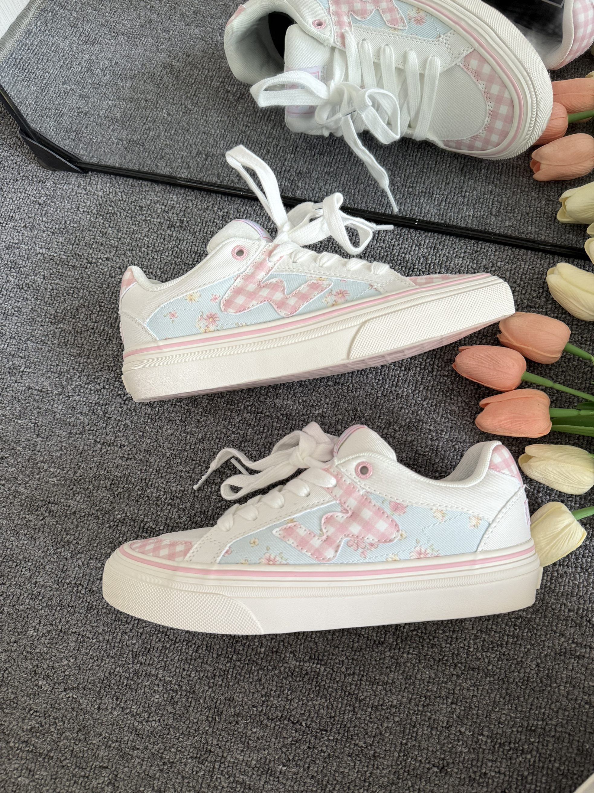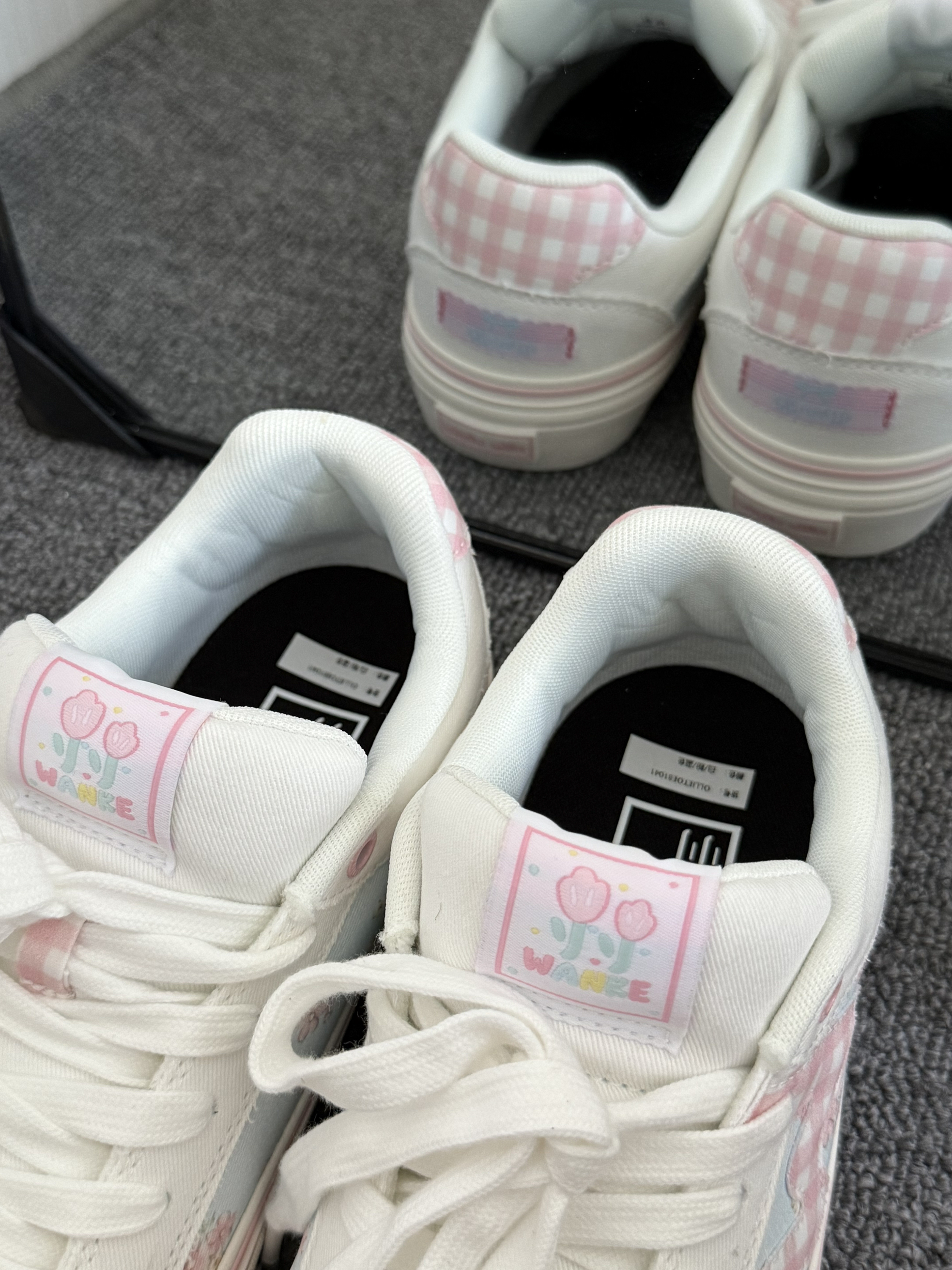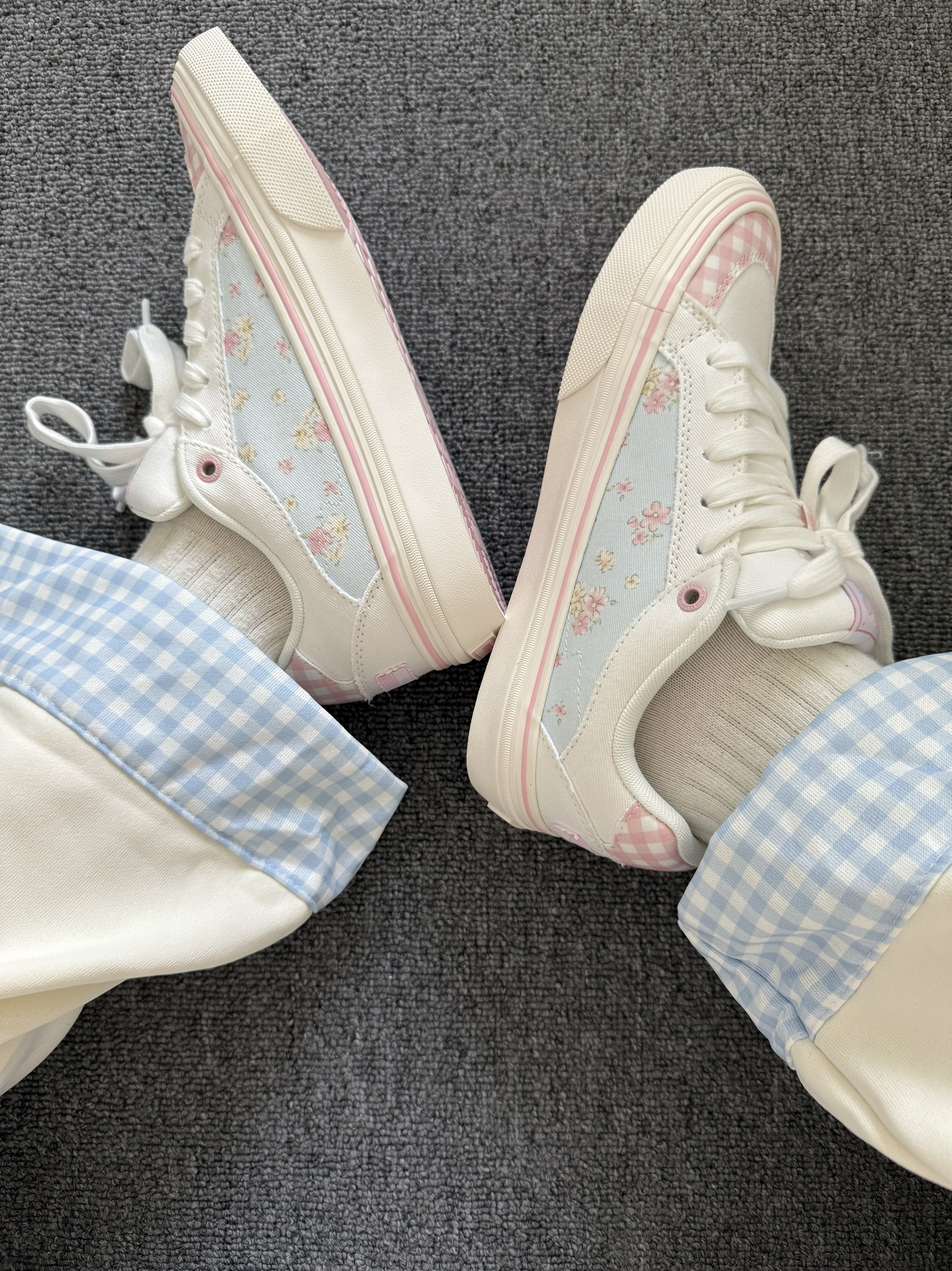 顽刻这双低帮帆布鞋太懂甜啦🍬!白鞋身铺着布鲁比粉棋盘格,细碎小花悄悄点缀🌸,软萌感拉满还超百搭~我真的很喜欢这个设计💕 我穿的白色带蓝色裤脚点缀的裤子+浅色系上衣👖,粉蓝白撞色清新又吸睛;搭浅蓝直筒牛仔裤+白色卫衣是元气校园风,配米色针织半身裙+浅粉打底衫👗又甜得刚刚好。不管休闲还是甜妹风都能hold住,日常搭这双鞋出门,可爱感特别足~
