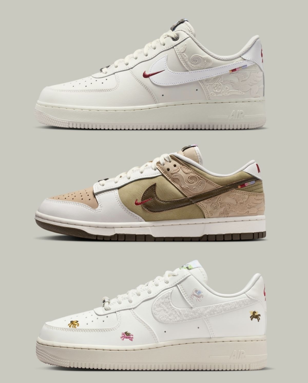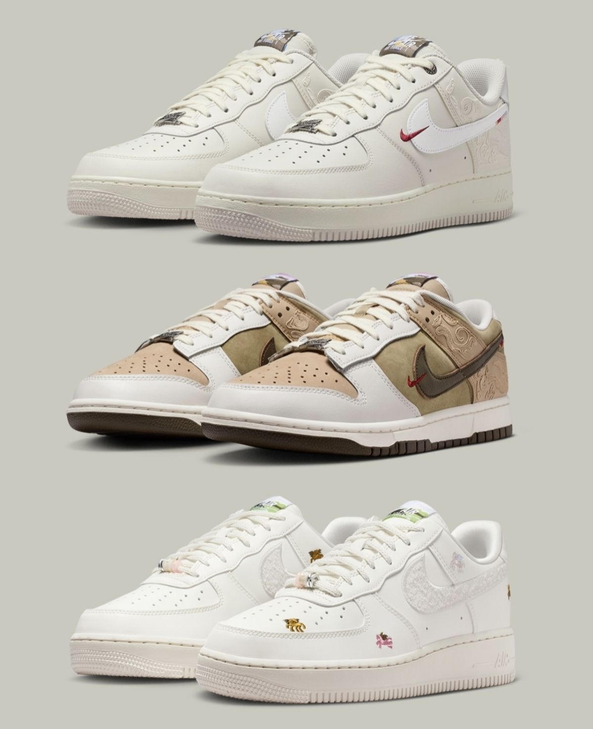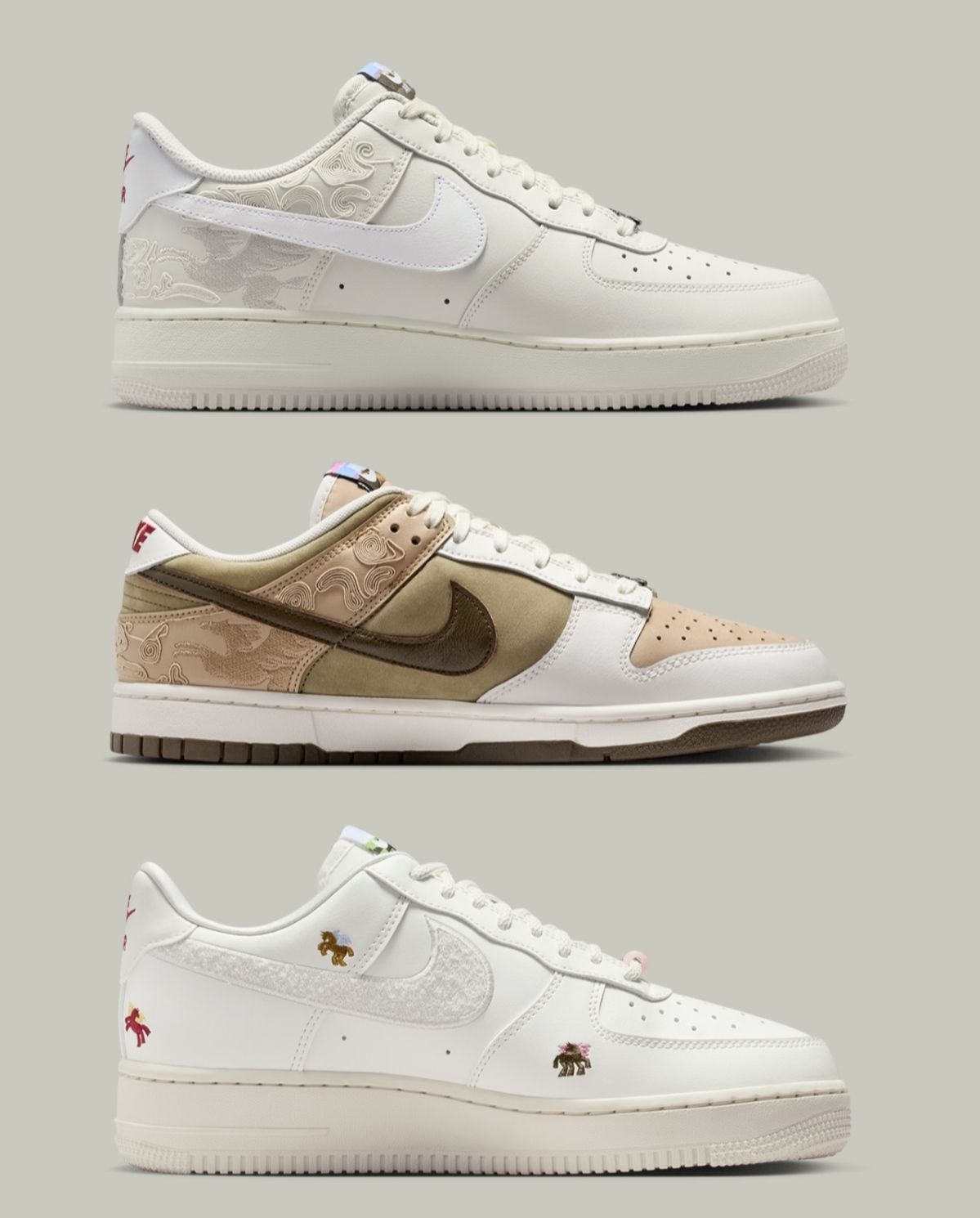 2026马年Nike鞋款套装提前锁死! AF1的刺绣暗纹、Dunk的卡其撞色,每双都把「马」的飒爽藏在设计里,全白配色还自带百搭属性👟 明年必冲的生肖限定,这波审美直接踩在心巴上~