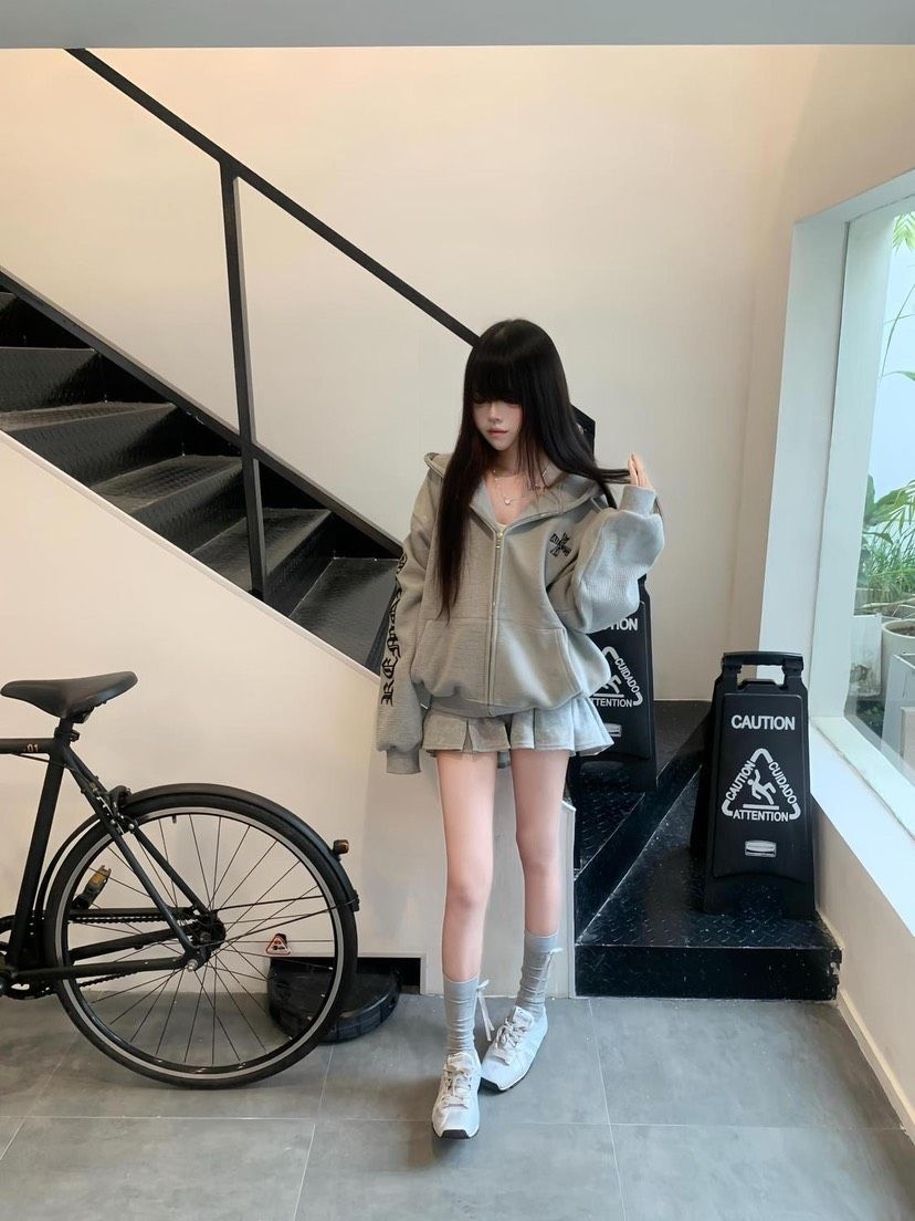 今天在楼梯间随手拍的这身灰调卫衣套装,直接把“松弛感”焊在了身上。 华夫格面料软到像裹着云朵,拉链款比套头衫多了几分随性,抬手就能露出锁骨的小细节超心机。 短裤长度刚好卡在大腿最细处,搭配堆堆袜和白鞋,显腿长到朋友问我是不是偷偷垫了增高垫。 出门买咖啡被路人问链接,回家发现连坐沙发追剧都不想脱——毕竟能把“舒服”和“时髦”捏得这么准的衣服,真的很难不爱。