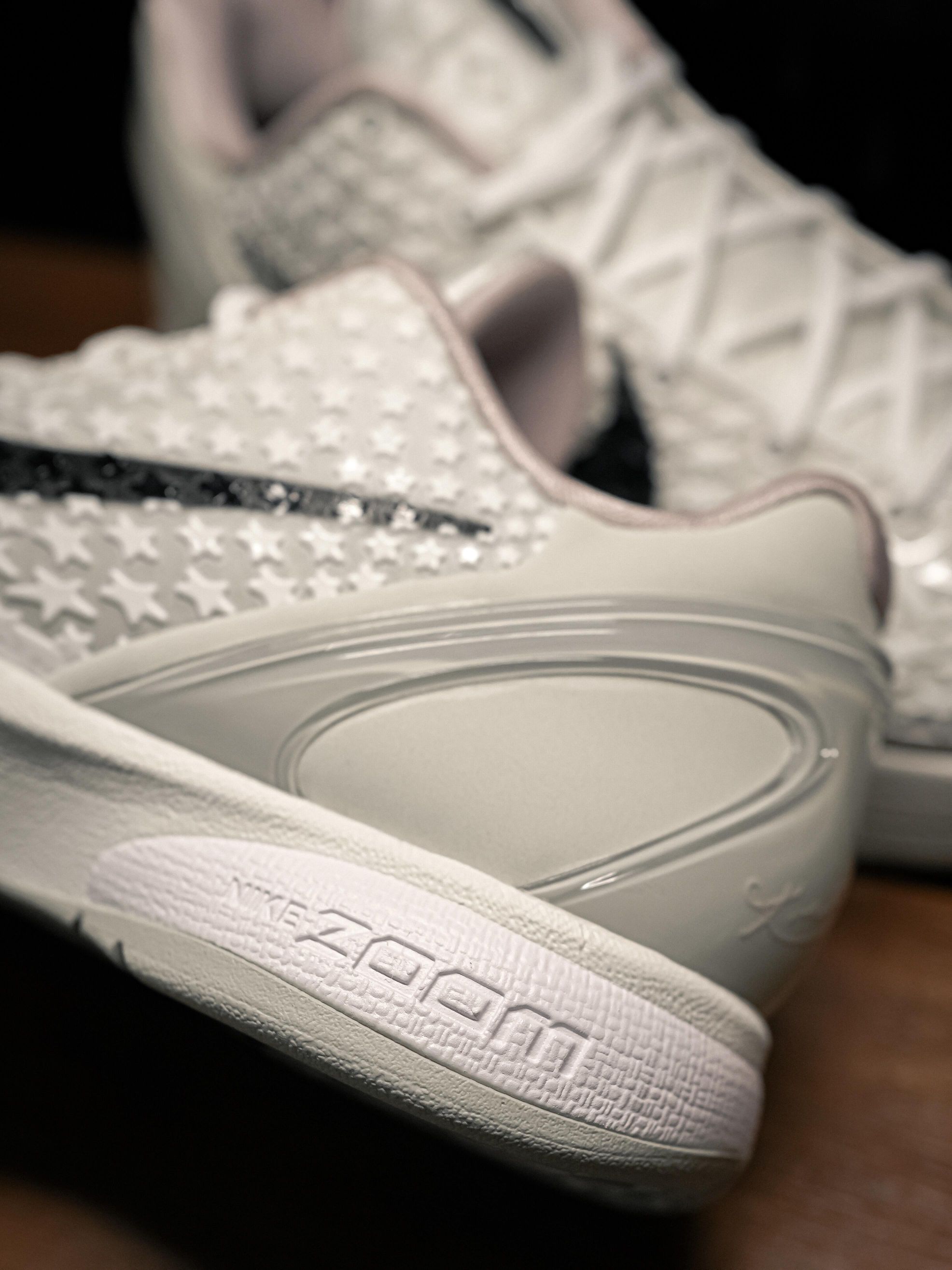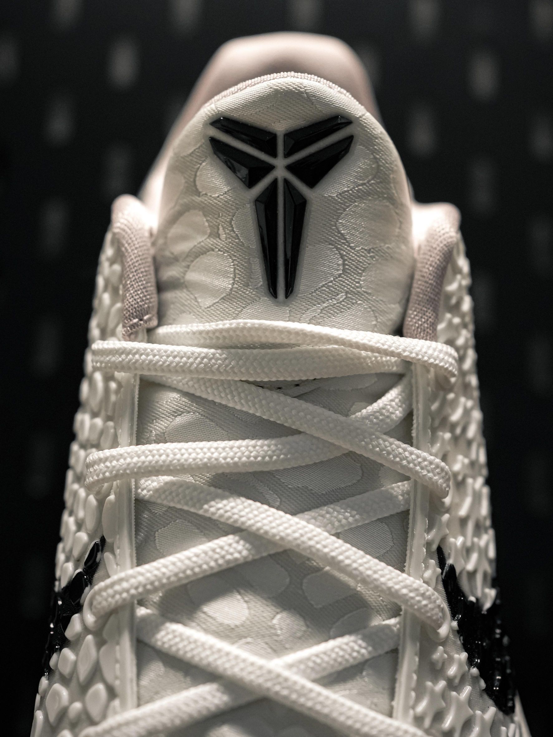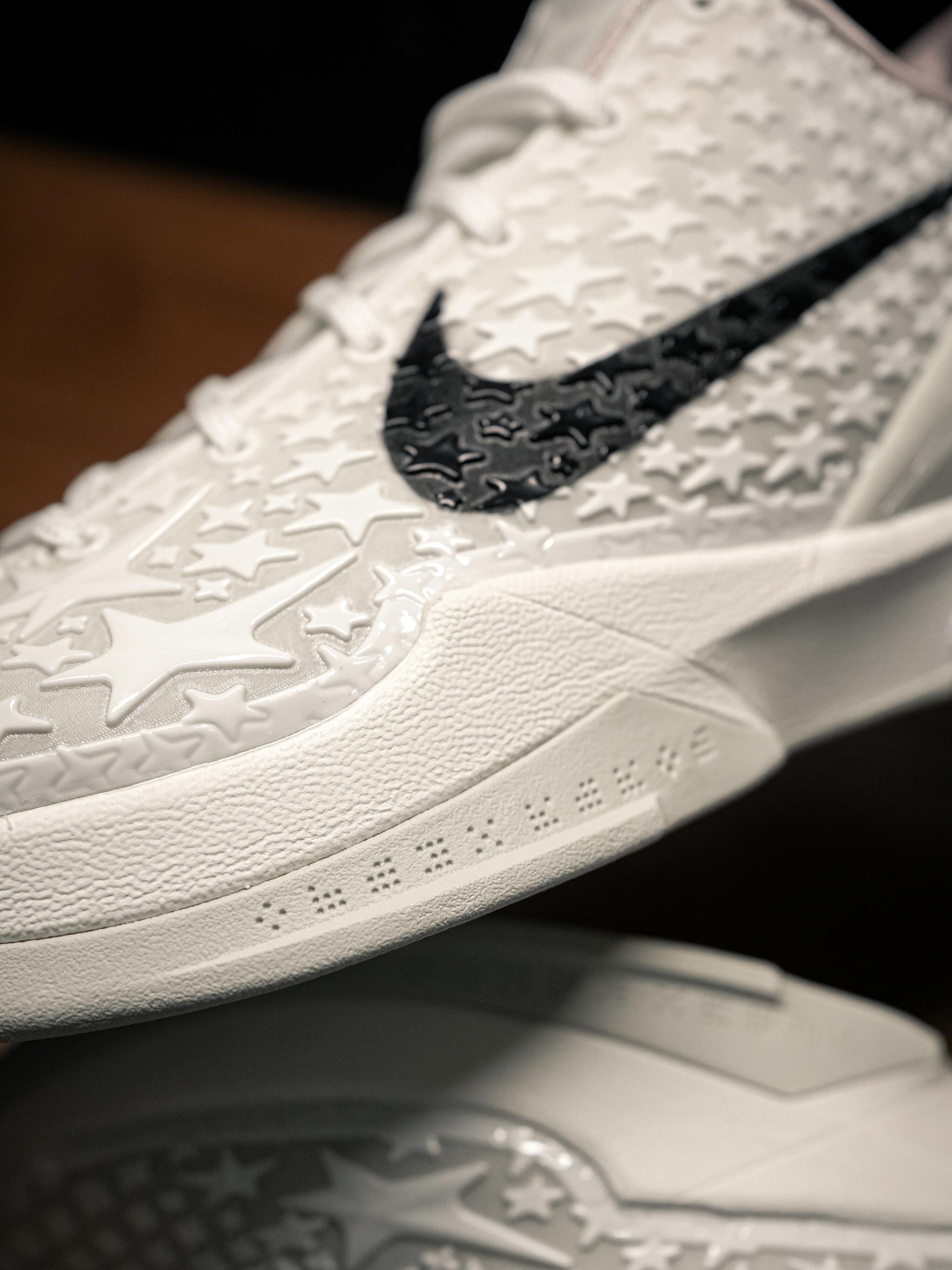 这双是Nike Kobe 6 Protro "White/Black"(也被鞋友称为“白星”配色),是科比经典战靴的复刻版本。 鞋面延续了科比6代标志性的“蛇鳞”纹理,这次换成了满布的白色星星压纹,搭配黑色亮面Swoosh和鞋舌处的科比个人Logo,细节里全是情怀——星星元素既呼应了科比“曼巴精神”的璀璨,也让这双鞋在简约白里多了几分梦幻感。 中底搭载了Zoom气垫,延续了原版的场地感和反...