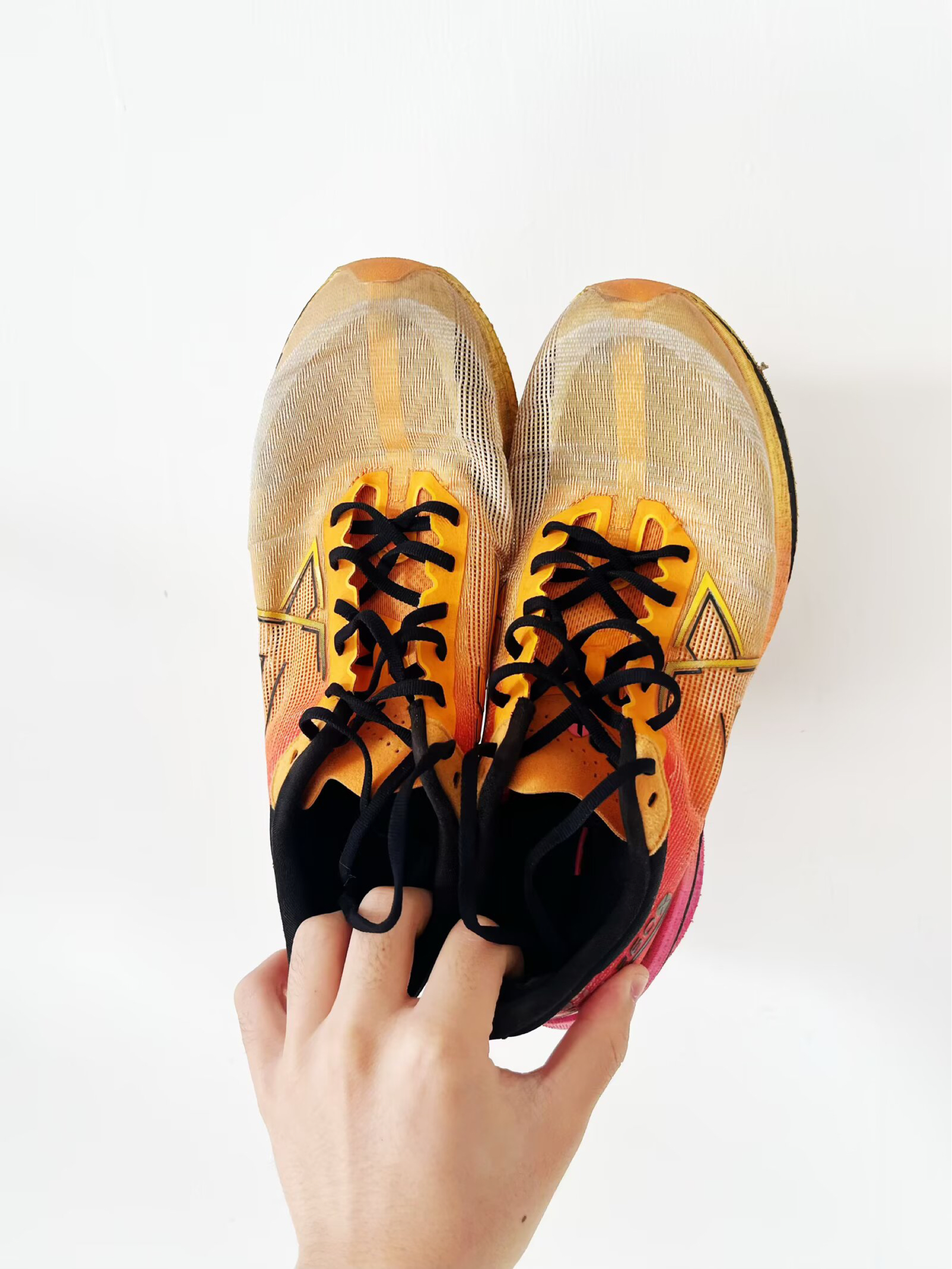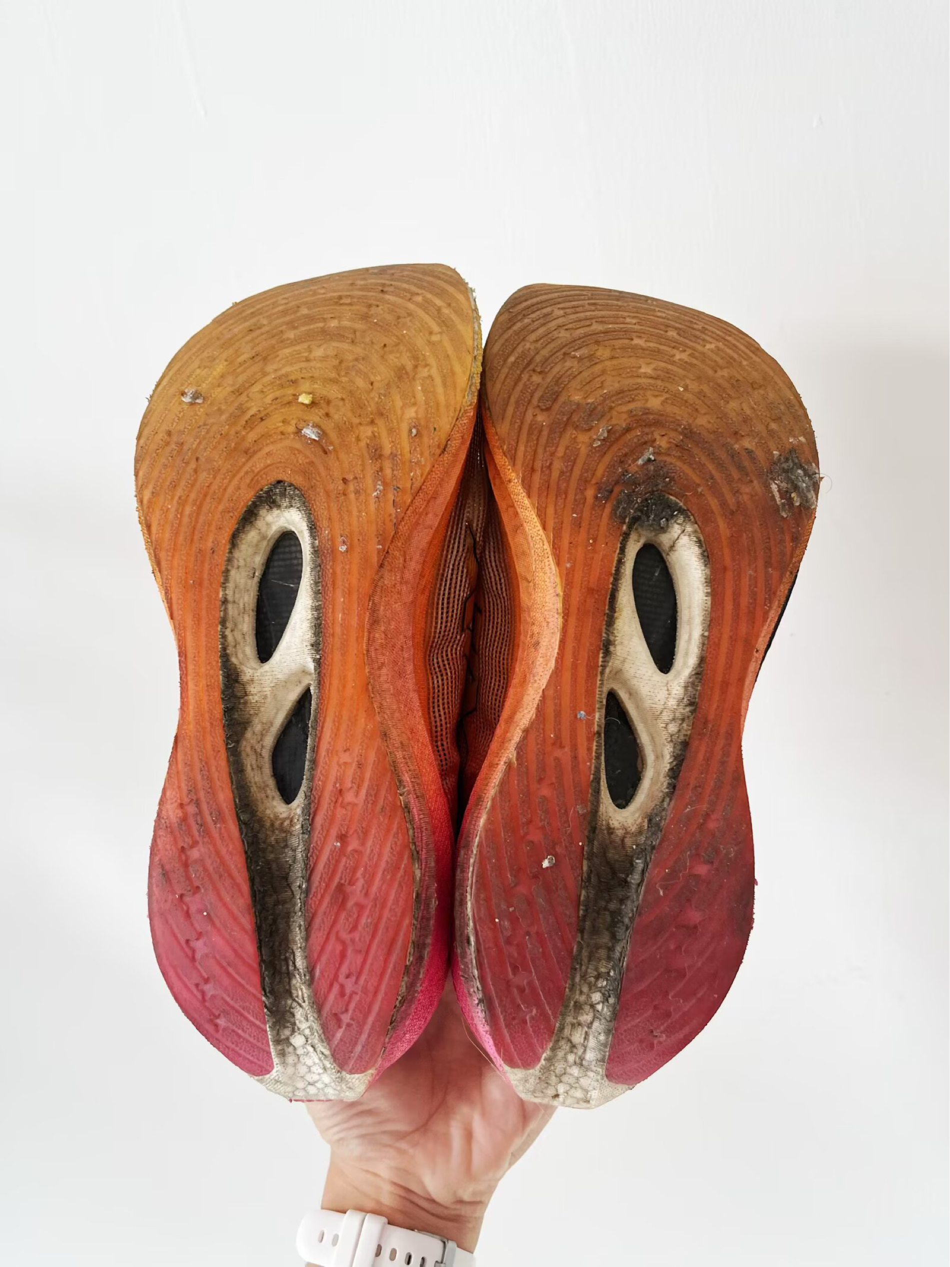 一双来自 特步 的260X1.0胜利配色 这鞋刚发售的时候大概400左右 目前也就不到250 ace中底加cpu大底 搭配绞纵鞋面和刚性碳板 配置还是可以的 比较适合跑场地训练 马拉松10km以内是可以的 全马半马的话就慎入了⚠️