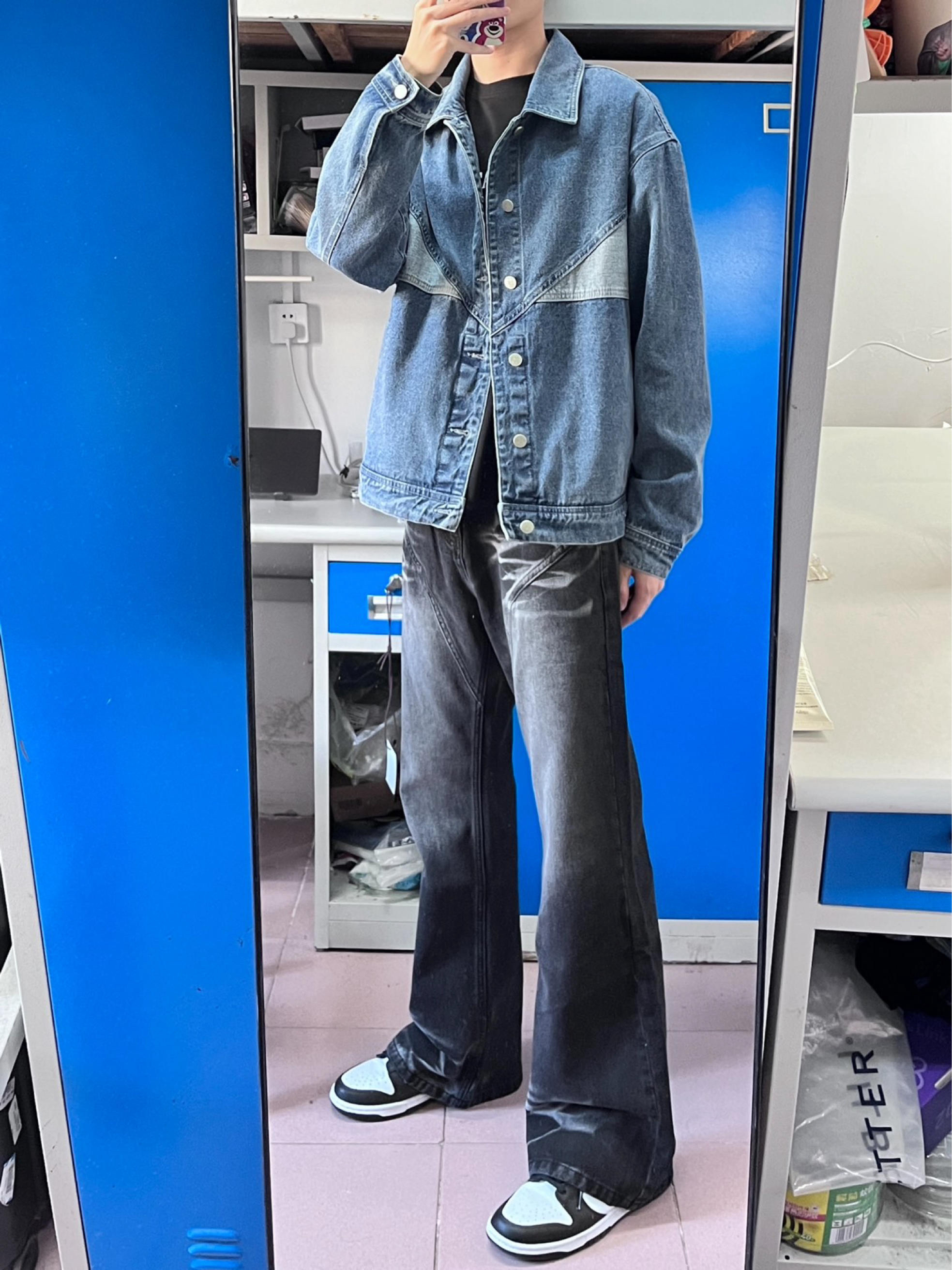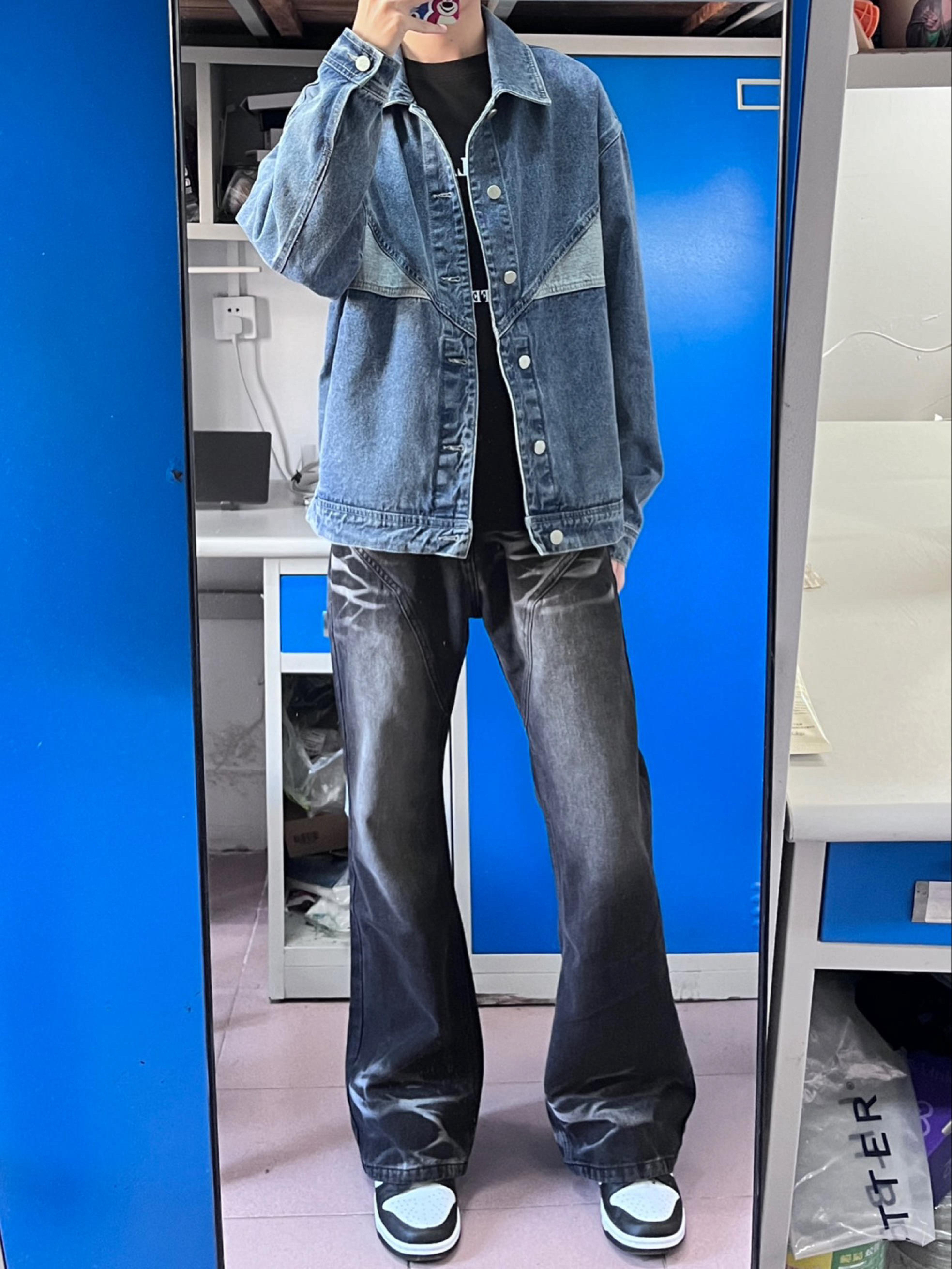 今天穿的这一件牛仔外套是拼接的款式 可以说是本年度比较喜欢的一件穿搭品单品 搭配黑色的牛仔裤,上身就特别的潮流,很适合圣诞节出去玩来穿