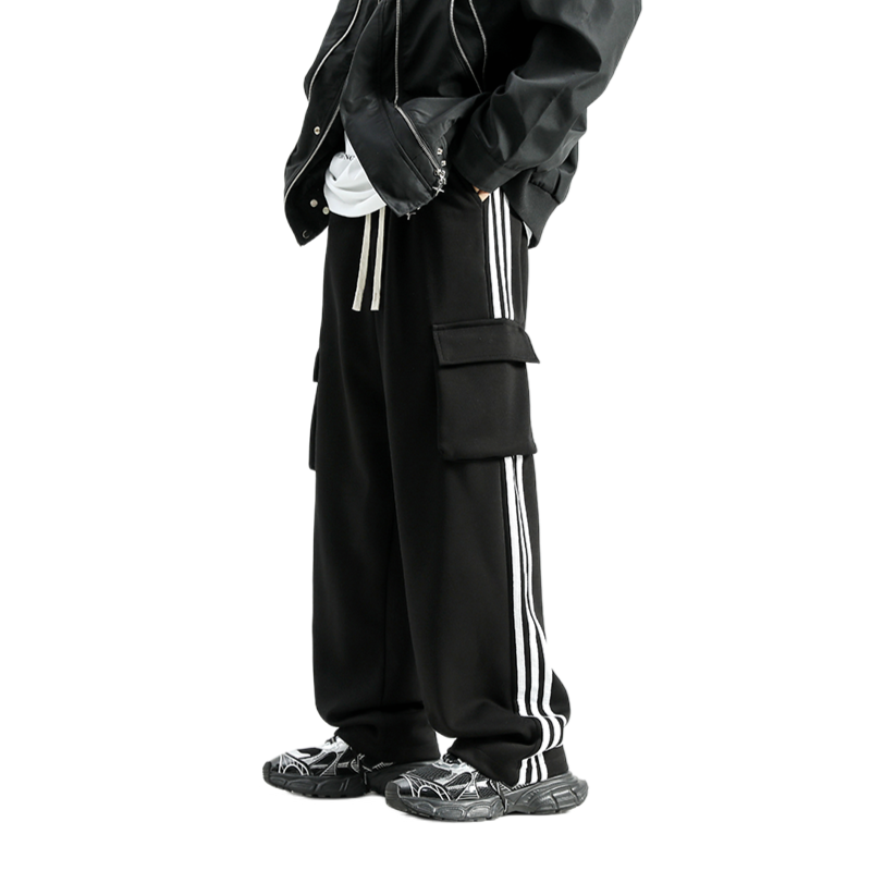 男生衣柜里的黑色休闲裤永远不会嫌多 今天这一条条纹的休闲裤算是年度穿搭比较百搭的单品了 日常出门不知道穿什么就会选择这一条 宽松的版型上身很干净利落,而且很显瘦
