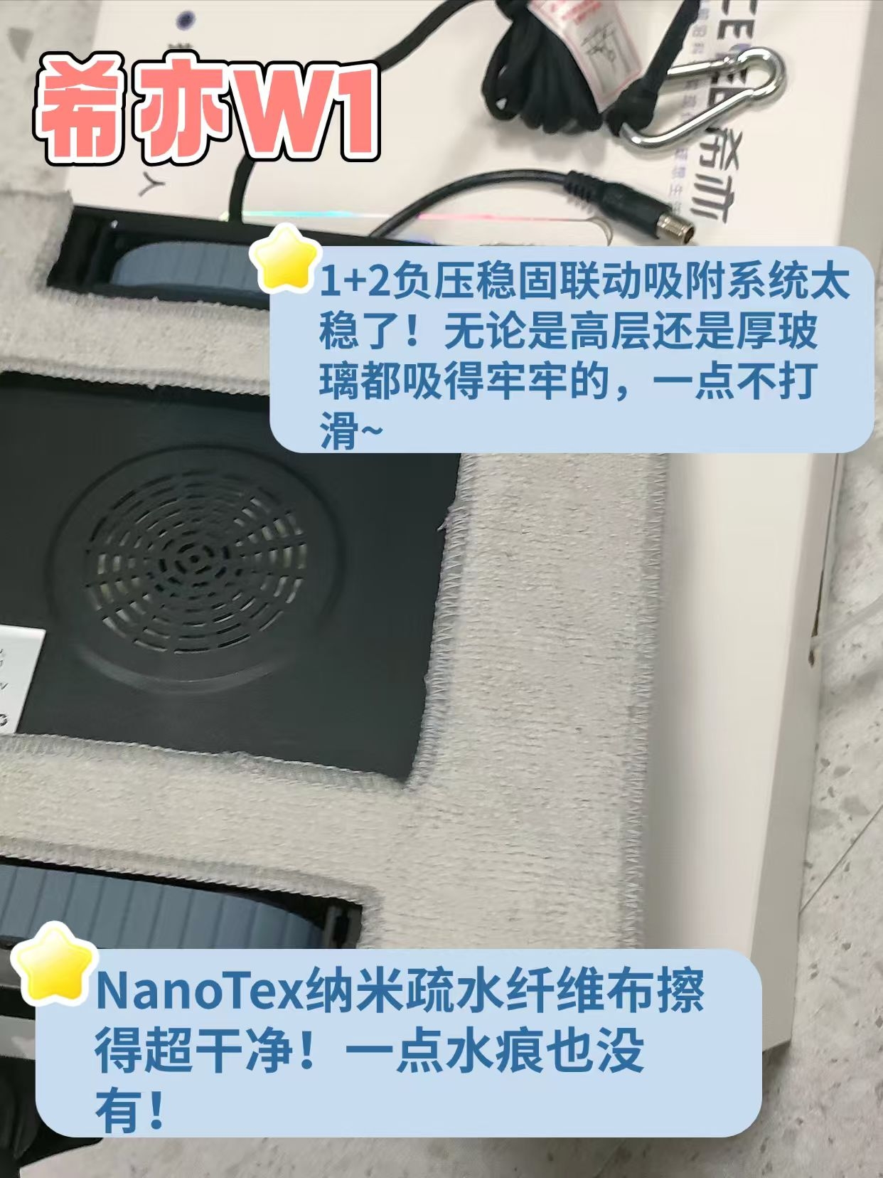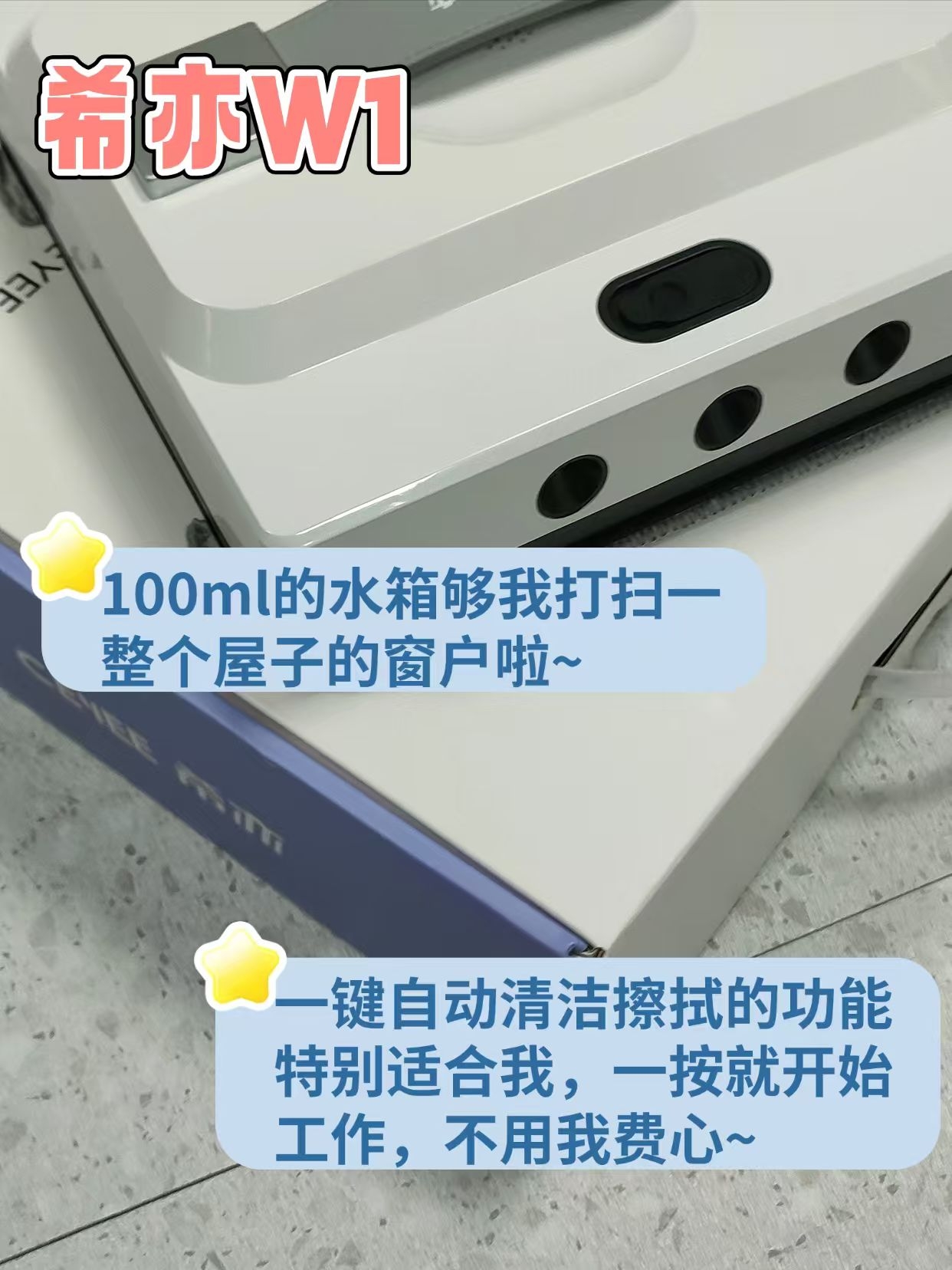 我的”清洁搭子“——希亦W1擦窗机器人 擦窗这种活儿,自己爬高怕摔,高层玻璃更是不敢碰,窗户脏乎乎的显得屋子特没质感。直到买了希亦W1擦窗机器人,我才敢自己擦窗。 便捷性:用这款机器人不用喊人帮忙,开机往玻璃上一放,就自动规划路线擦拭,而且遥控器操作真的好方便,每个按钮都清晰明了,特别适合我这种懒人。 清洁力:W1配备了六孔雾化喷水系统,喷水超均匀,采用的Q-Stage四段式清洁矩阵,一套下...