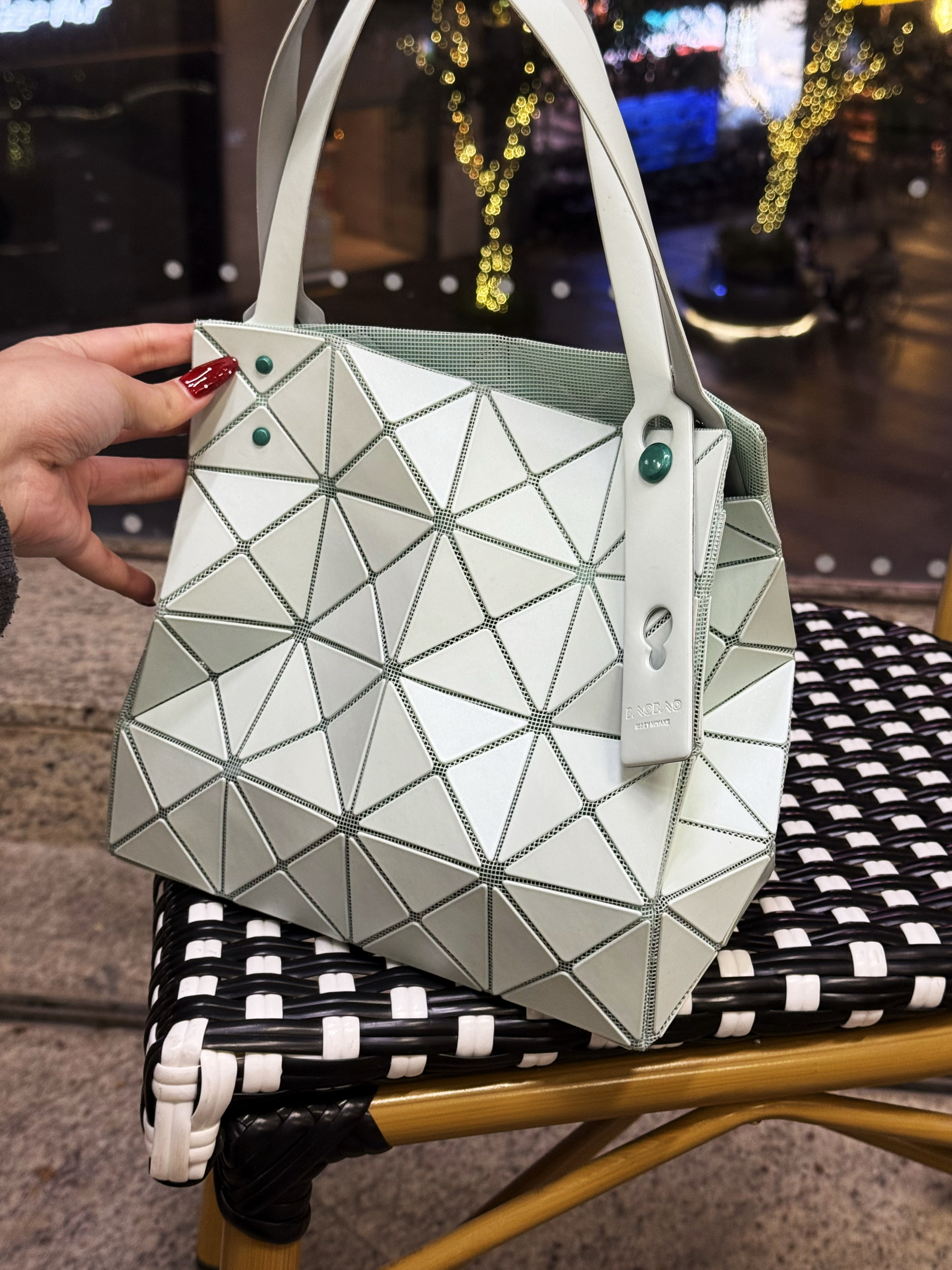 本篇笔记关联了Issey Miyake/三宅一生 CARAT 3月限定金属件切割纹理聚氯乙烯树脂购物袋钻石包托特包手提包 灰绿色等商品,为用户提供真实的使用体验和购买参考。