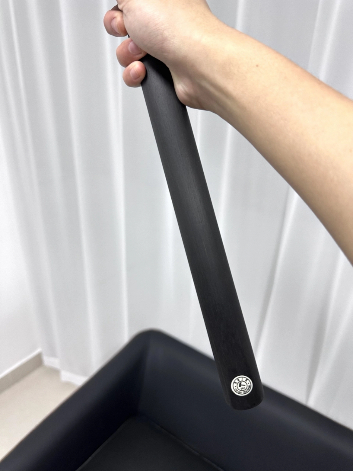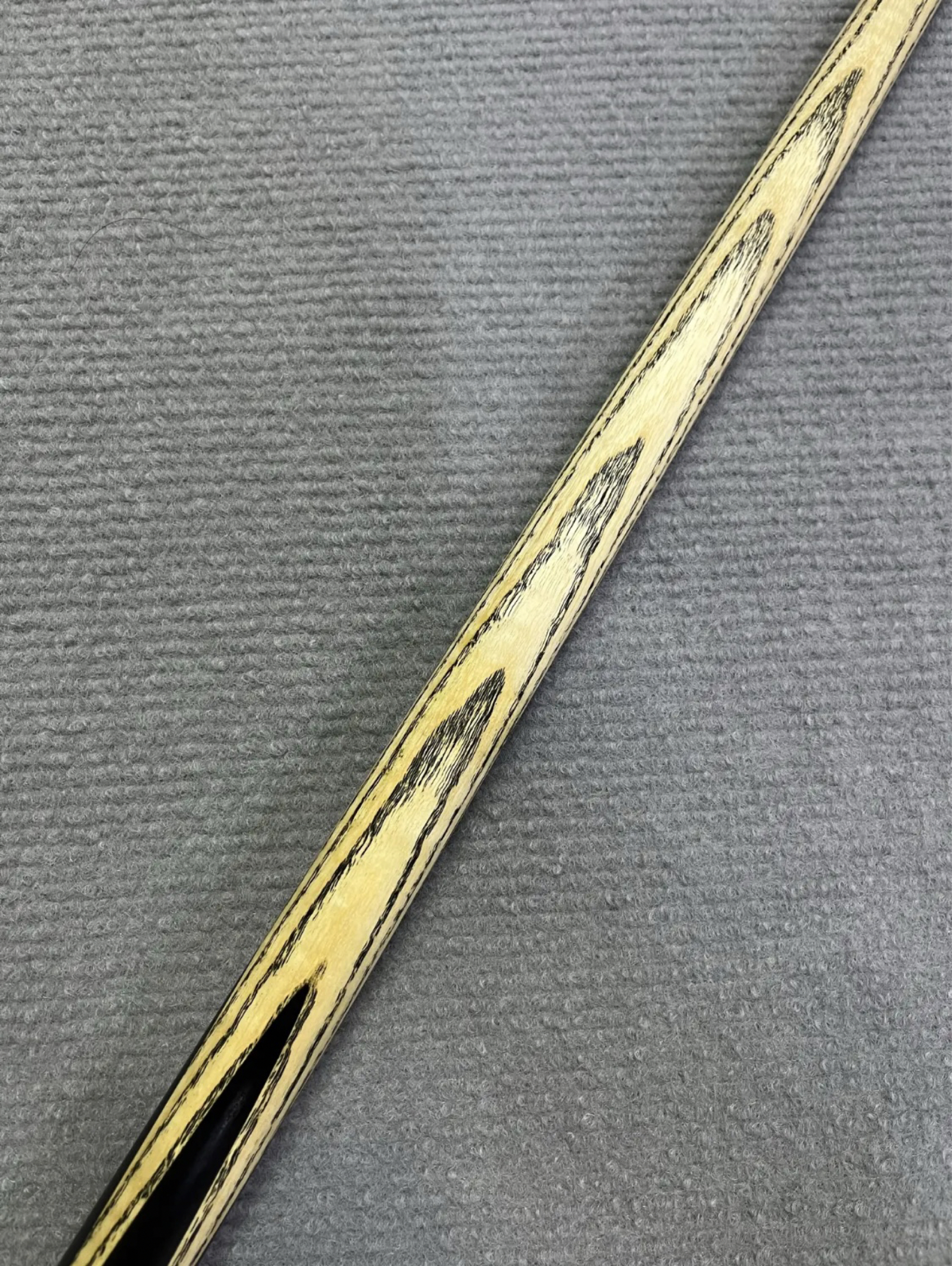 前支北美白腊木,后把黑檀乌木,正剑均匀,侧纹密直,打感通透稳定清脆。杆头箍10.4mm,重量500g,重心43cm,握把29cm