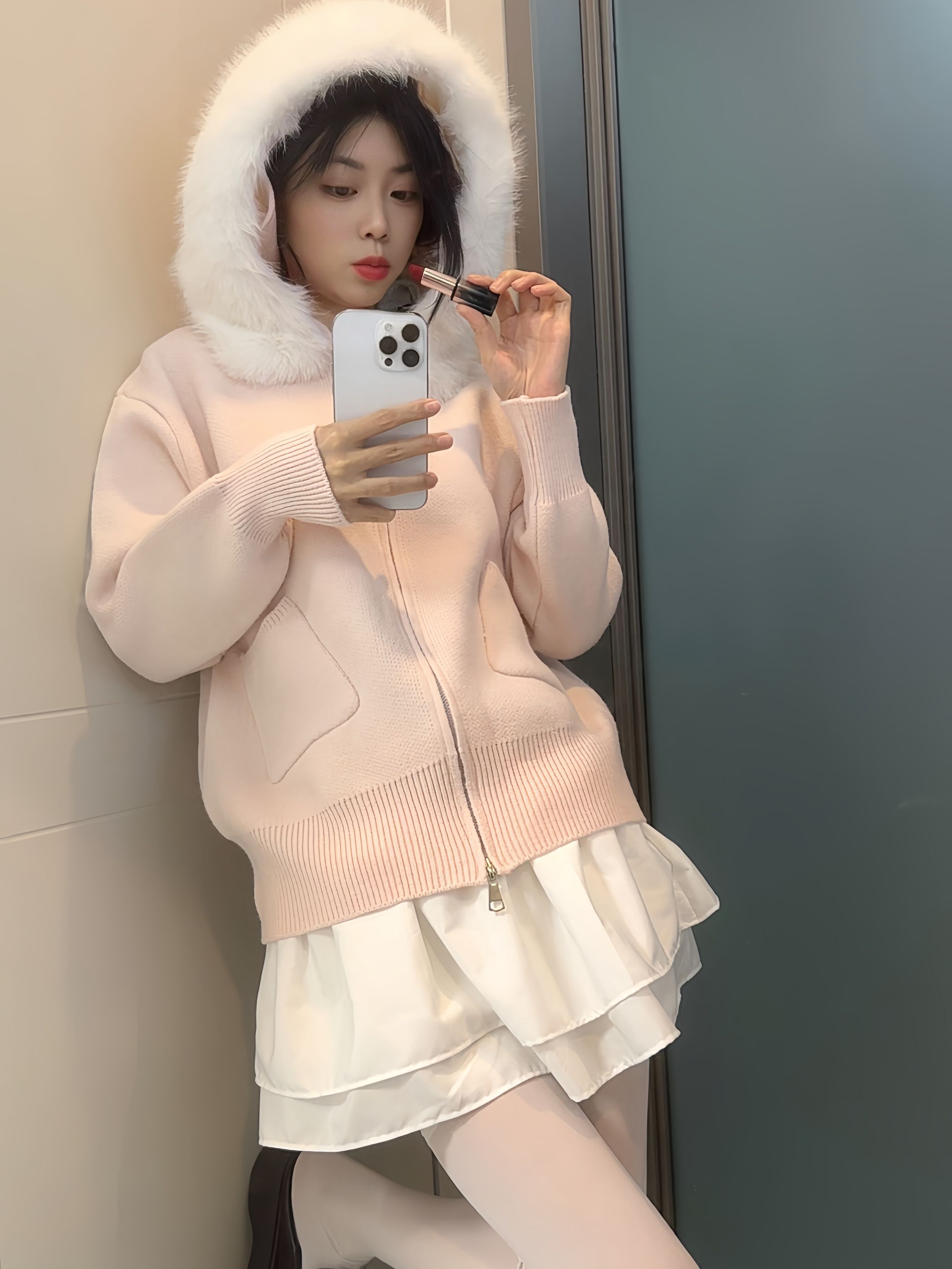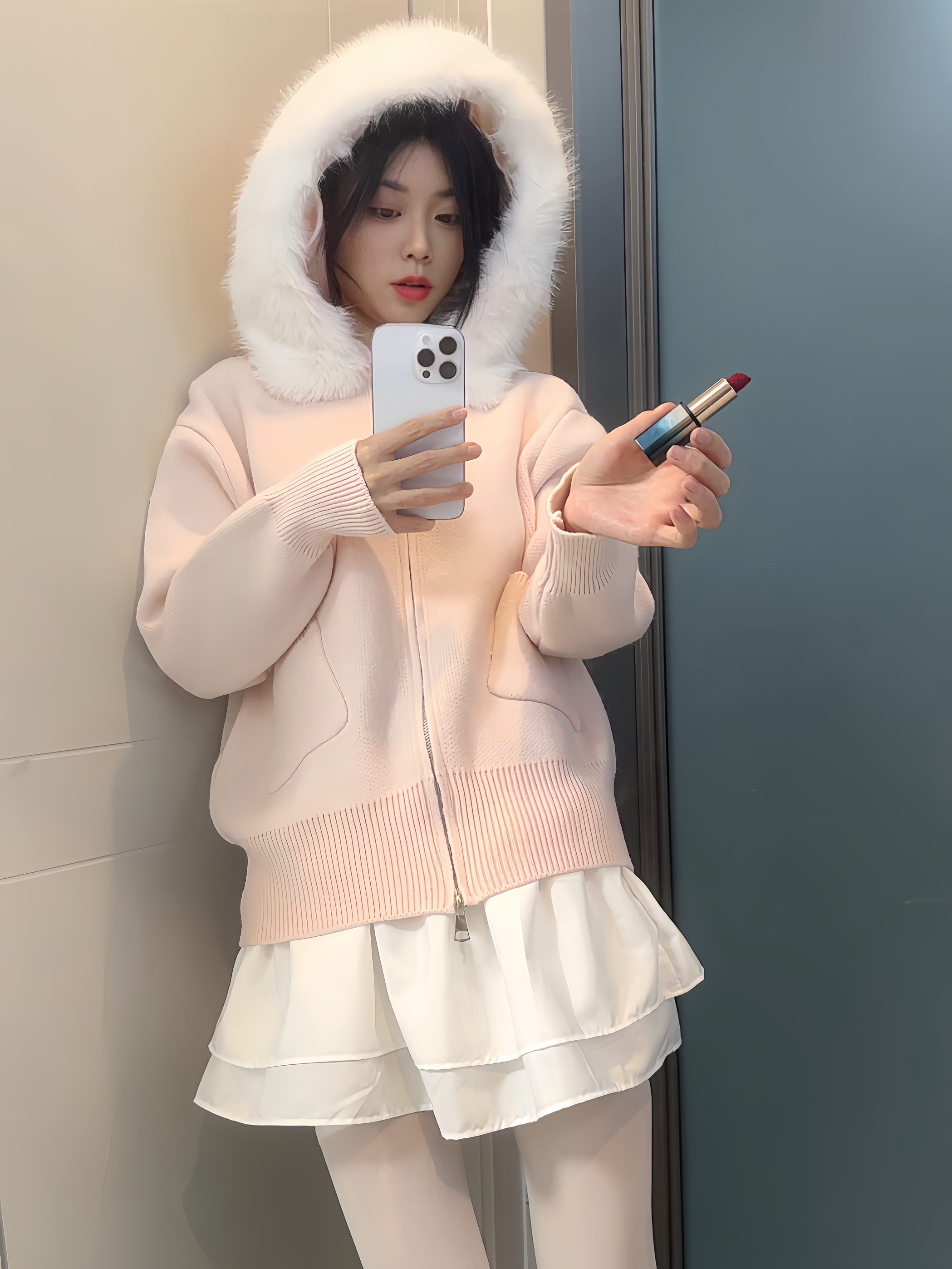 今天穿了件粉粉糯糯的针织开衫,对着镜子涂上花西子M116,整个人都亮了! 软乎乎的奶甜穿搭,配这支番茄红色,温柔又显白 半哑质地润而不油,素颜涂也毫无压力,膏体上面还有雕花,精致到舍不得摔坏🤭