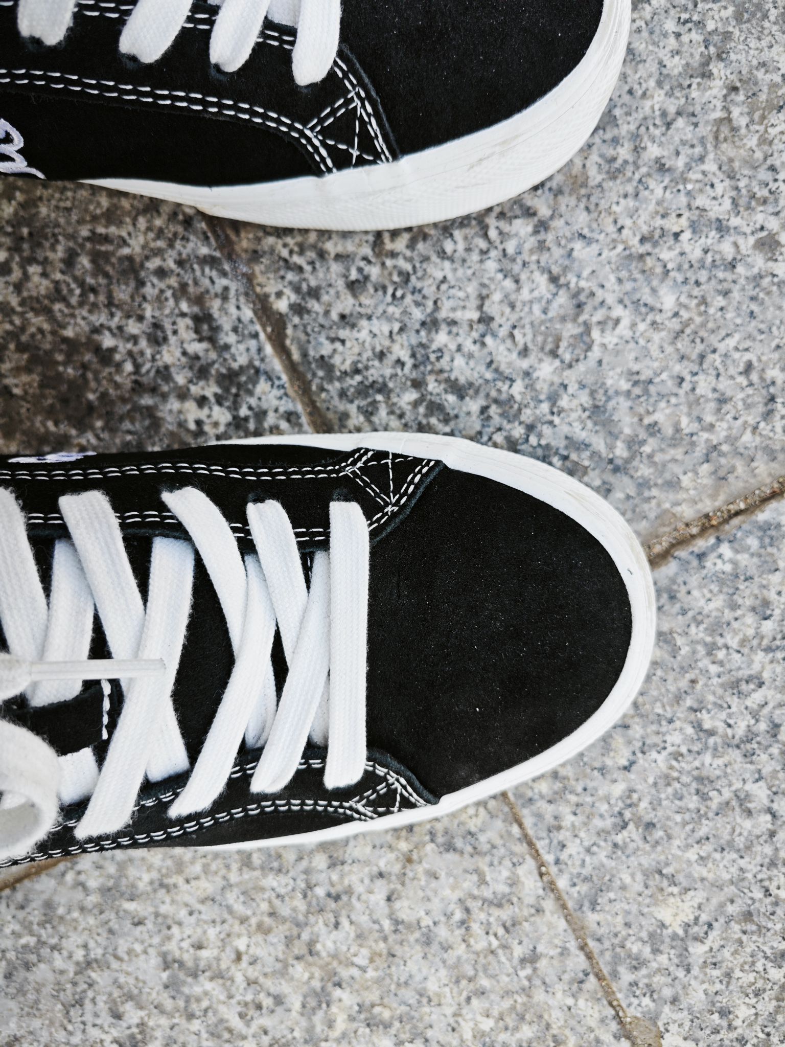 这双黑帆布鞋是前阵子随手入的,本来就是想找双日常穿的基础款,上脚后倒挺合脚。麂皮的鞋面摸着软乎乎的,搭配深色牛仔裤特别搭,简单又不单调。 平时走路、逛公园都穿它,鞋底不算硬,走久了也不累脚。鞋侧的小刺绣细节还挺耐看,不张扬但有点小设计感。现在基本成了我鞋柜里的“常客”,不用费心思搭配,随手穿就很舒服。