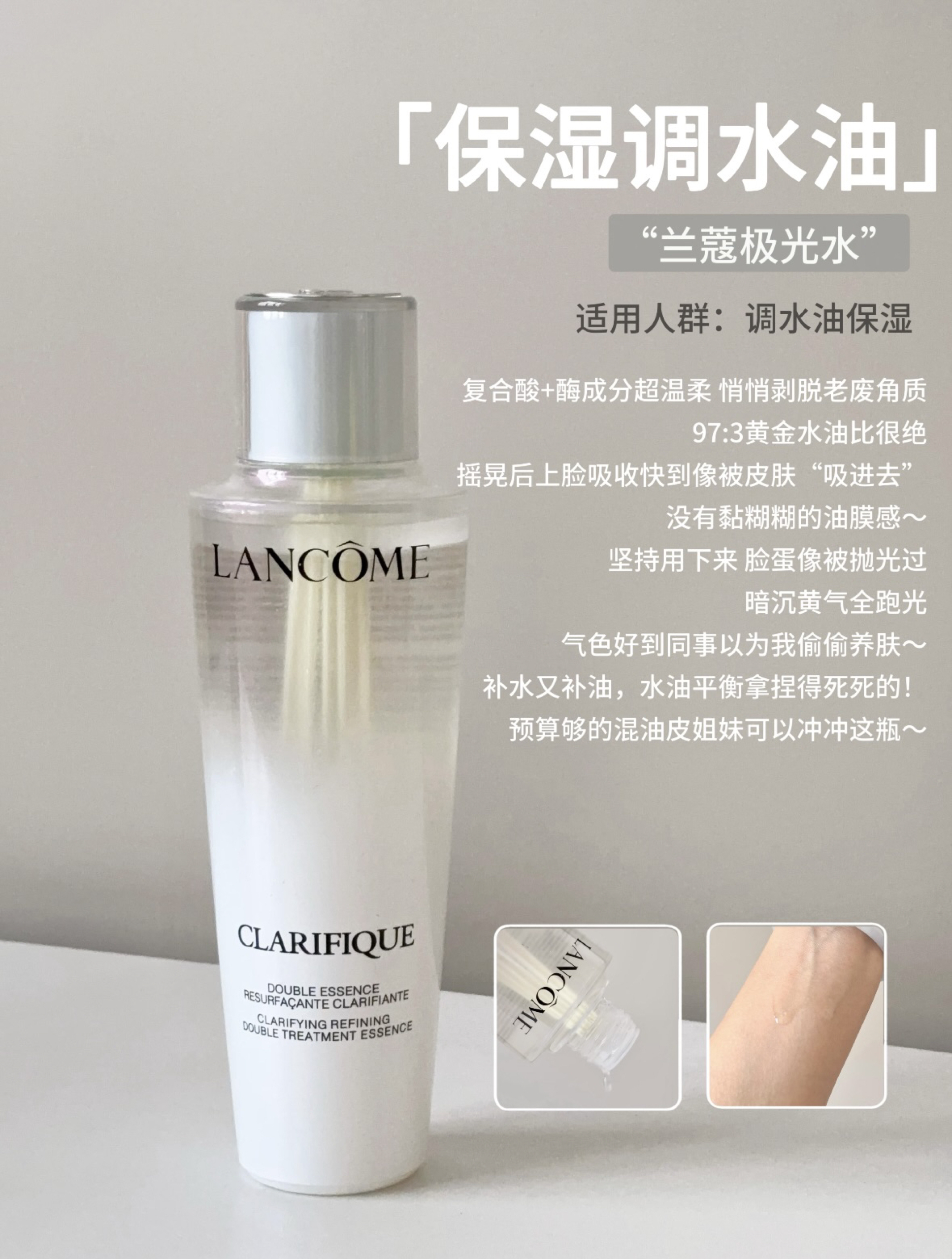 本篇笔记关联了Lancome/兰蔻 极光水净澈焕肤双重精华水 平衡水油提亮保湿混油 第二代、YOU&PURE/羽素 控油保湿清肌焕肤爽肤水 细毛孔祛闭口粉刺去糙皮无酸磨皮嫩肤 2.0、HomeFacialPro 果酸精粹水 修护收毛孔净透去黑头去闭口粉刺保湿提亮嫩肤 【进阶版】平衡水油等商品,为用户提供真实的使用体验和购买参考。