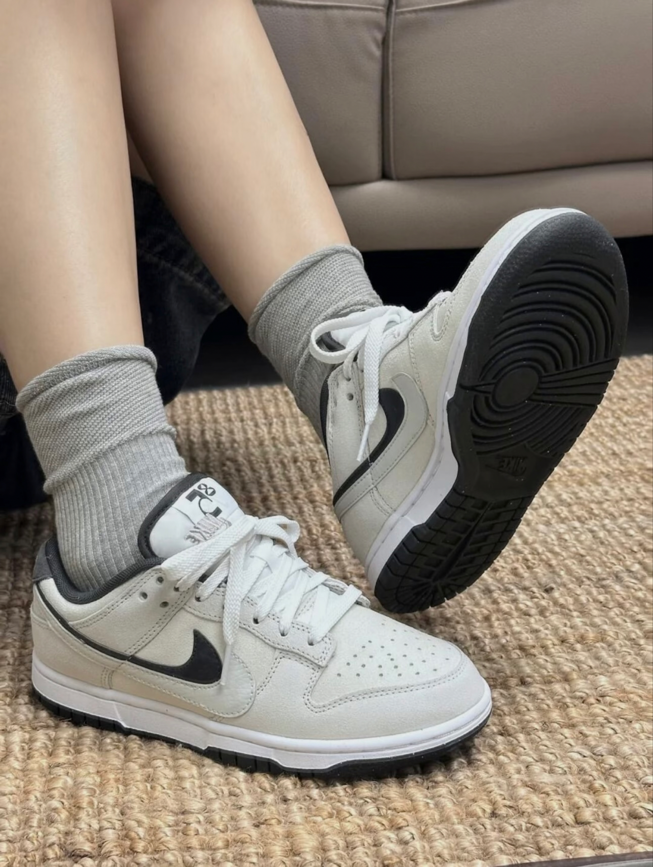 浅灰麂皮质感绝了,搭配经典黑白撞色Swoosh,没有多余的花哨设计,干净又高级~ 日常搭牛仔裤、运动裤都能无缝适配,低饱和度的配色不挑风格,上脚轻便又耐看,属于闭眼入不踩雷的基础款👟