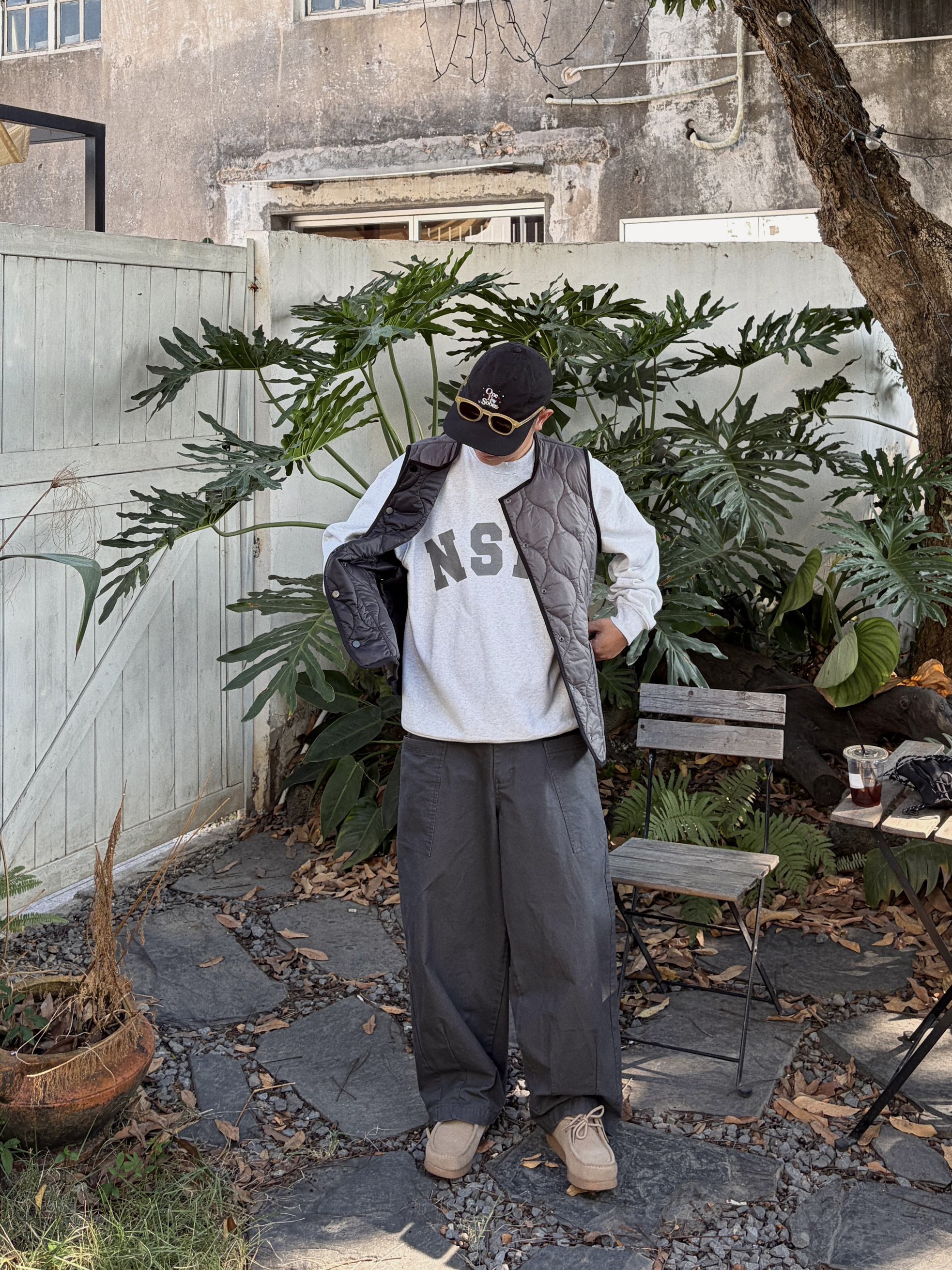 -关于搭配; 马甲:NESSTTU 卫衣:NESSTTU 长裤:BUTTBILL 鞋:izzue