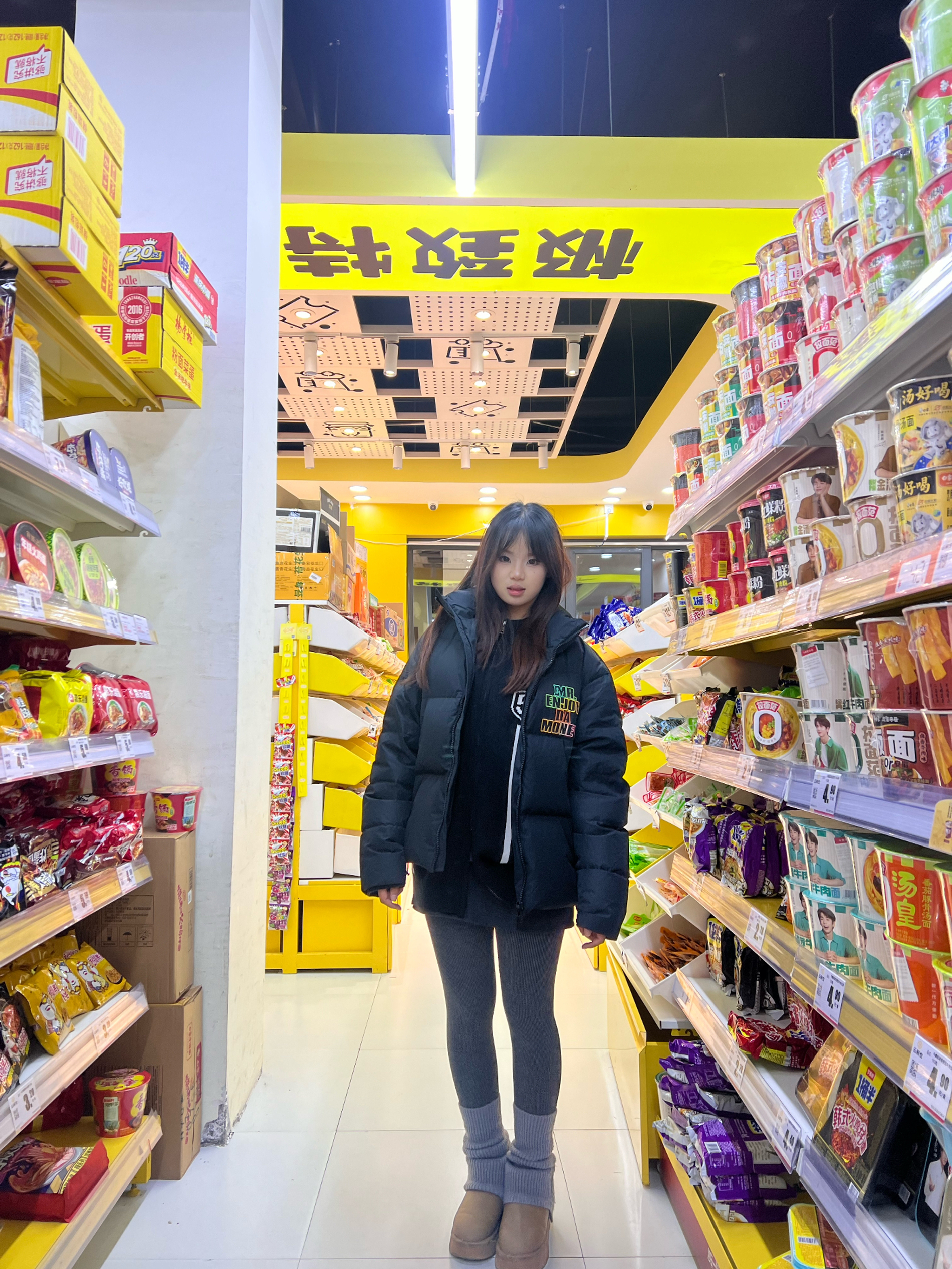 黑色刺绣羽绒服百搭不出错! 袜套遮住脚踝细的地方 超显腿直~ 秋冬氛围感无敌了! 冬日辣妹时髦感up! 保暖又好看~ 这还不爱si~姐妹们尊滴可以试试看!!