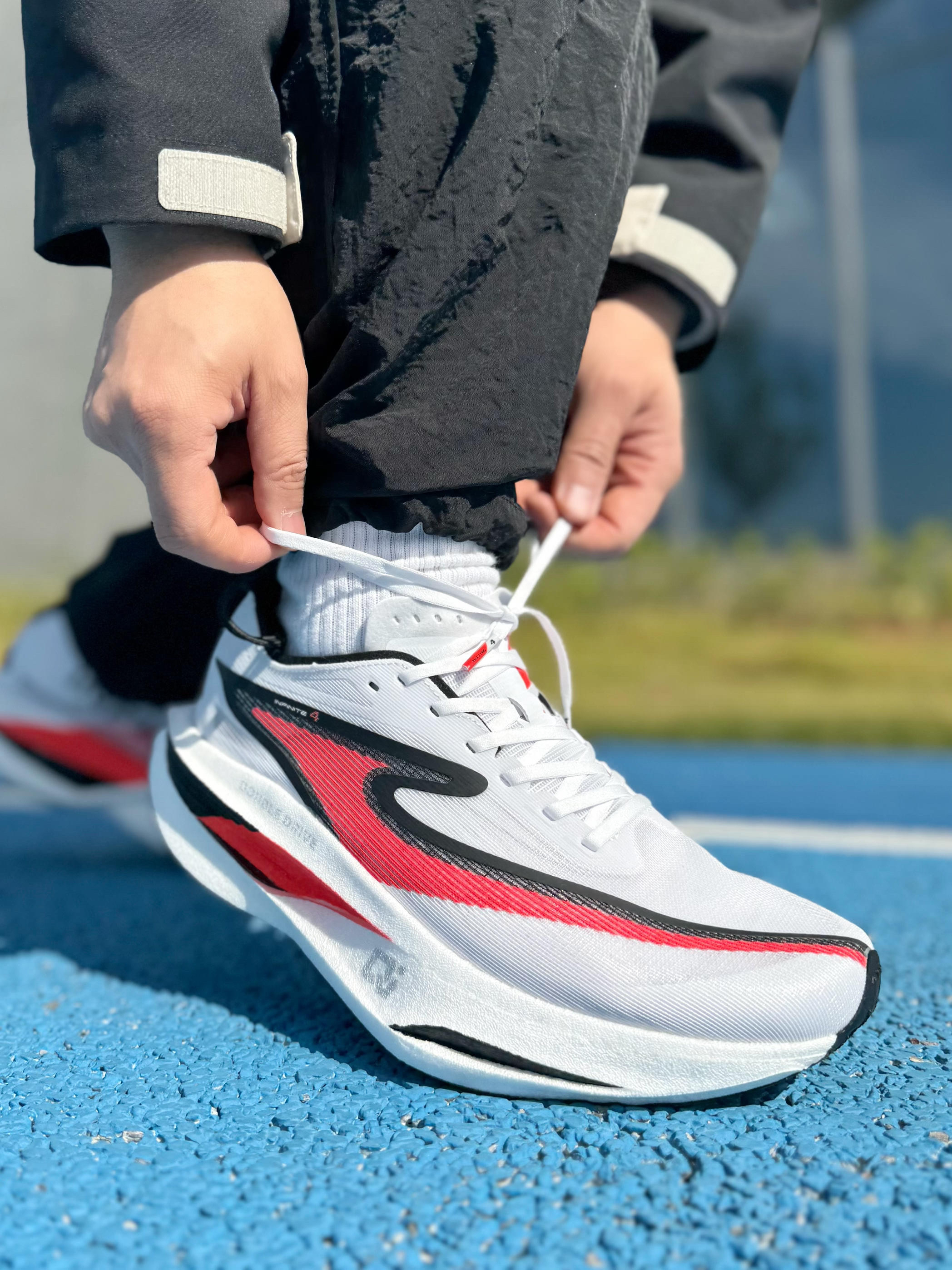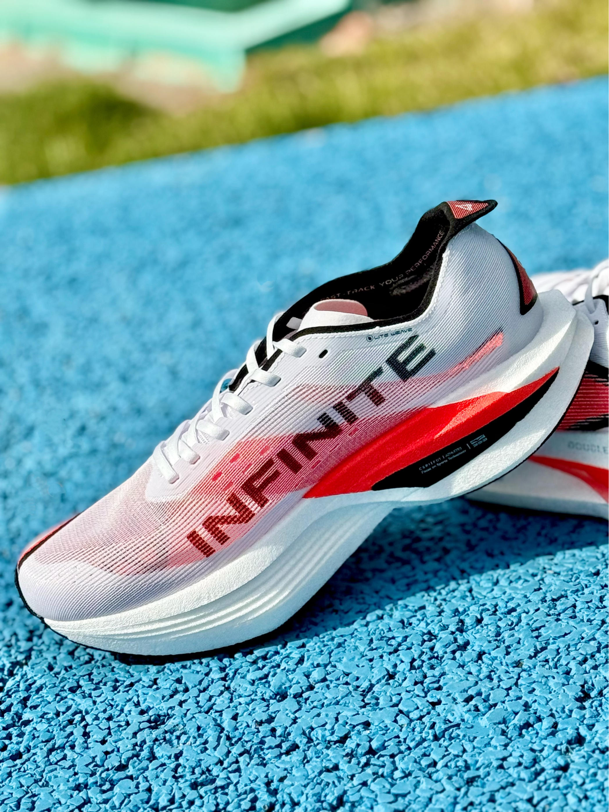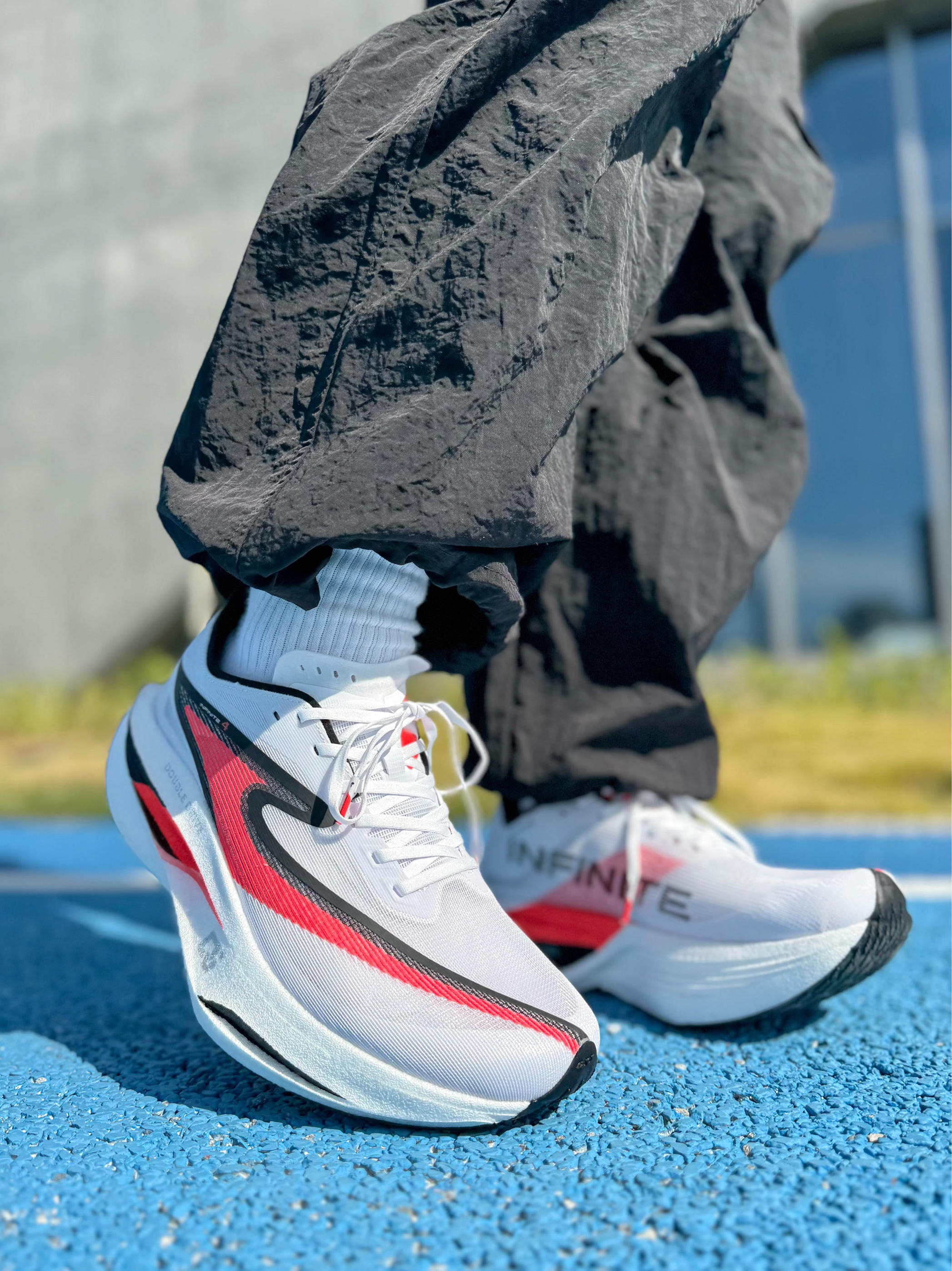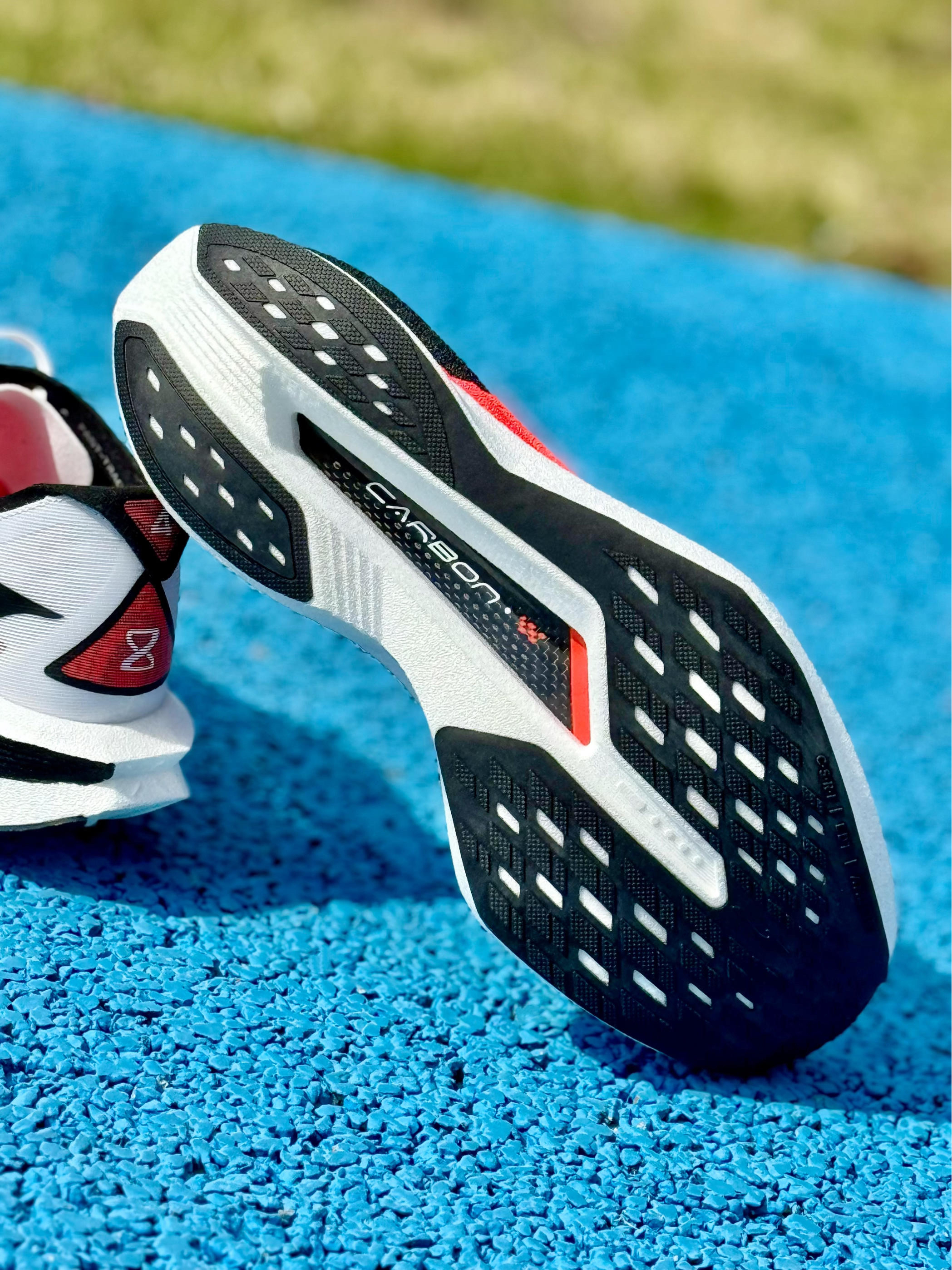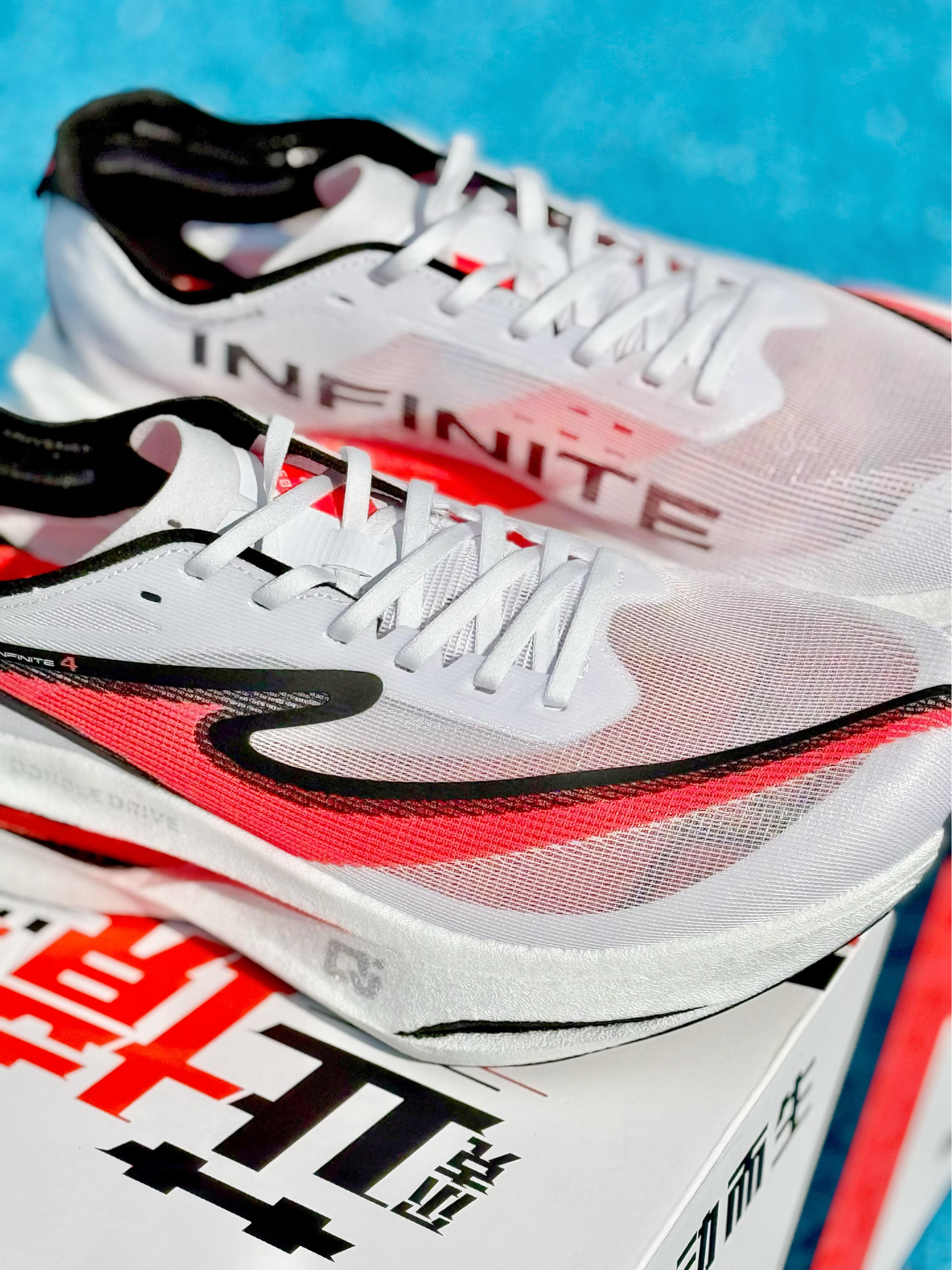提前拿到了即将发售的鸿星尔克芷境4 抢先体验了下,来说下比上一代有哪些提升 首先中底有明显加宽,整体稳定性更好了 全掌珠粒发泡的炁科技,搭配内置全掌碳板 后跟还做了弹射结构,推进力有明显加强 脚感方面前掌韧弹,后掌偏软弹多一些 其次是鞋面部分,用到了较强韧的贾卡材质 我个人觉得比上一代的透气性要更好 整体黑白红配色,视觉效果上还是蛮在线的 作为马拉松竞速碳板跑鞋,各方面都非常不错 适合进阶、精英跑...