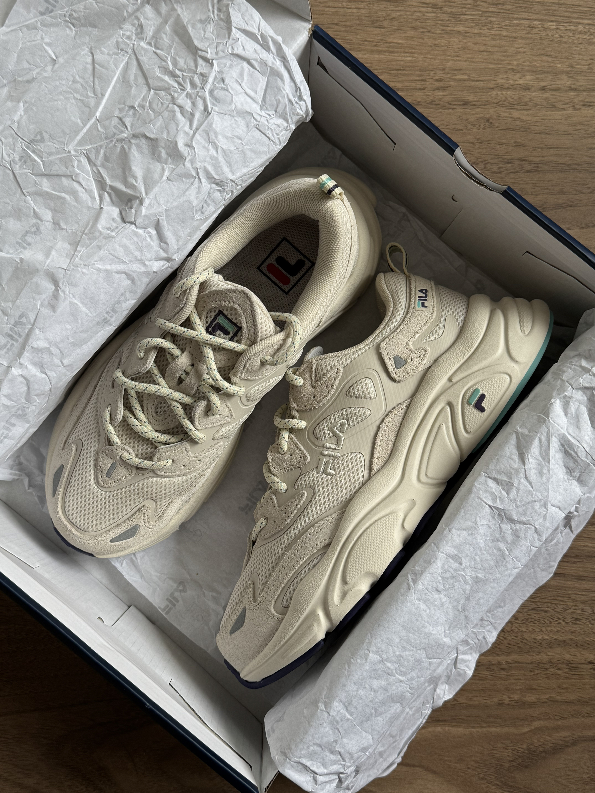 本篇笔记关联了FILA/斐乐 Mars 火星 老爹鞋 防滑耐磨舒适透气百搭时尚复古休闲运动织物合成革软底 女款/奶白/木薯粉等商品,为用户提供真实的使用体验和购买参考。