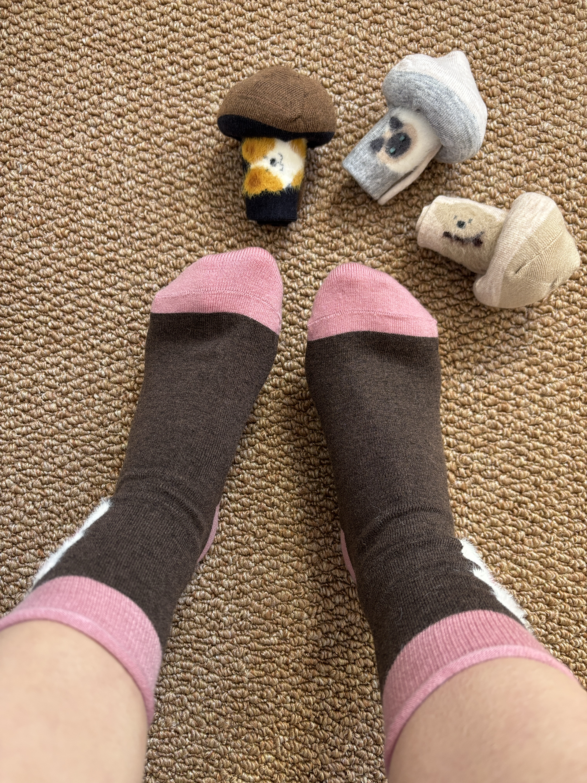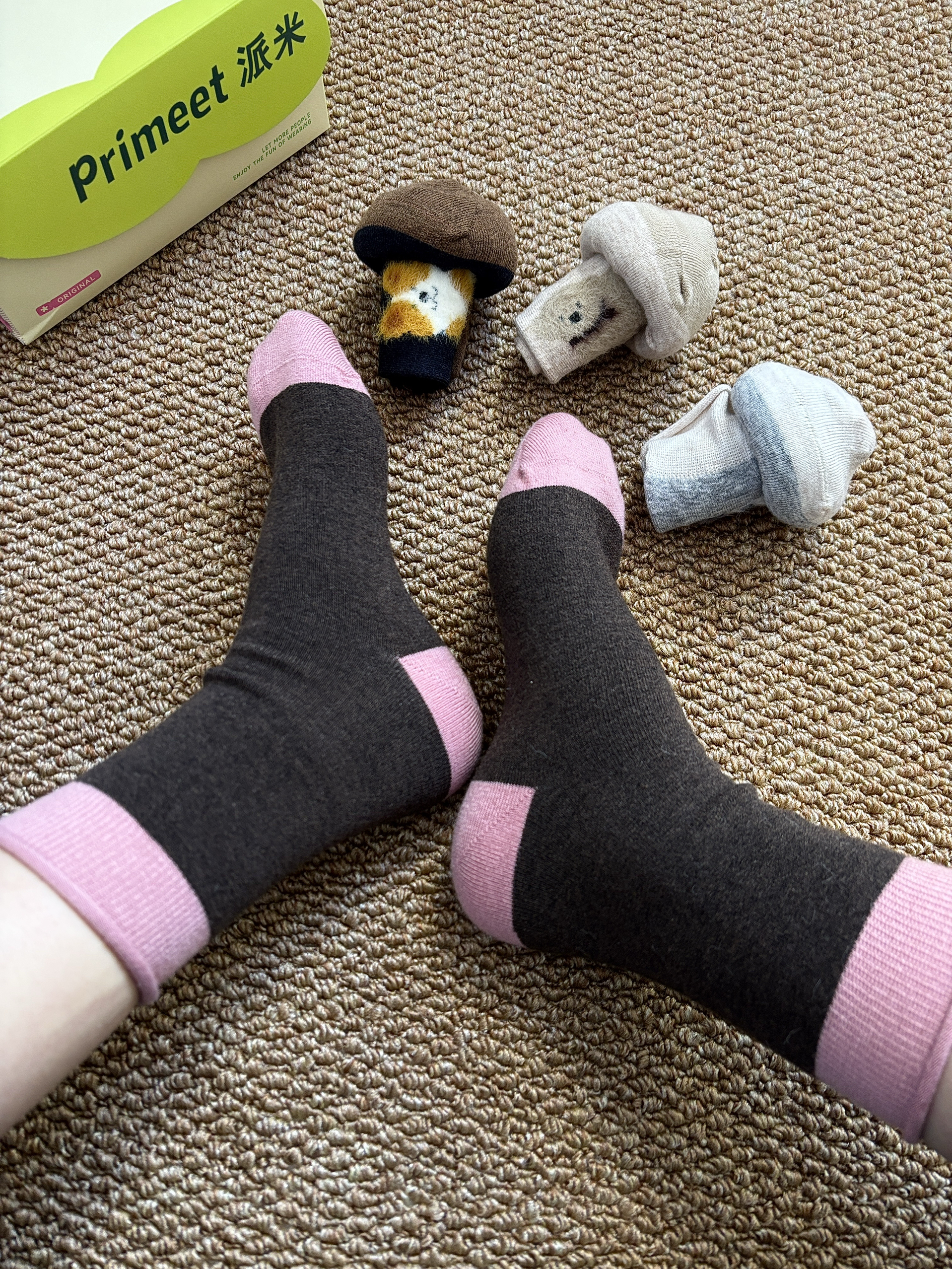 欢迎来到我的今日份穿搭 OOTD ~ Nike 老爹鞋和可爱小袜子舒服又好看😌 袜子是羊毛的中筒厚度现在穿刚好暖暖的 两种撞色拼接设计满满袜子包裹性不错不勒脚 亲肤透气暖和穿一天下来也不臭脚不闷脚😁 hin 不错性价比欧克我码住了👌