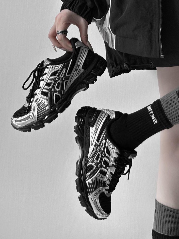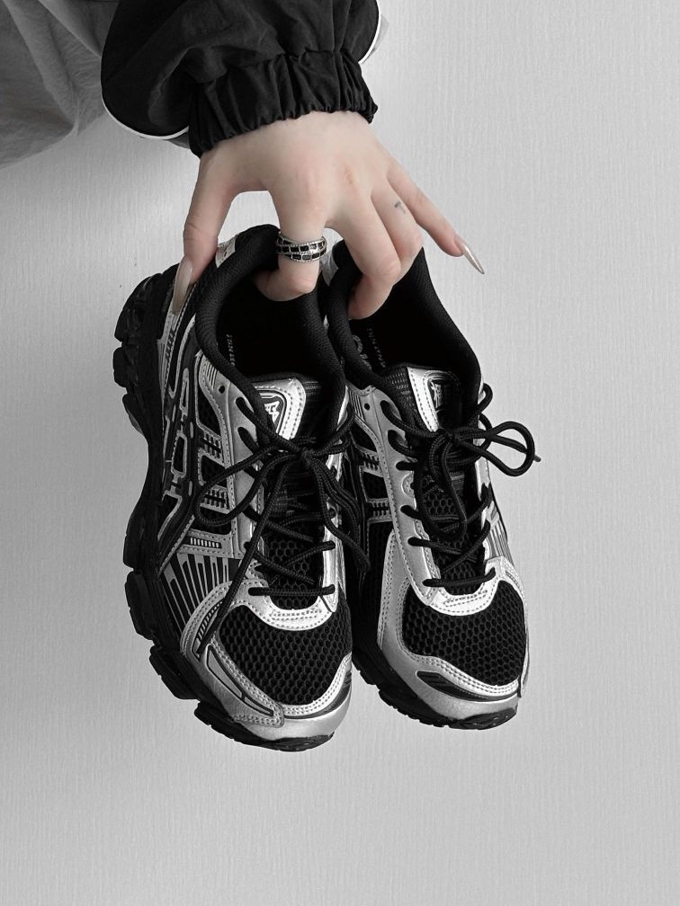黑银撞色直接踩中赛博复古审美:金属银覆面+立体线条解构设计,网眼基底兼顾透气与层次感,鞋身纹理既保留专业跑鞋的功能性骨架,又适配街头潮搭的调性。 核心配置是ASICS招牌GEL缓震胶+稳定支撑结构,日常通勤暴走脚感软弹不塌,轻度运动也能有效承托足弓;搭配机能裤、宽松卫衣或复古工装都能出片,低饱和配色基本不挑穿搭风格。 这是近期识货复古跑鞋类目的热度款,搜同款即可入手,是颜值与实穿双在线的黑...