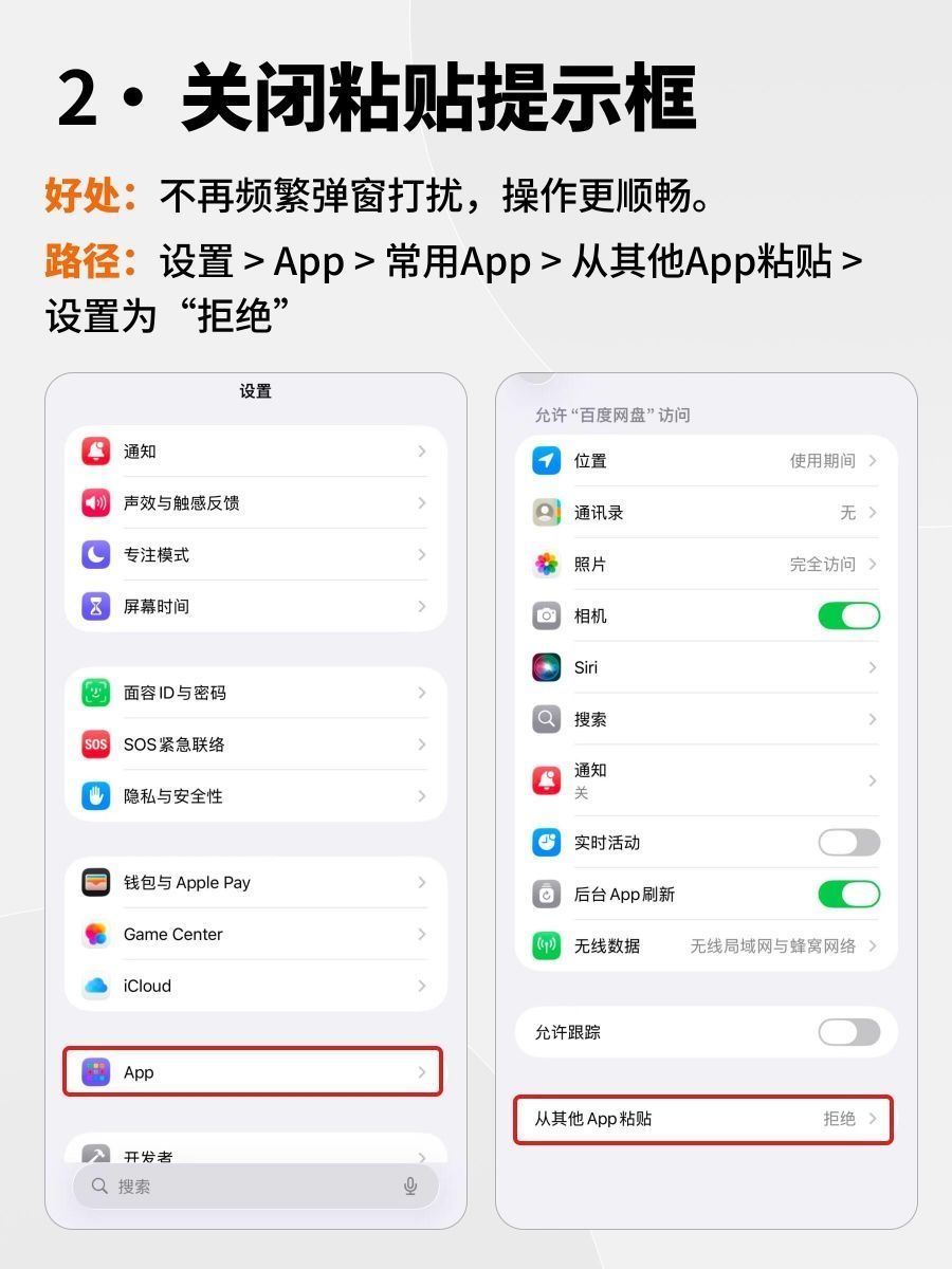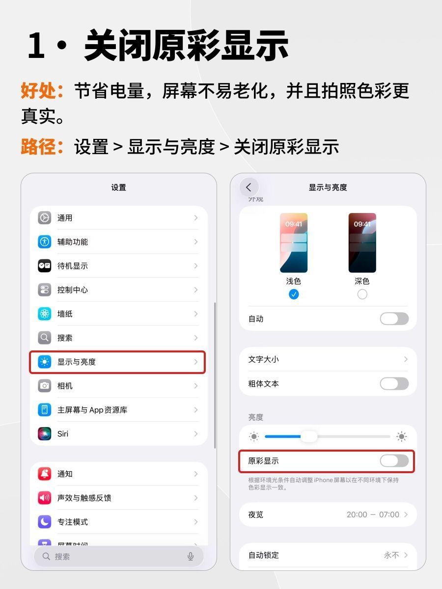 iPhone17新机到手,先别急着玩!||这9个默认开关一关,省电+清爽+不踩坑,一步到位! 1️⃣ 原彩显示关 → 拍照不发黄 设置-显示与亮度-原彩显示 2️⃣ 粘贴提示关 → 复制跳转不打扰 设置-App-常用App-从其他App粘贴-拒绝 3️⃣ 自动更新关 → 不半夜偷偷升级 设置-通用-软件更新-自动更新 4️⃣ 通知轰炸关 → 瞬间清净 设置-通知-把不重要的App全关 5️⃣ 桌面...