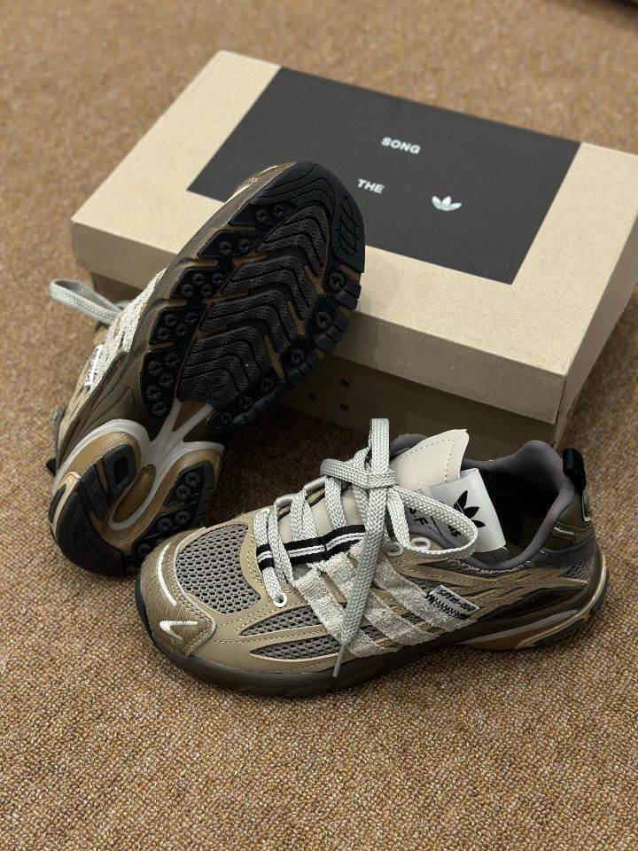 阿迪联名的Adistar Cushion老爹鞋,直接戳中复古潮人的心巴💘 鞋身是网眼+麂皮+马毛的拼接,大地棕调混着灰调,自带那种“随便穿都高级”的松弛感,鞋舌的双标细节和双鞋带设计,潮味直接拉满~ 上脚软弹又轻,增高效果藏得特自然,配卫衣牛仔裤是街头感,搭西装裤居然也能穿出轻熟氛围感!