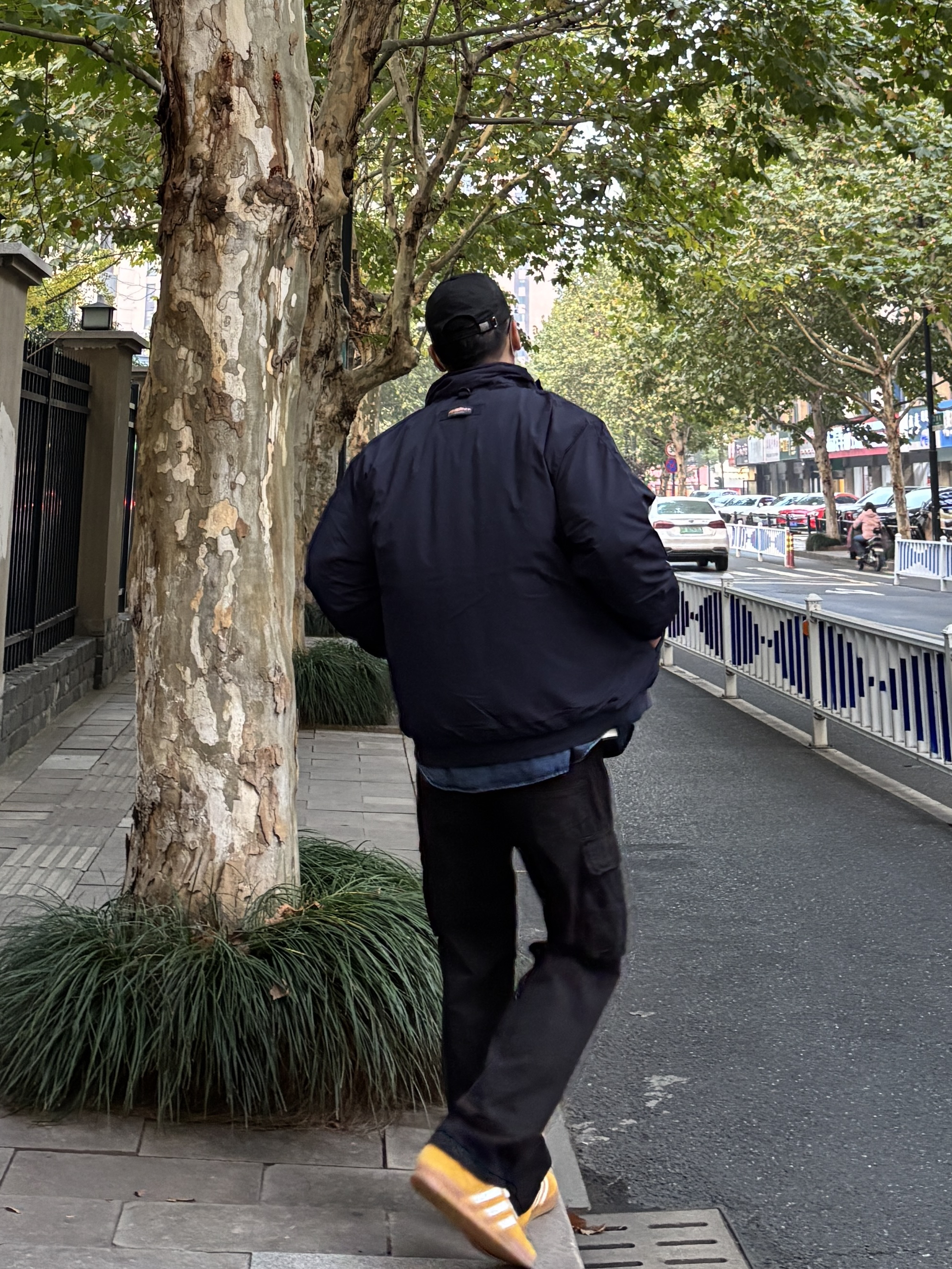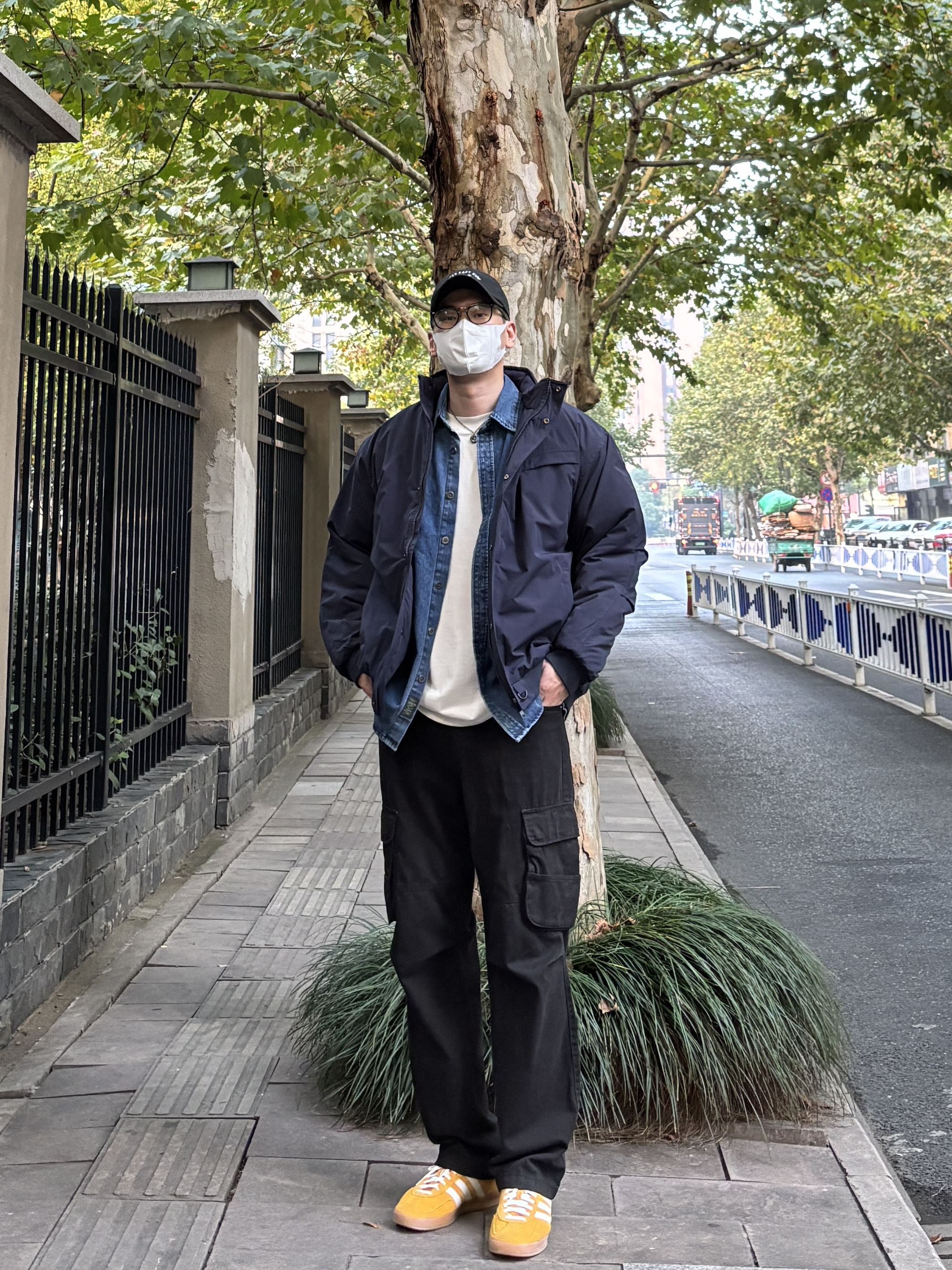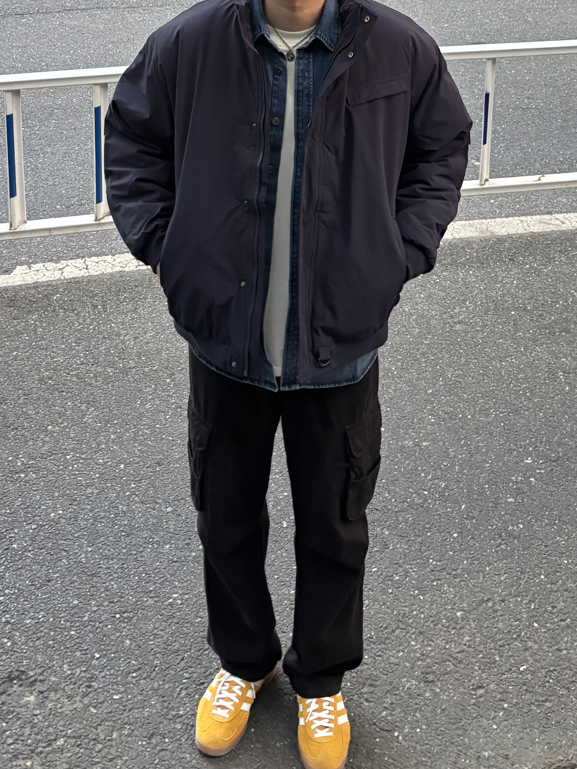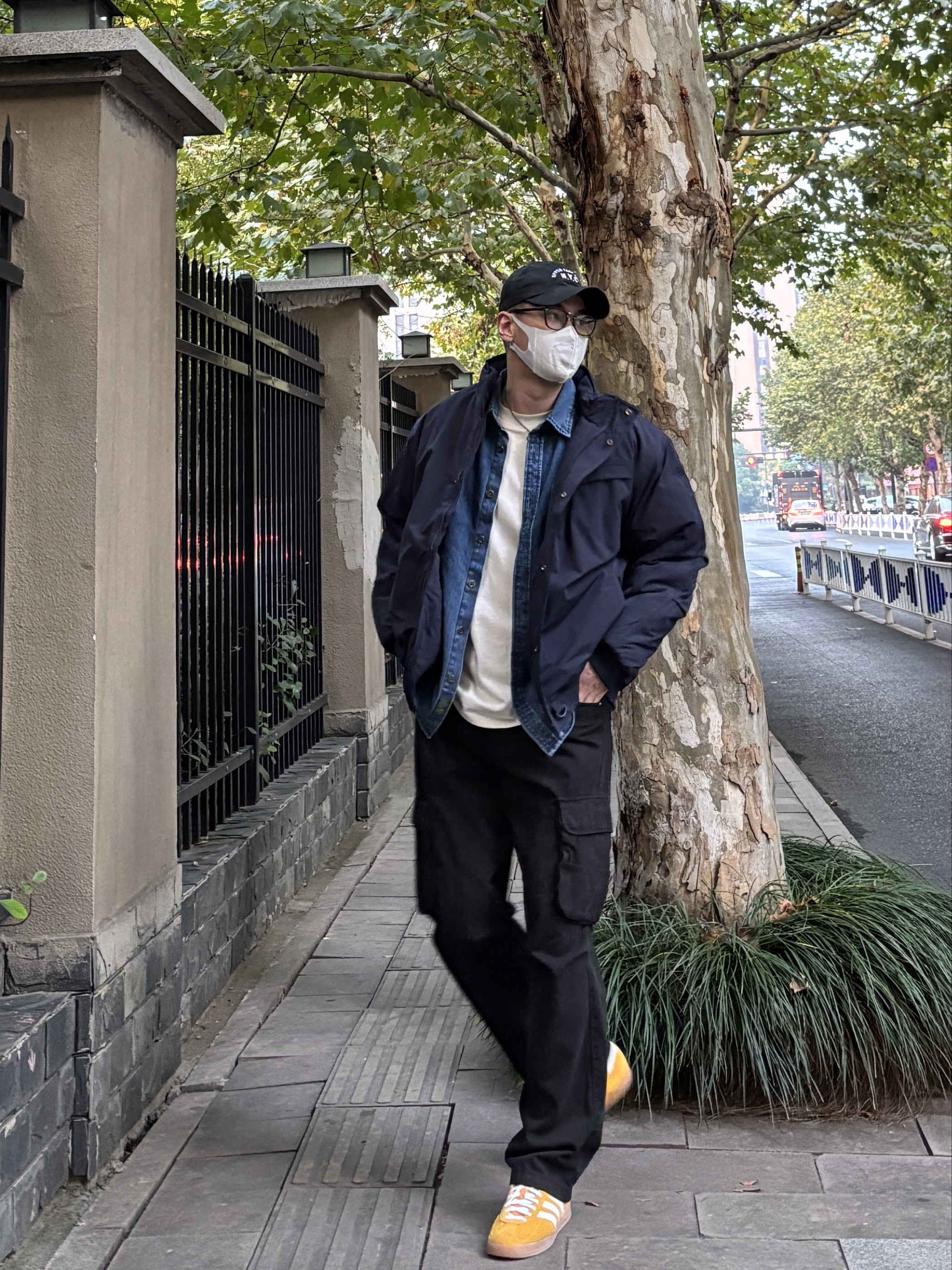 工装风加点亮色配饰,少年感立刻浮现🙋♂️ 藏青工装棉服叠穿牛仔衬衫+白色打底 层次感直接拉满! 黑色多口袋工装裤搭配亮黄色复古板鞋瞬间提亮,少年感与硬汉风的平衡被我悟到了🤨 - 今日搭配 衣服裤子:NICE LILI 鞋子:adidas