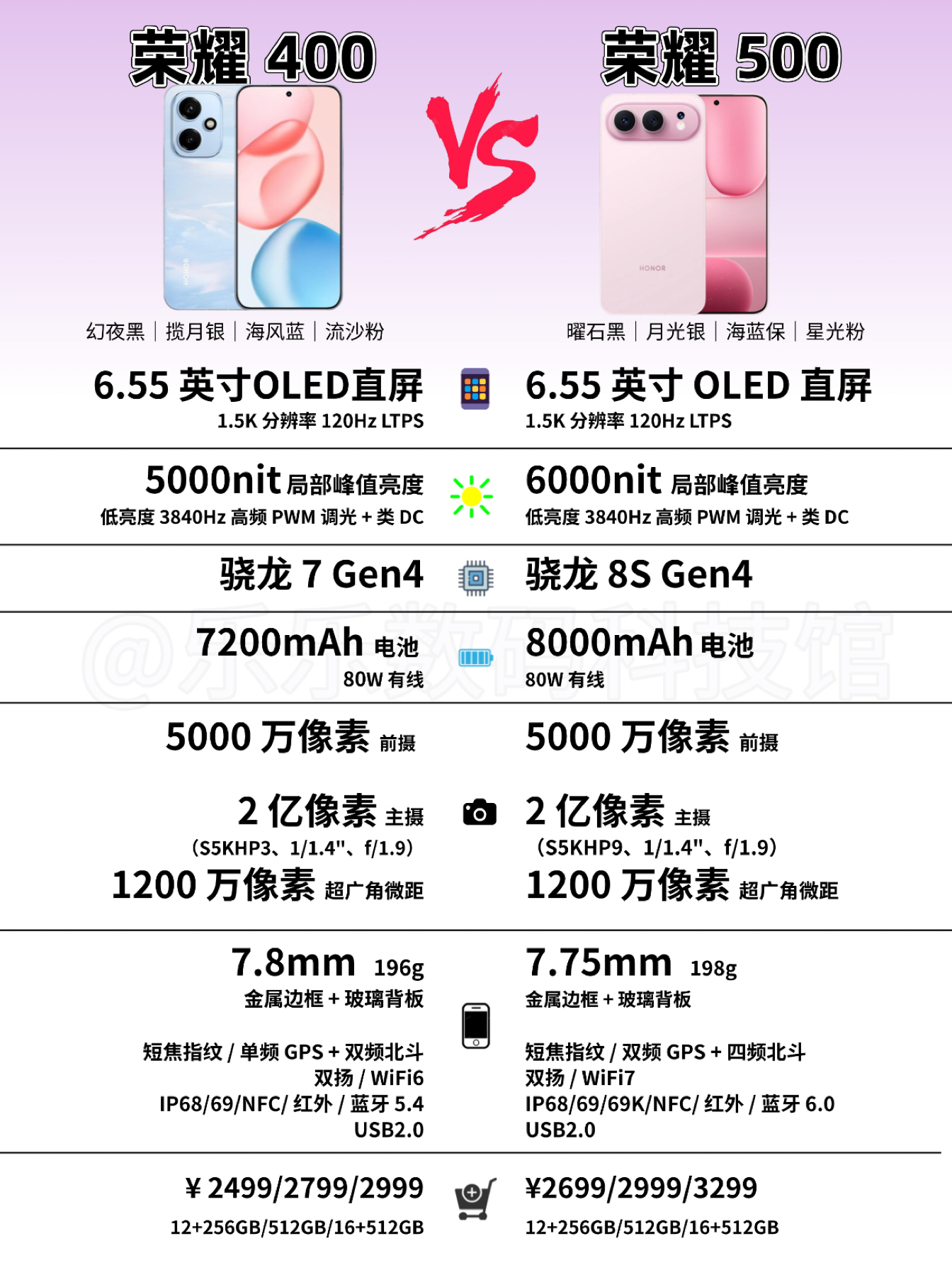 宝子们,刚出的 500 Pro 和 400 Pro 参数整理在这里了!