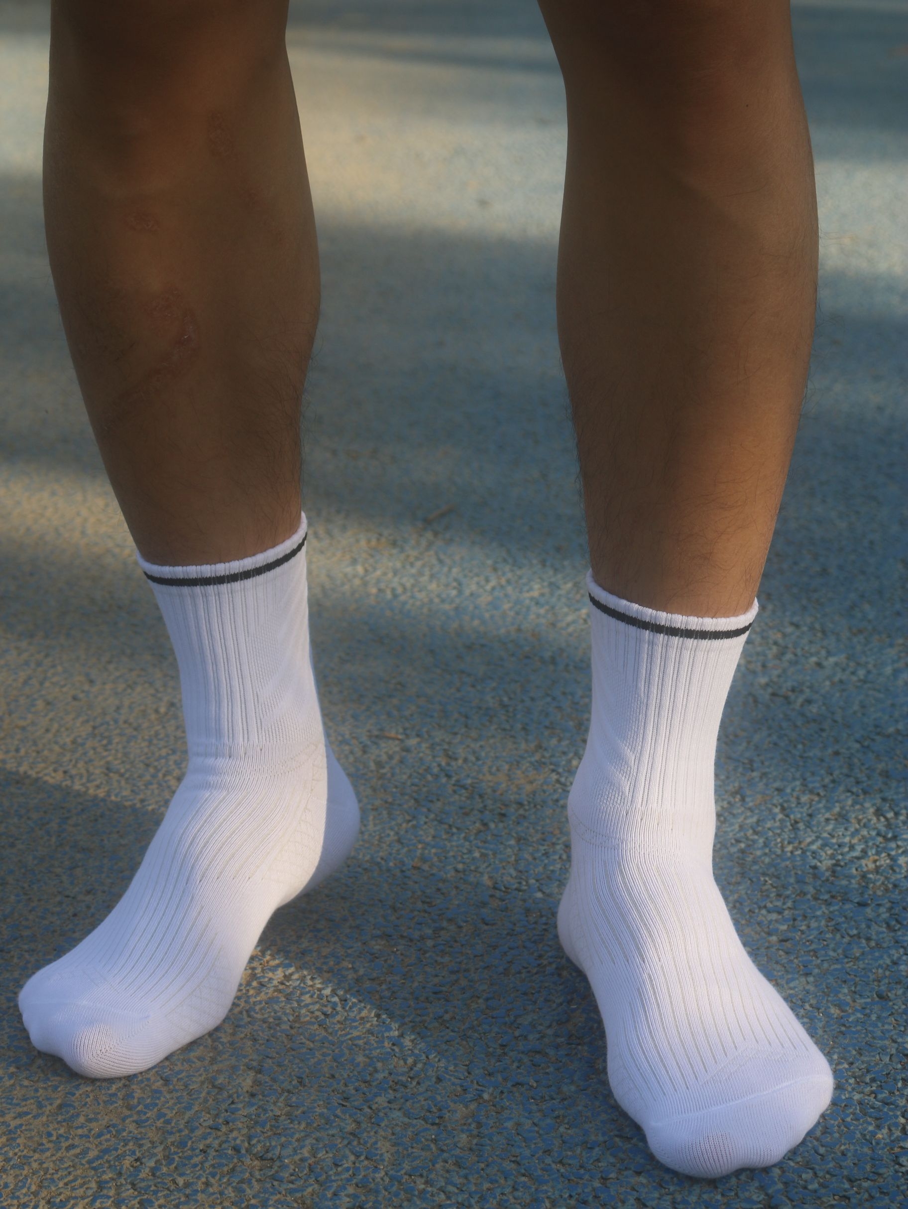 拿到手摸起来软乎乎的,上脚挺舒服的,穿着去跑步,一点都不磨脚。做工也看得出来很用心,没有多余的线头,款式干干净净的,带点小细节看着就舒服,搭运动鞋、休闲鞋都好看。中筒的高度刚好能护住脚踝,跑步或者健身穿都很合适,真心推荐!