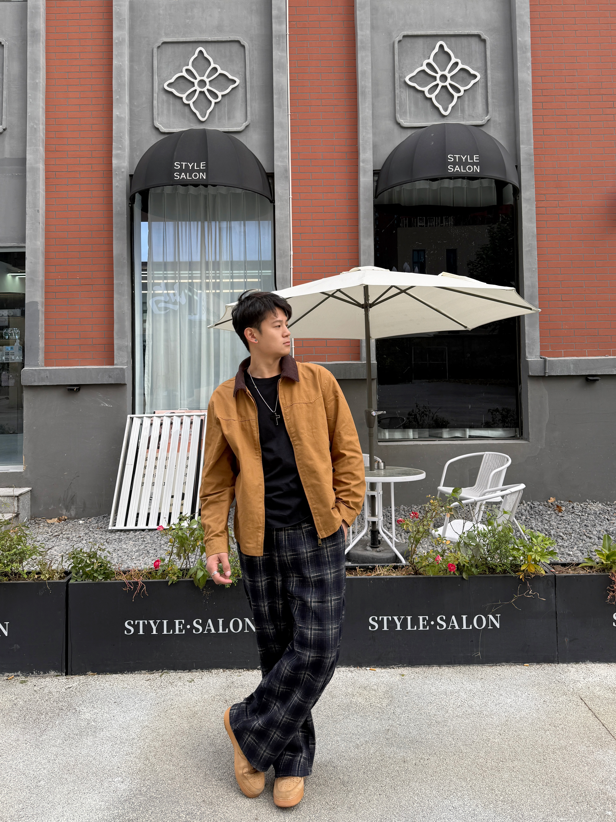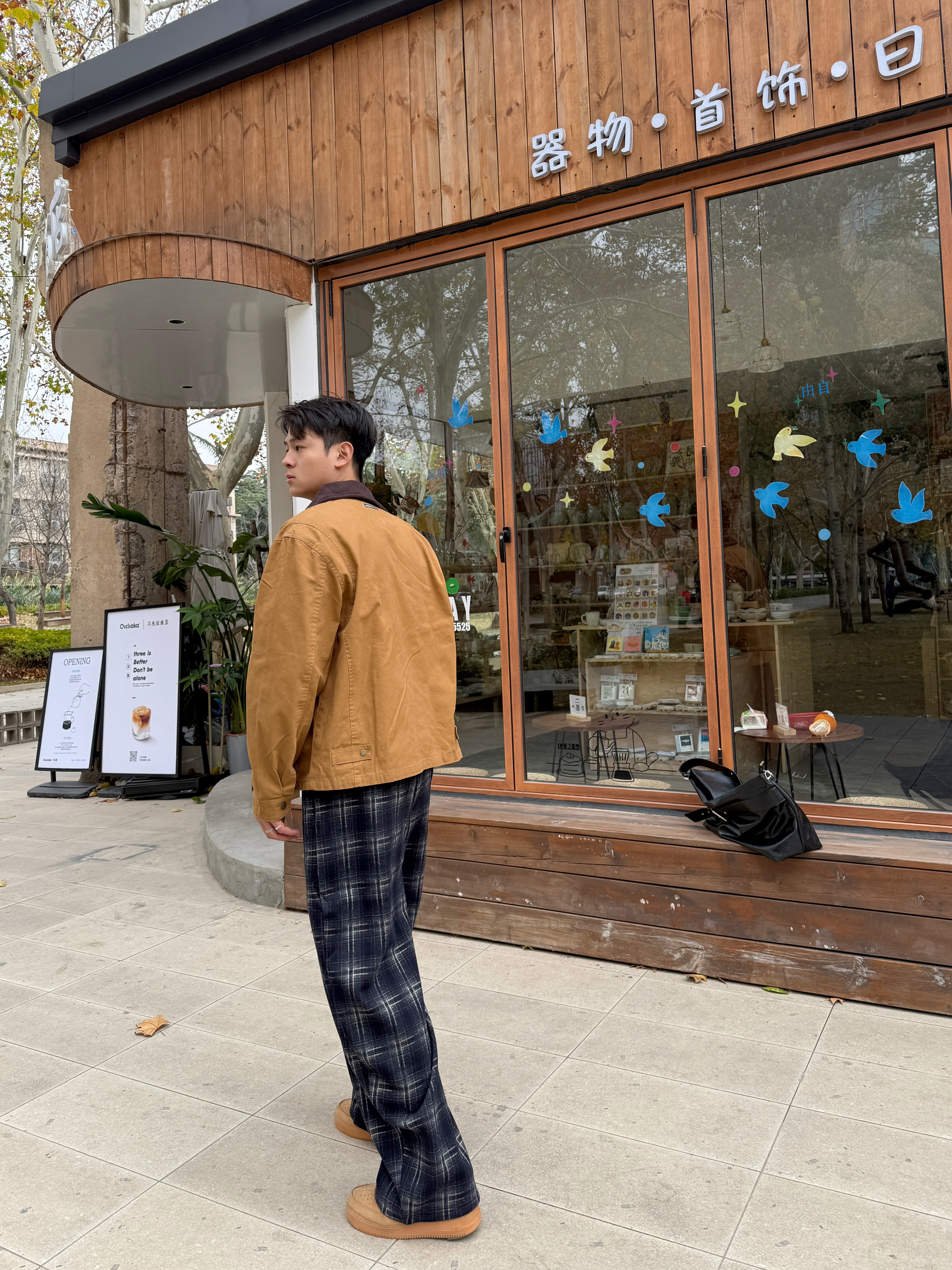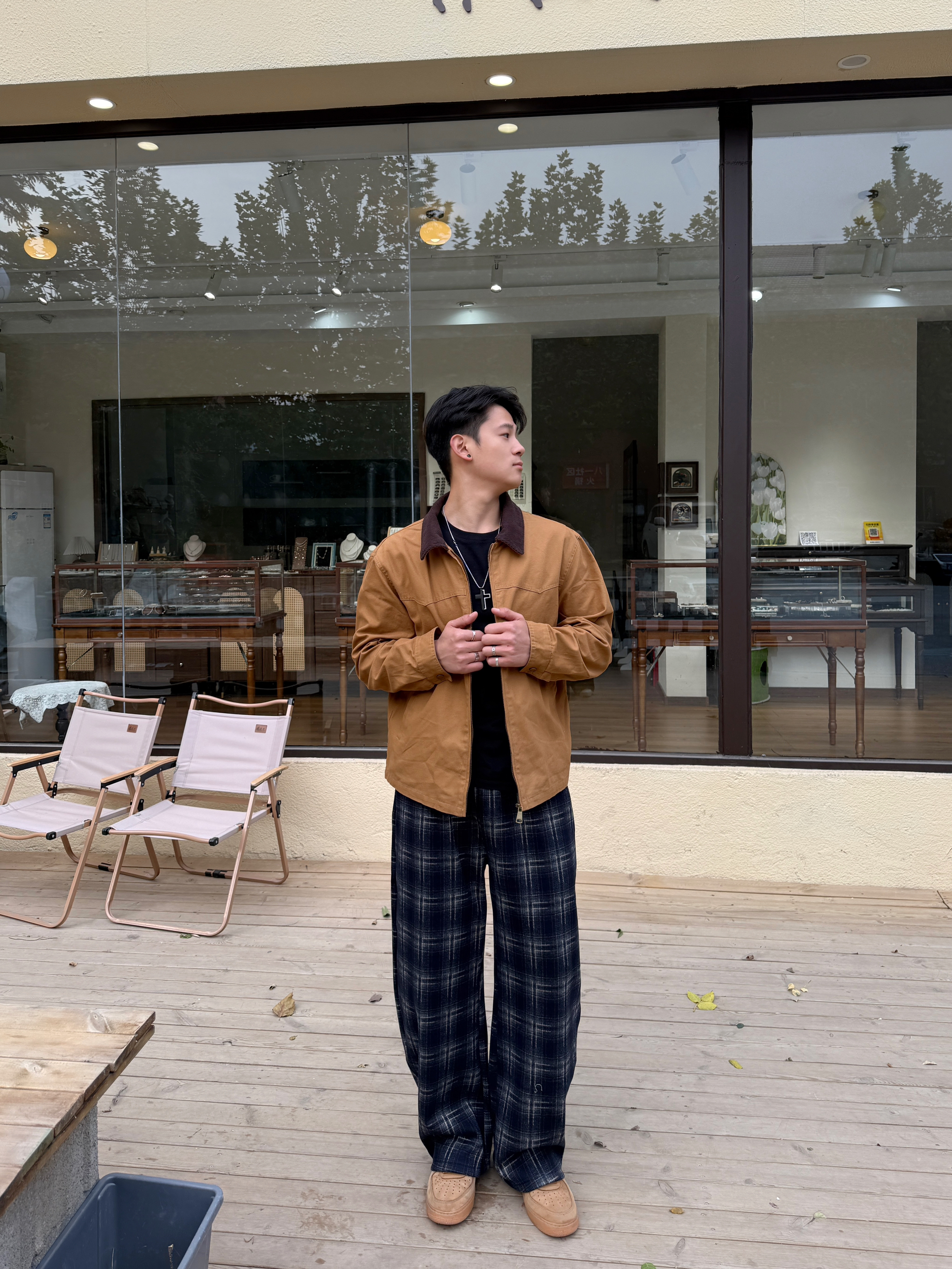 来看看我年度穿搭入冬怎么穿吧! 今日份OOTD 上衣我选择一件巴恩风翻领夹克 翻领正肩的版型穿起来有型还显精神 裤子我选择一件温度和颜值都在线的格子裤 微弯刀直筒,穿起来显高还藏肉 面料垂感十足,动作再大都不变型 这一身整体下来就是松弛又随性~ 今天的穿搭你get✅了吗?
