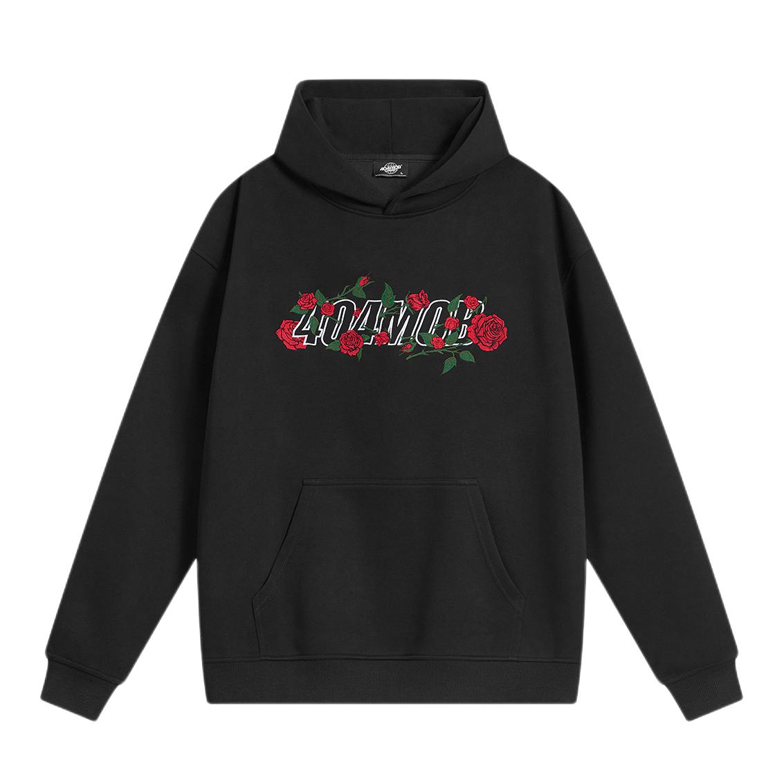 这颗“黑玫瑰”我直接焊在身上了! 404MOB这件连帽衫的印花真的戳中我——红玫瑰+做旧字体,暗黑又带点浪漫感,配黑底色巨显质感!面料是那种软软糯糯的抓绒,贴身穿暖乎乎的,版型是宽松款,套卫衣/叠穿外套都不臃肿~ 随便搭条牛仔裤或者工装裤就很酷,日常出街、和朋友约咖啡都能穿,100块不到的价格直接闭眼冲!