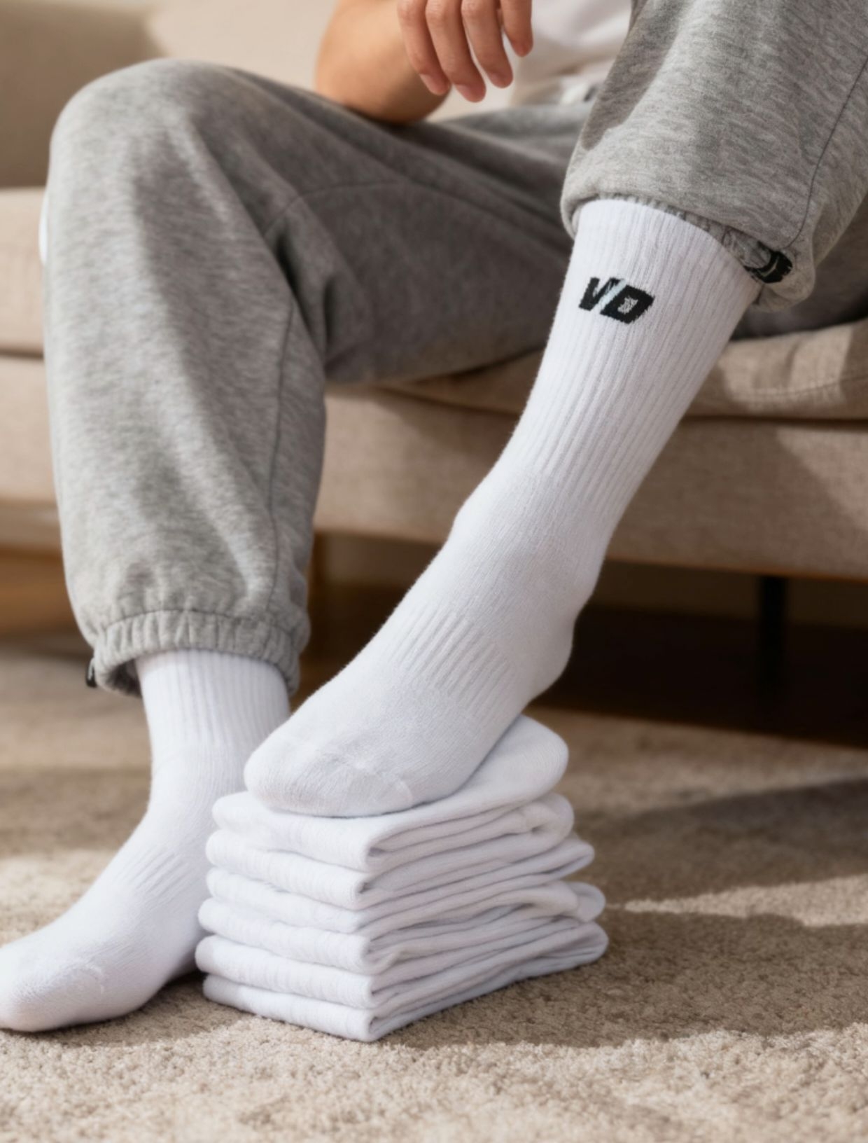 谁懂啊!维动这双白袜也太好搭了!简约的“VB”小标低调又有质感,袜口弹性刚好不勒腿,脚底板还有加厚缓冲,穿球鞋打球、搭板鞋出街都舒服到不想脱~ 20多块到手四双,性价比直接拉满!现在我的鞋柜已经被它承包了,日常随便抓一双都不踩雷!