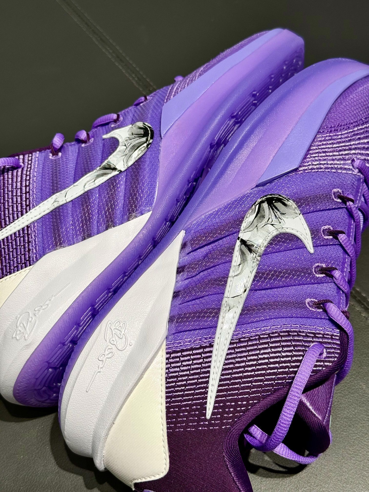 ✅ 核心亮点 1️⃣ 极光美学:霜紫色鞋面搭配冰晶纹路Swoosh,半透明外底映出雪絮纹理 2️⃣ 寒区科技:低温环境保持柔韧的Zoom Turbo气垫,冰雪场地防滑系数提升25% 3️⃣ 季候适配:加厚针织内衬配合防泼溅涂层,应对室内外温差变化 🔥 实战表现 ・ 低温环境下气垫反馈依然敏锐 ・ 霜花图案在灯光下呈现多层次反光 ・ 防滑外底在冷凝场地上抓地稳定