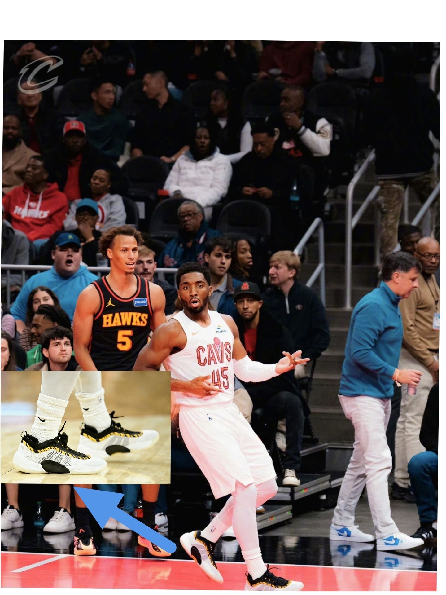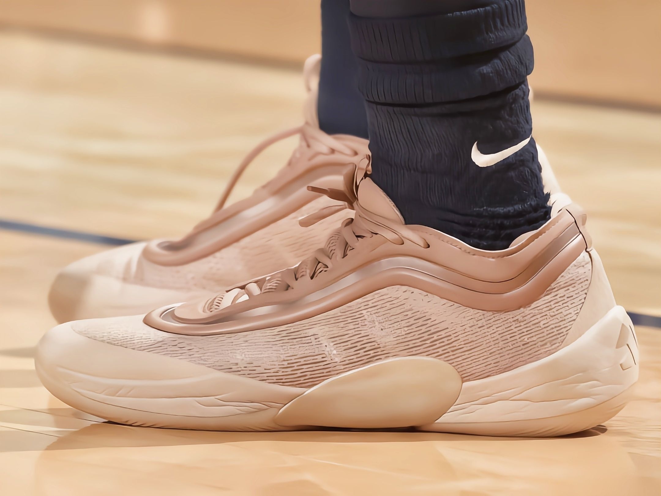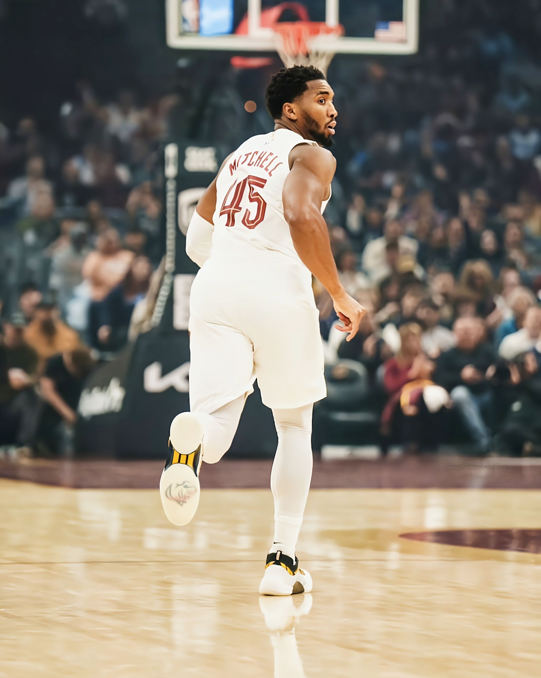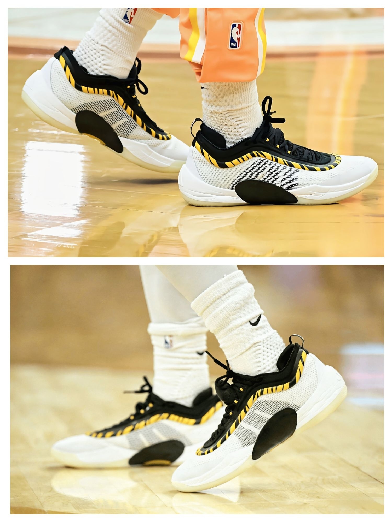 昨天看骑士比赛,米切尔那几记急停跳投直接给我看愣了——不光是人猛,他脚上这双DON Issue.6是真抢镜,白黄配色和骑士球衣搭得太顺了。 观赏性这块,实物比镜头里还耐看:鞋身是那种轻薄的编织网面,黑黄条纹像猎豹纹路似的,不花哨但特有辨识度,尤其是鞋底那圈半透明的边,实战时沾点灰反而更有“球员同款”的味儿。 性能方面,看米切尔变向的时候能感觉到抓地力够顶——鞋底纹路是那种多向的锯齿状,急停...