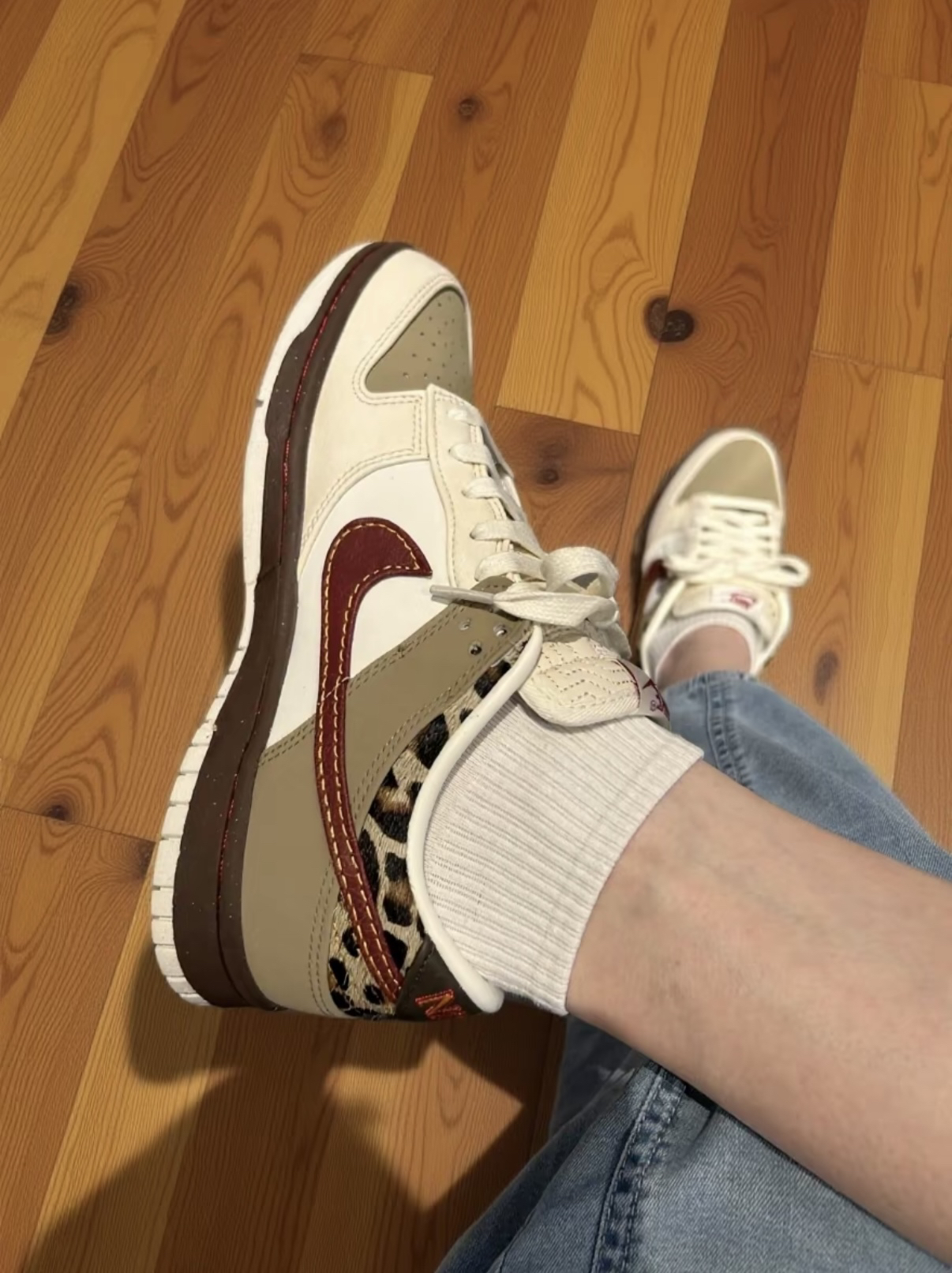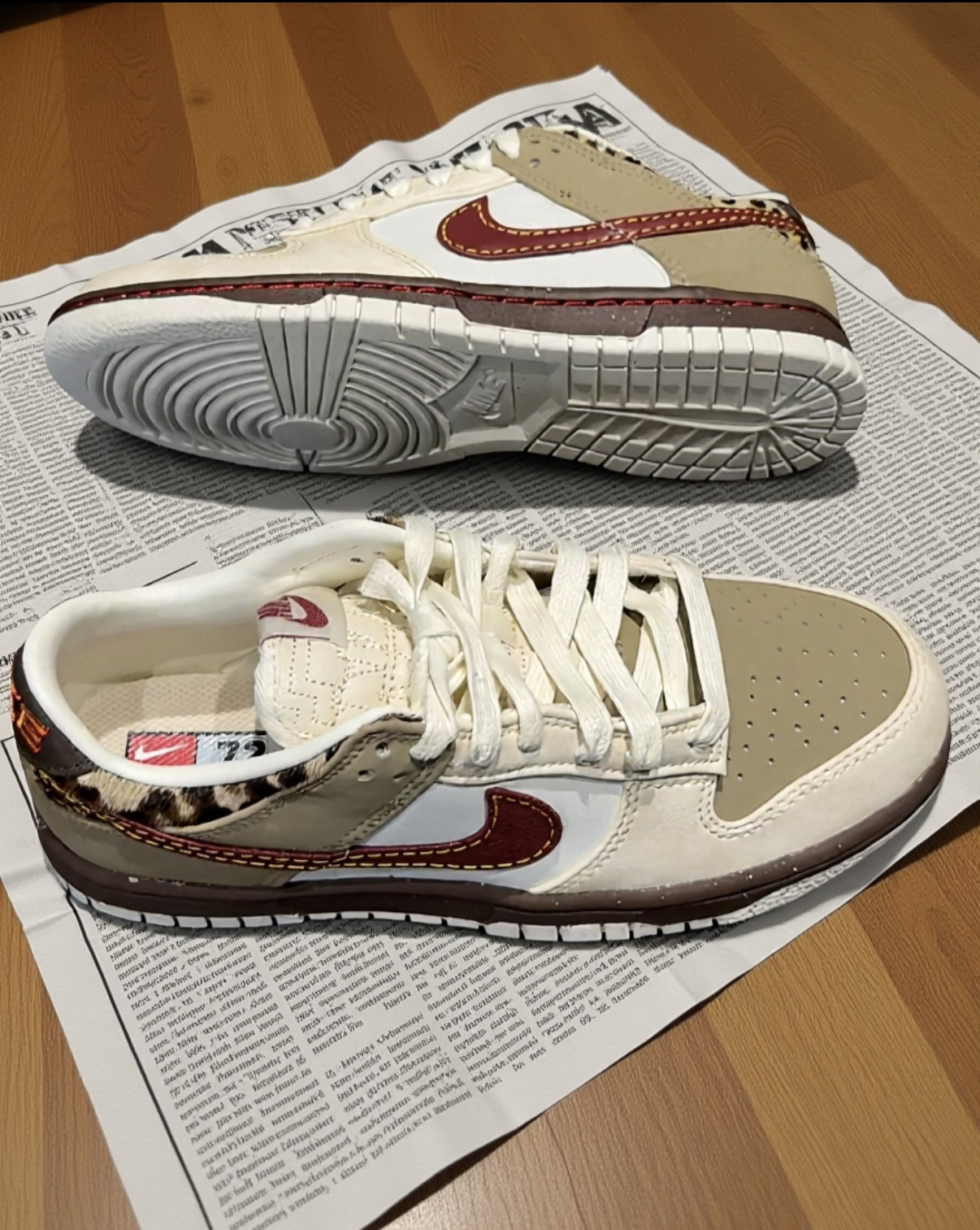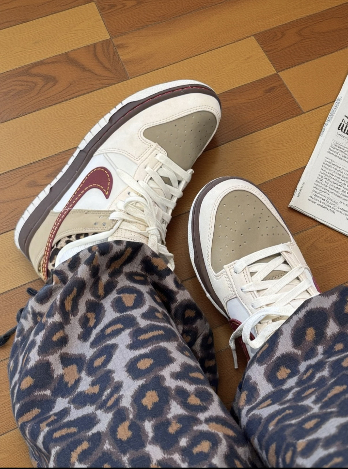 我看到这双鞋销量很高 我就买来实测了今天 不得不说真的被dunk安利到 独特气垫真的爆逛一天下来都不觉得累 🤓 平时出门随便哪怕是裸脚脖也超级适配 🙃 图三鞋底标准dunk防滑纹路 走在青苔上也不觉滑😍 浅浅豹纹真的非常性情😎