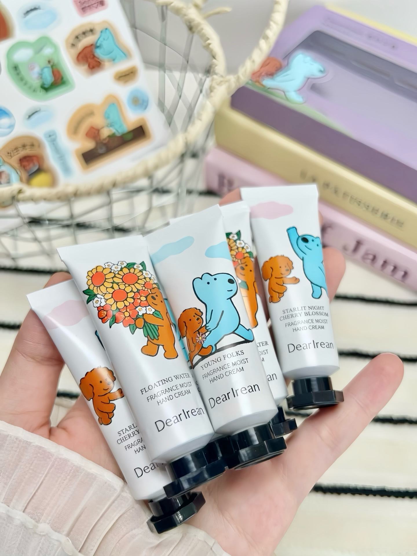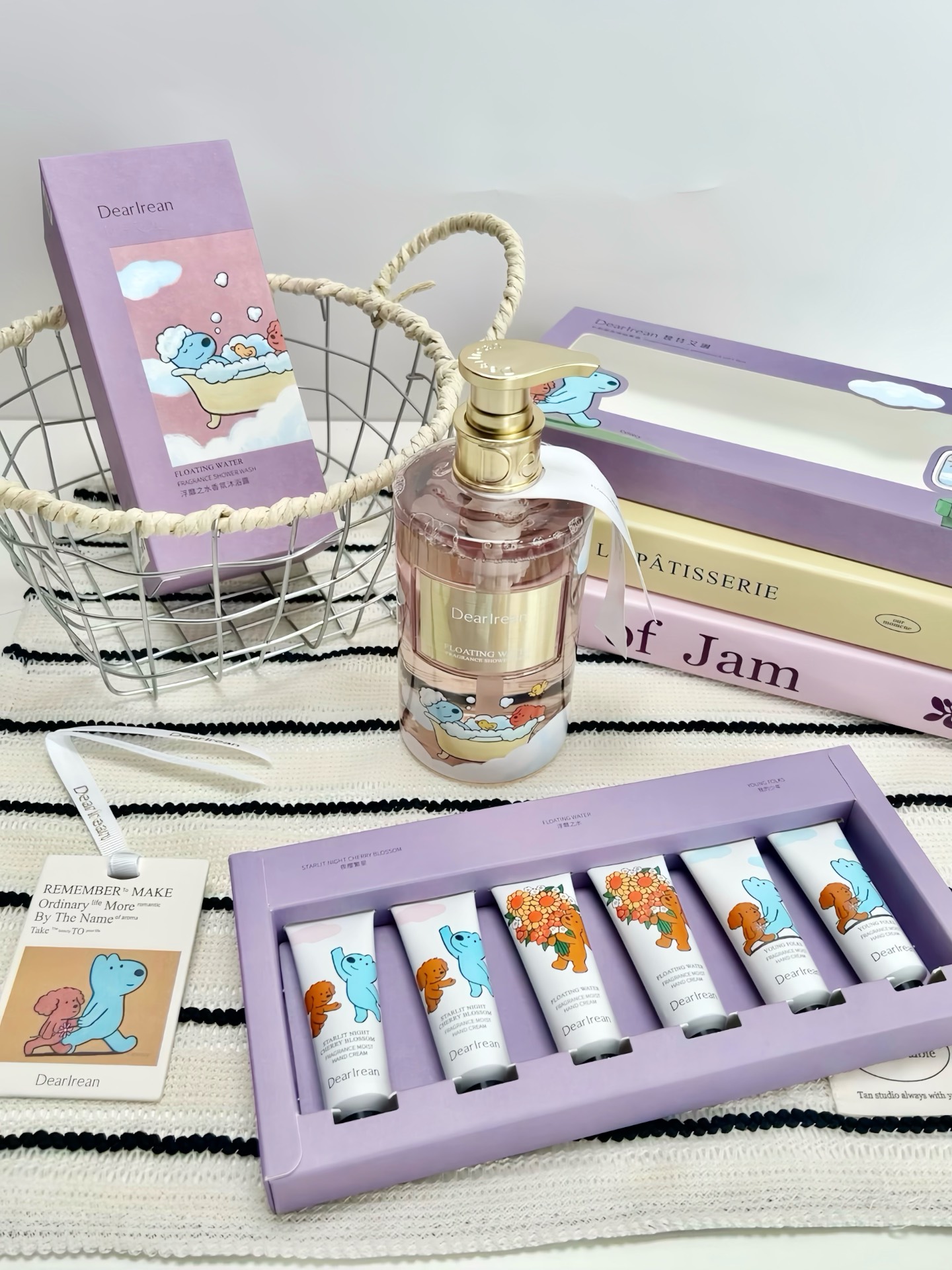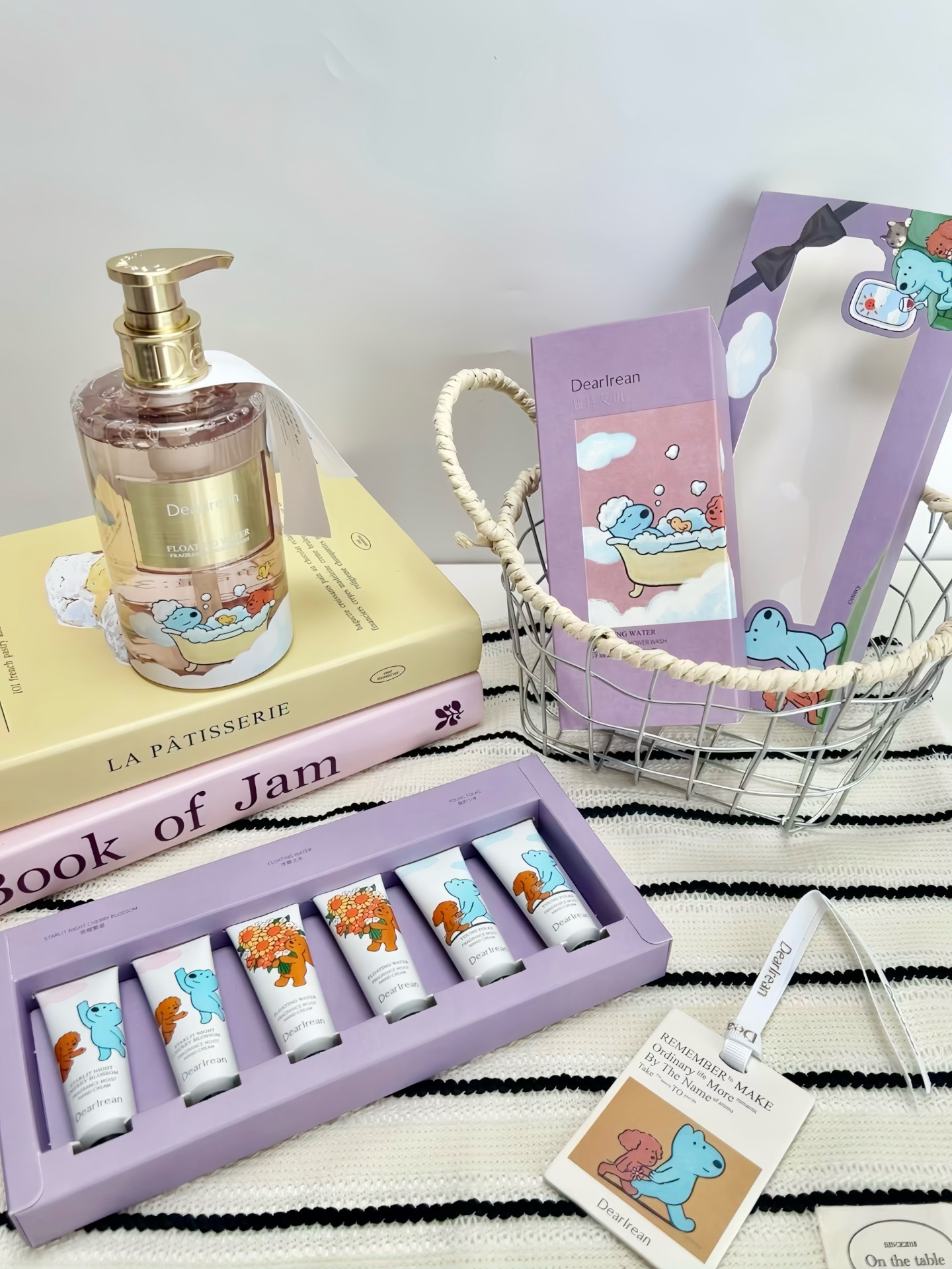我收到独特艾琳和eteecy联名这套沐浴露套装尊嘟惊喜到!透明啫喱质地,泵头取量好方便~搓搓泡沫贼绵密,洗完皮肤滑溜溜,还有清甜苹果花香留香超久!护手霜是小狗图案,清爽不粘腻,香片放衣柜包包都好香~不过包装要是再简约点就更戳我啦!七夕送女生这套,很难不心动哇🥰