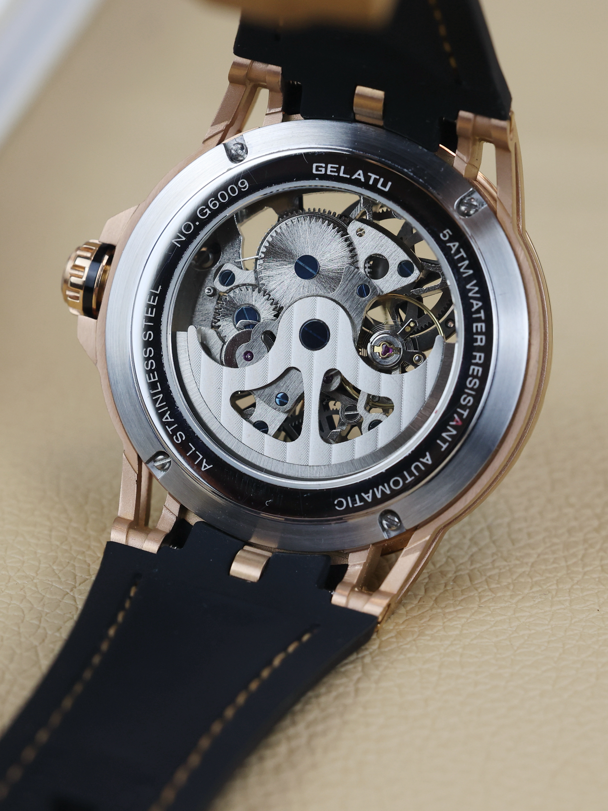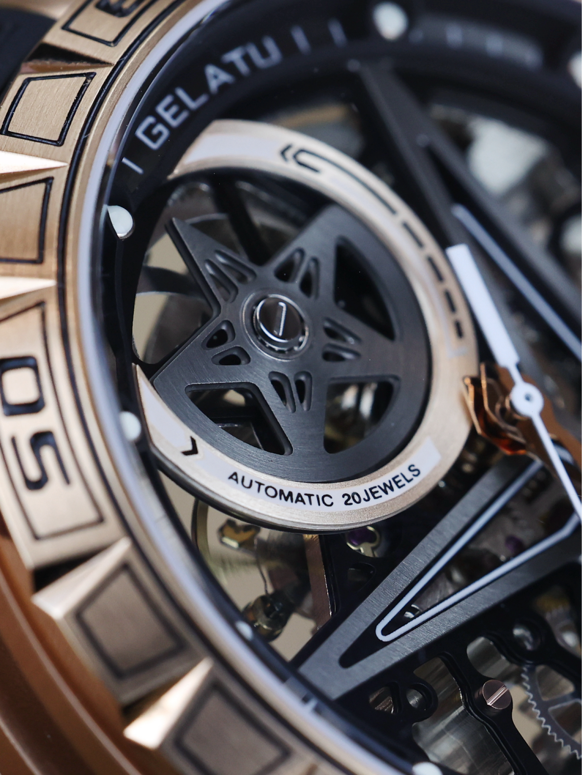 本篇笔记关联了GELATU/格拉图 双子星 时尚潮流多层立体50米防水夜光自动机械男士手表 玫壳黑面黑带等商品,为用户提供真实的使用体验和购买参考。