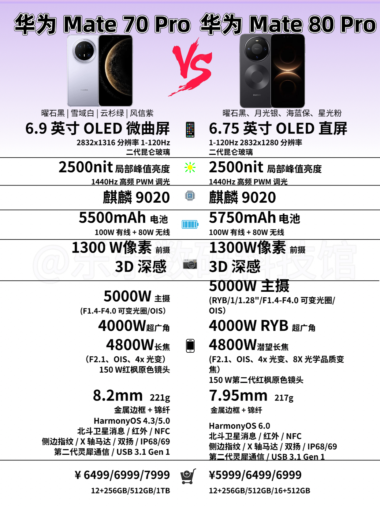 📱 入门款:Mate80 vs Mate70|4k 档直接封神