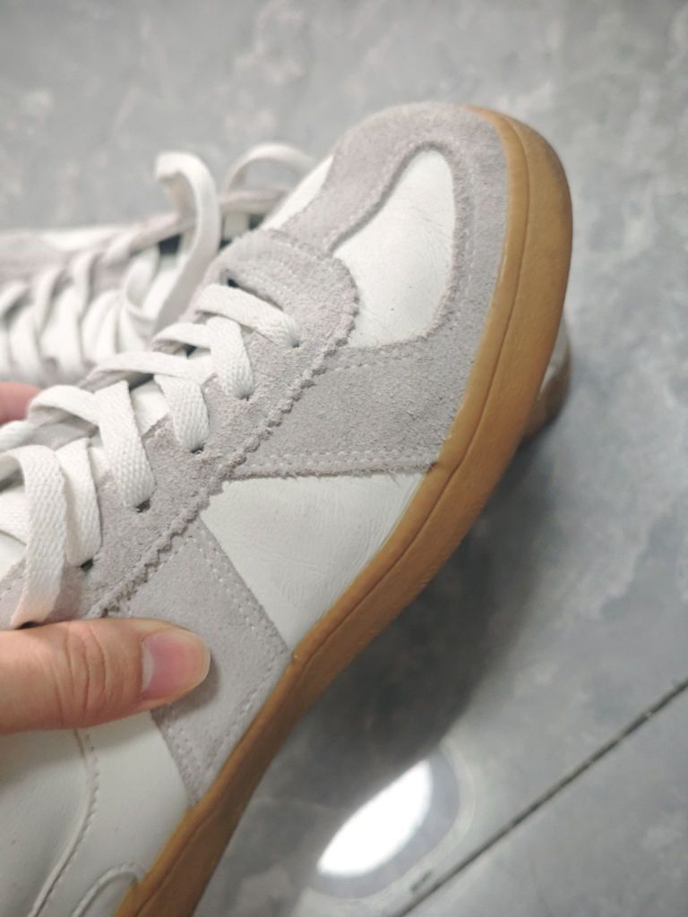 优点: 1. 颜值太戳人:云雾白+浅灰麂皮的拼接很有质感,生胶底自带复古味儿,配牛仔裤、运动裤都好看 2. 脚感舒服:鞋型比较贴合脚型,走路久了也不会磨脚,轻便度够日常通勤/散步,透气这块没踩雷,夏天穿也没闷脚。 3. 做工在线:3个月穿下来,缝线、鞋面拼接都没开胶掉皮,麂皮部分也没太显脏(可能我穿得比较小心)。 缺点: 1. 生胶底易沾灰:鞋底颜色浅,出门踩几次就容易脏,得经常擦才好看; 2...