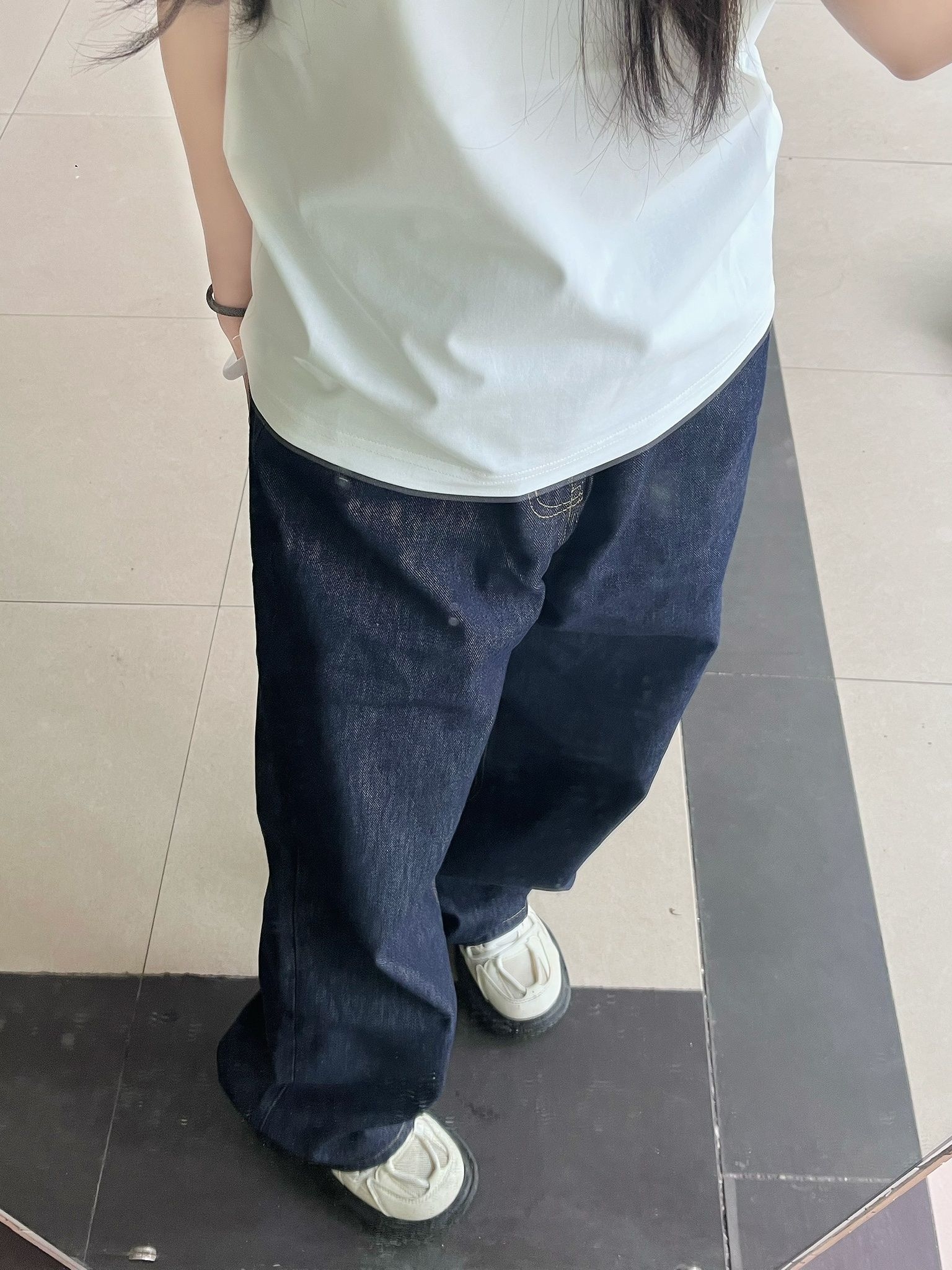 今天这套基础款直接封神!白色短袖+深蓝色阔腿牛仔裤,显瘦显高绝了,谁穿谁好看! ✅短款白T微露腰线,视觉拉高腰比,小个子也能穿出大长腿~ ✅高腰阔腿牛仔裤垂感绝了,遮胯宽、藏大腿肉肉,腿粗女孩秒变纸片人! ✅搭配奶油白厚底鞋,整体色调干净又和谐,简约不简单,通勤约会都能穿! 基础款也能穿出高级感,梨形、微胖身材闭眼入,夏天这么穿清爽又显瘦! #显瘦穿搭 #梨形身材 #阔腿牛仔裤...