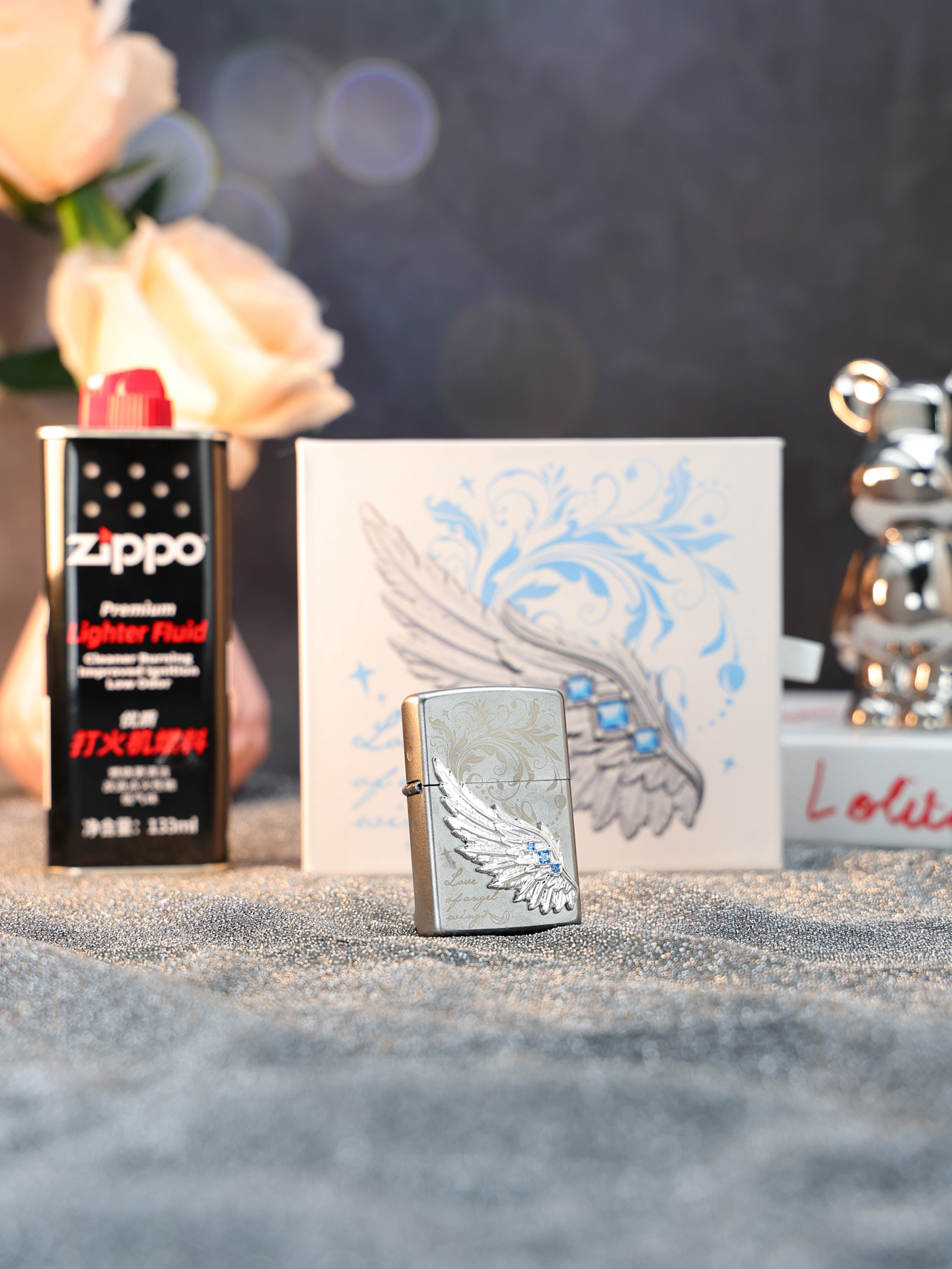 收到Zippo热恋之翼打火机,翅膀+蓝钻设计好戳我💕 质感高级又有仪式感~不过煤油味凑近能闻到,整体当礼物送超有心意,点燃时像把爱意点亮啦✨
